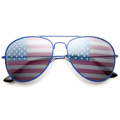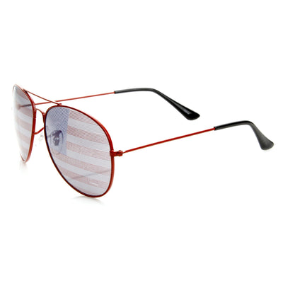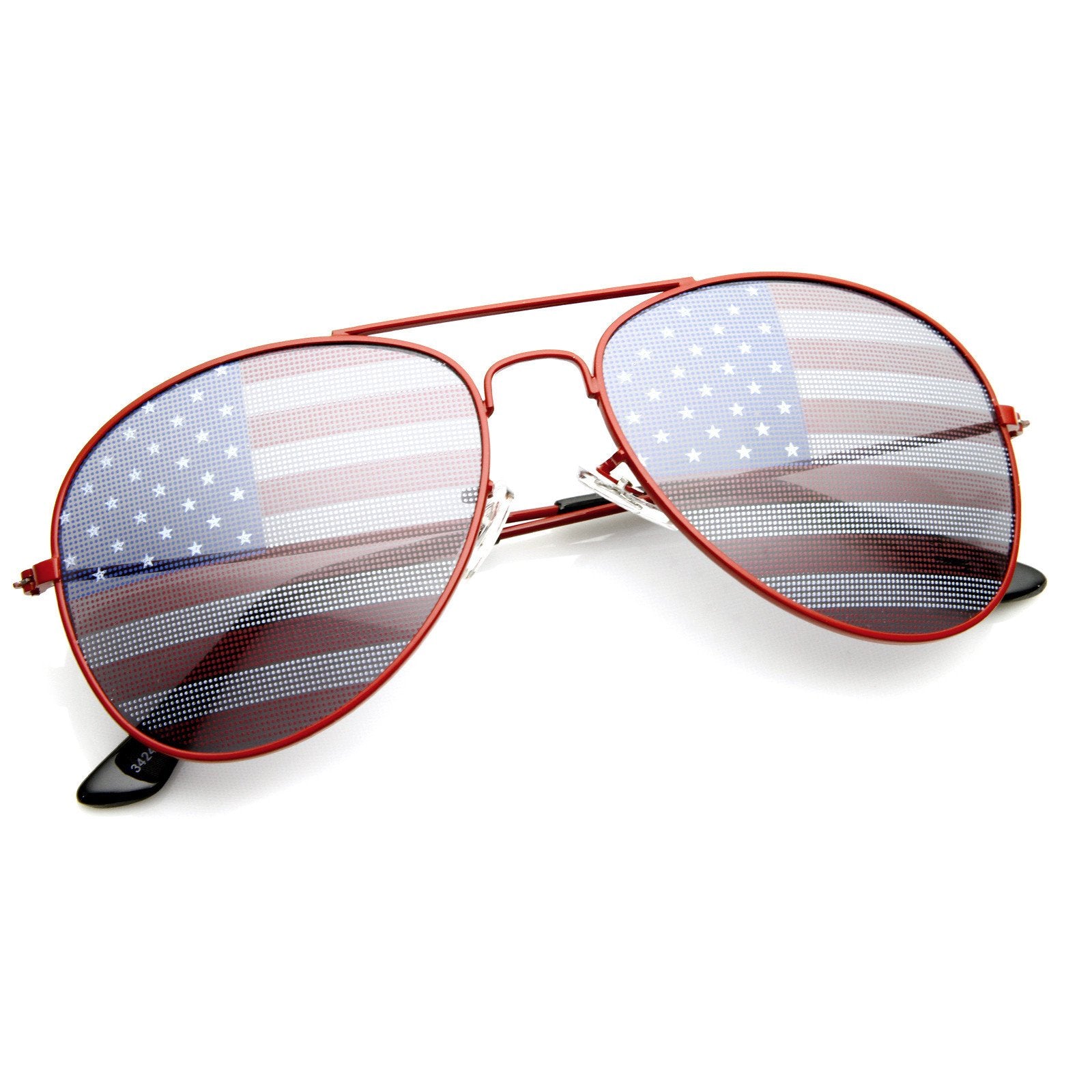 Show your patriotism and support for the USA Flag Sunglasses. Available in a variety of classic all American colored frames! Please Note: Acrylic painted lenses does offer UV protection, but makes it harder to see out of. We DO NOT recommend any activity that requires clear vision or driving with these sunglasses. Made with a metal frame, classic metal hinges, English style nose pieces and a UV protected polycarbonate lens.