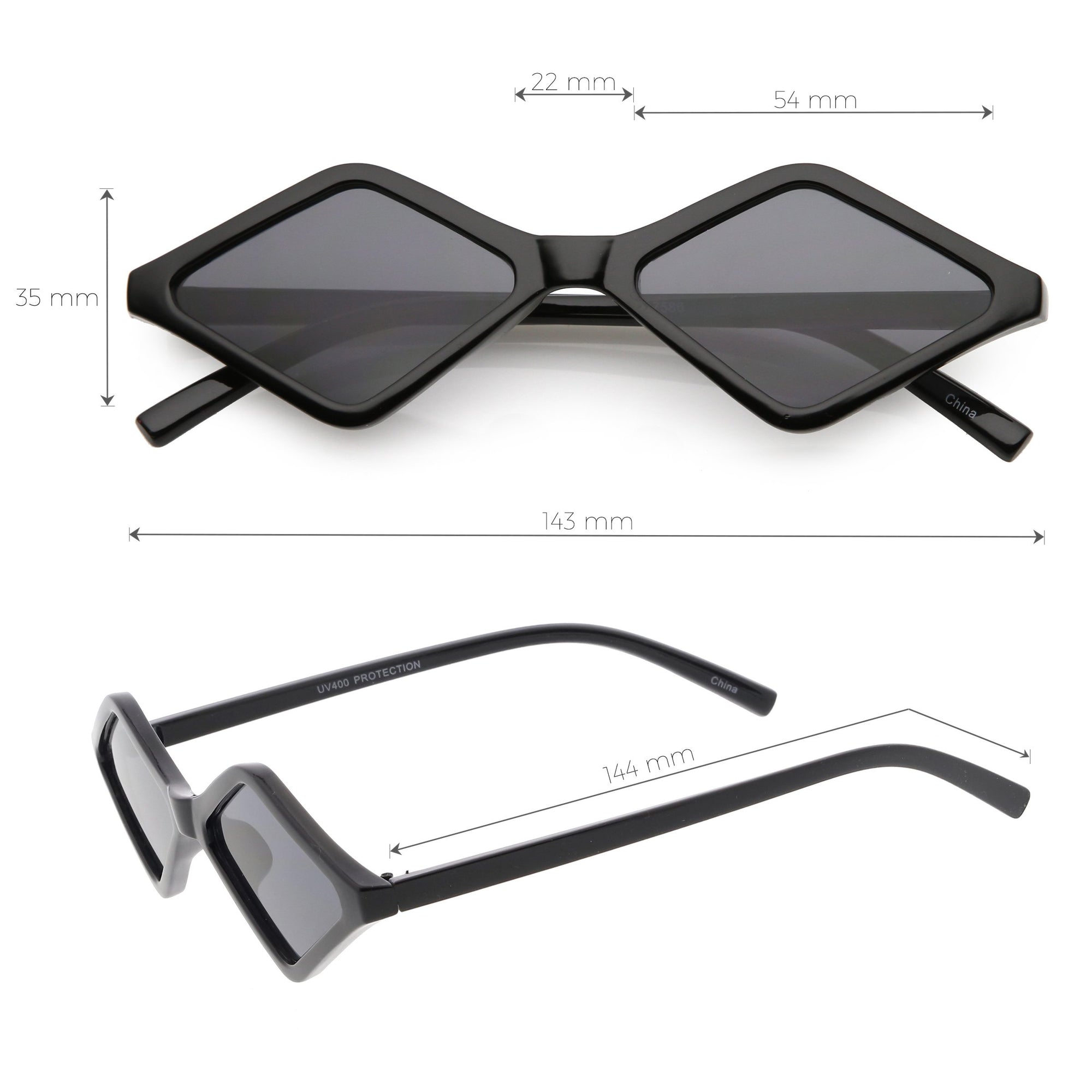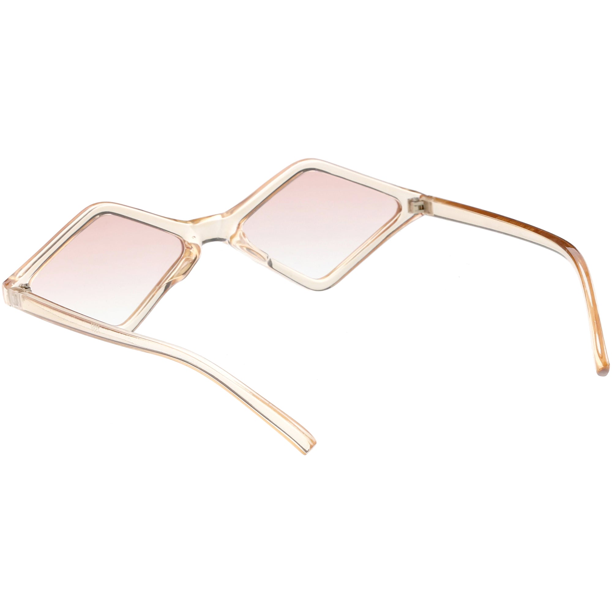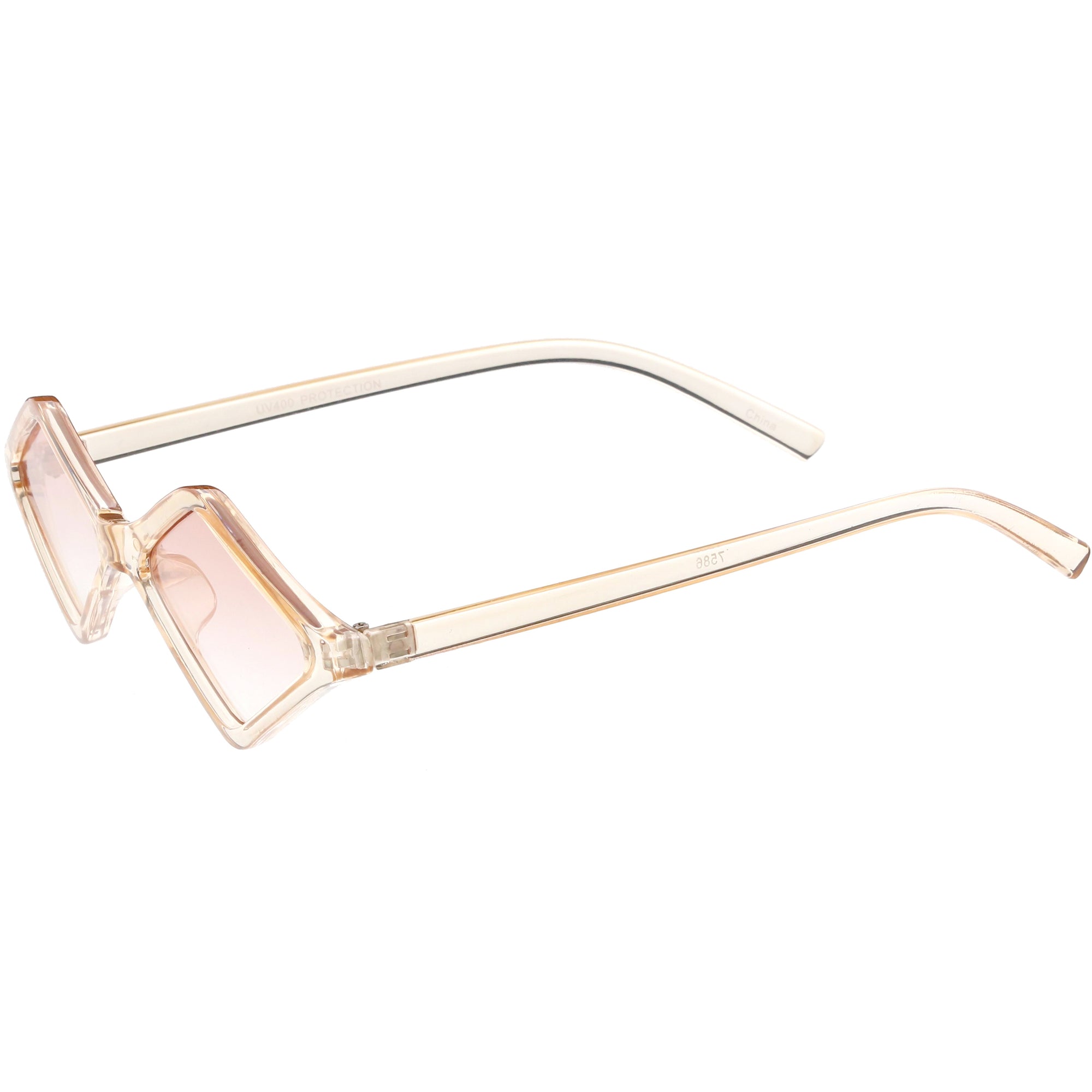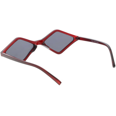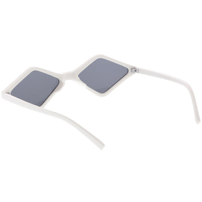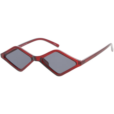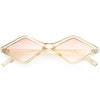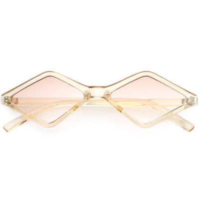Edgy and cool, these geometric diamond shaped sunglasses feature contrasting neutral colored lenses and slim arms for a sleek effect. With a small design giving off 90's vibes, these fashion forward sunnies are a total must-have accessory. Made with a plastic based frame, reinforced metal hinges, and 100% UV protected lenses.