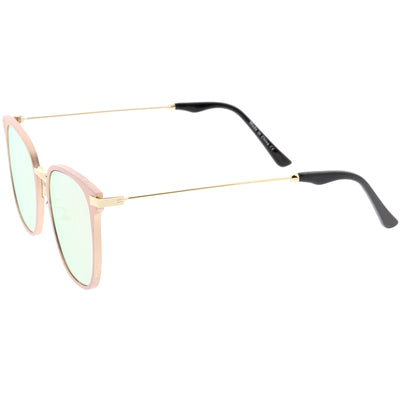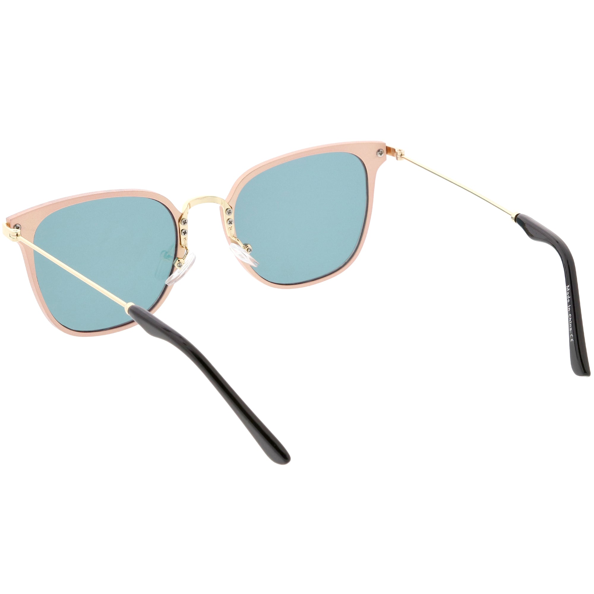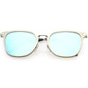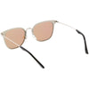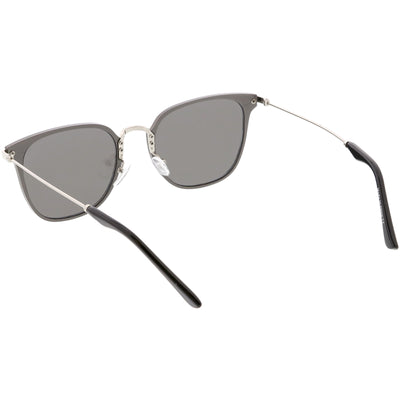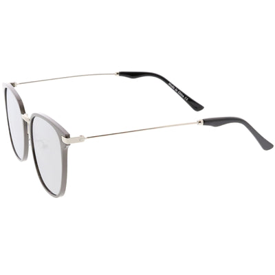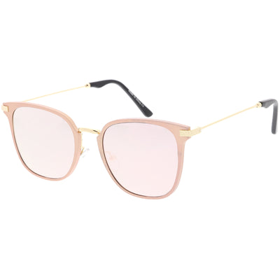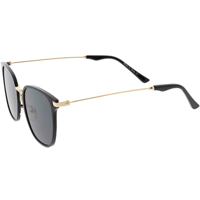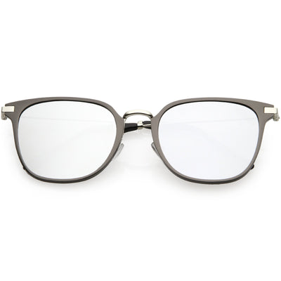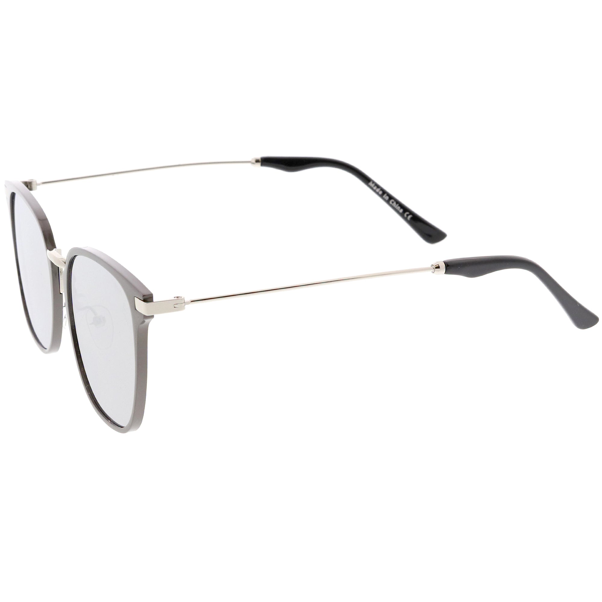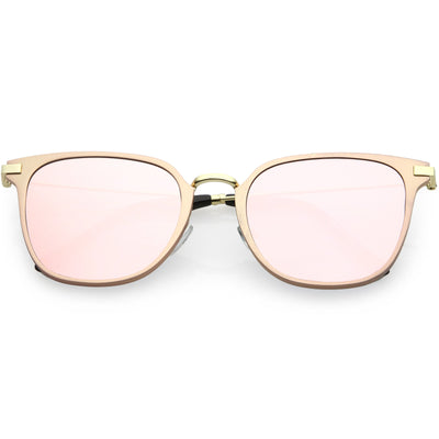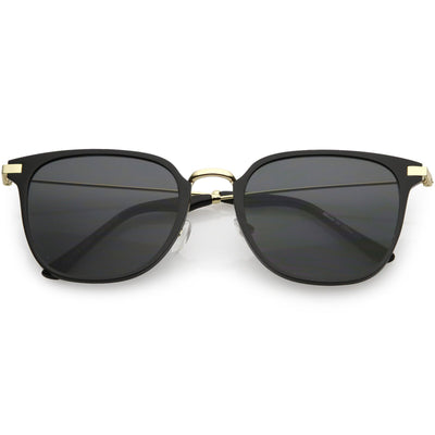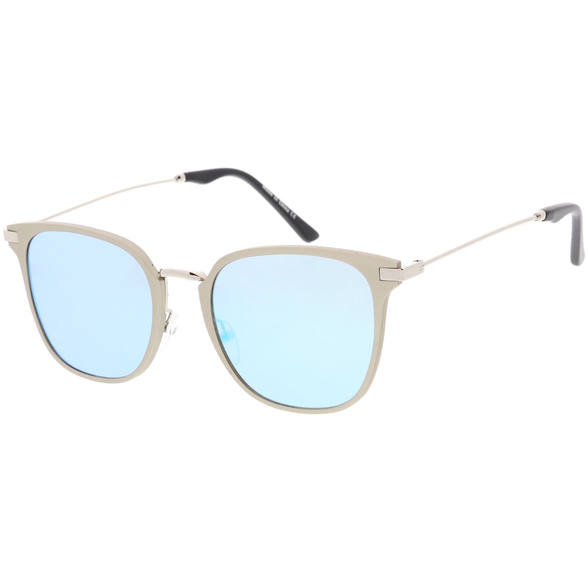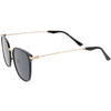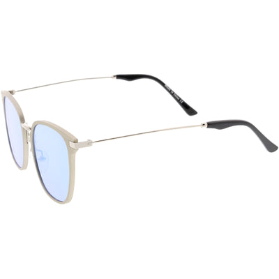 A classic style that can be worn everyday, these square sunglasses are exquisitely crafted with a metal frame and a subtle horn rimmed shape. Flat lenses in neutral and mirrored lenses give it a modern feel, while ultra slim metal arms give it a sleek look. Complete with a metal nose bridge, these horn rimmed square sunglasses are easy to pair with any outfit. Made with a metal based frame, adjustable English style nose pieces, metal hinges, and 100% UV protected lenses.