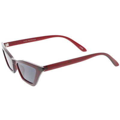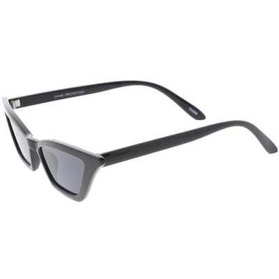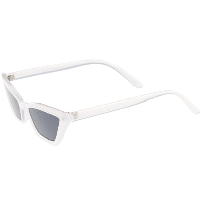 A statement-making fashion accessory, these retro cat eye sunglasses are designed with an exaggerated shape and neutral colored lenses. Complete with slim arms, these bold cat eye sunglasses versatile pair that can be work all year round. Made with a plastic based frame, reinforced metal hinges, and 100% UV protected lenses.