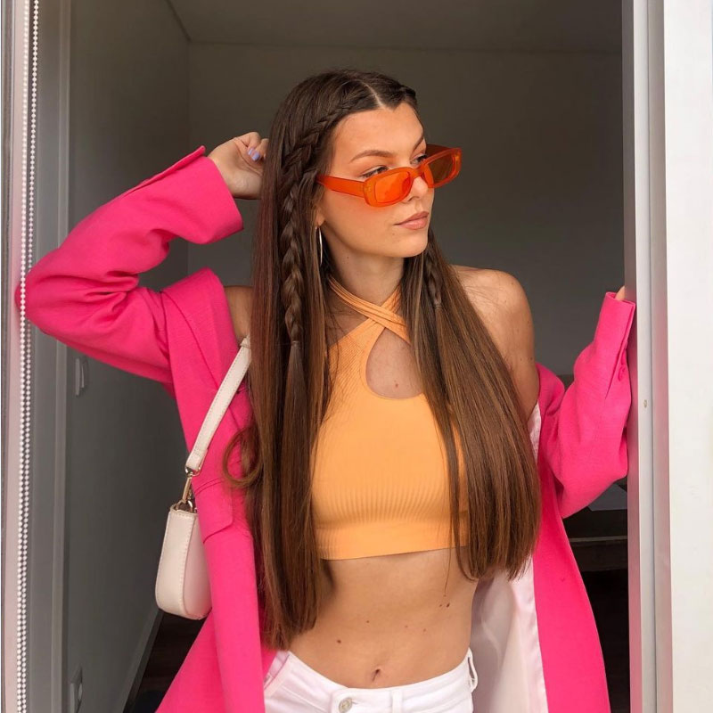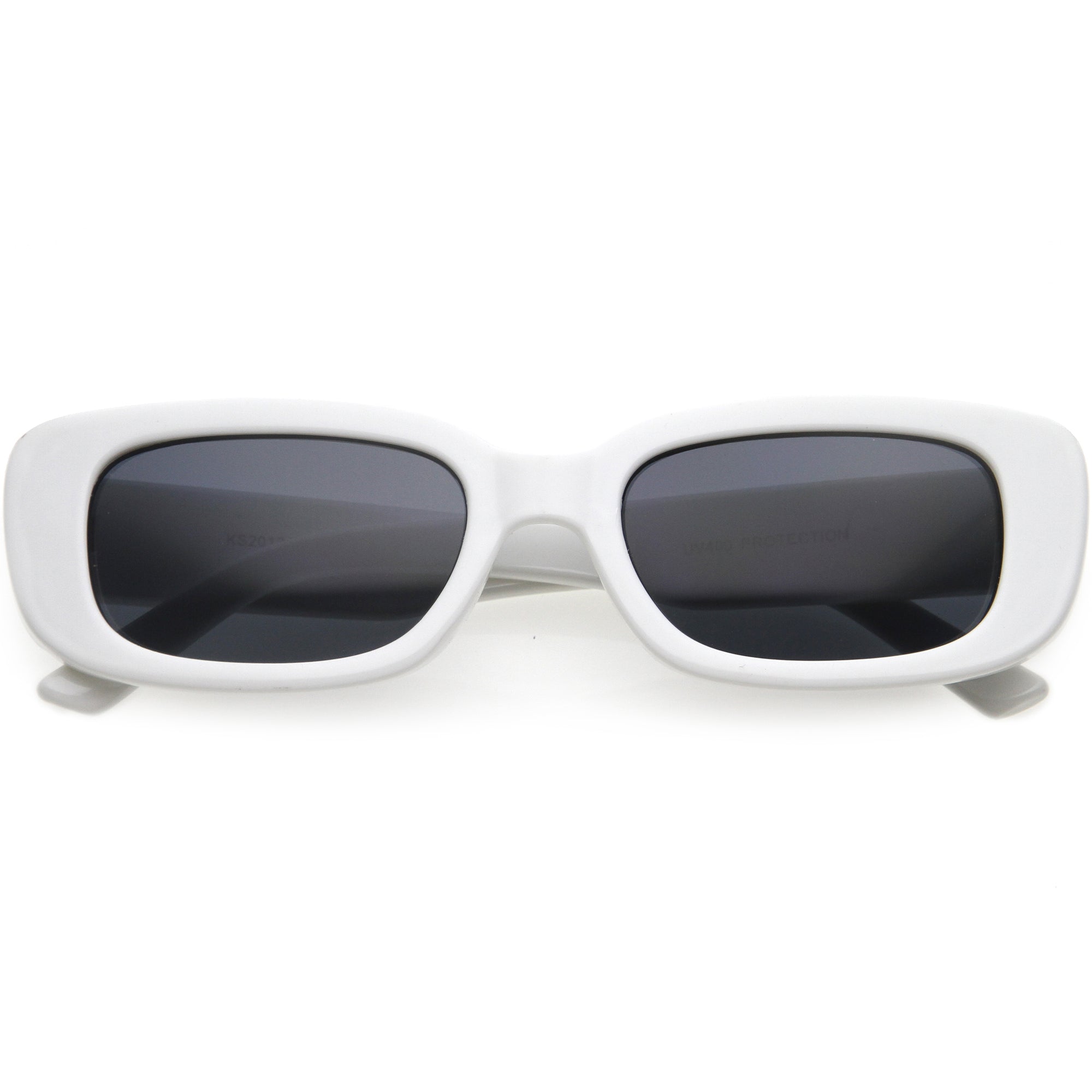 • Designed with a thick rimmed silhouette, these square sunglasses feature the trending rectangular shape. The retro inspired style is perfect when you're looking for more class and style. Made with a plastic based frame, reinforced metal hinges, and 100% UV protected lenses.