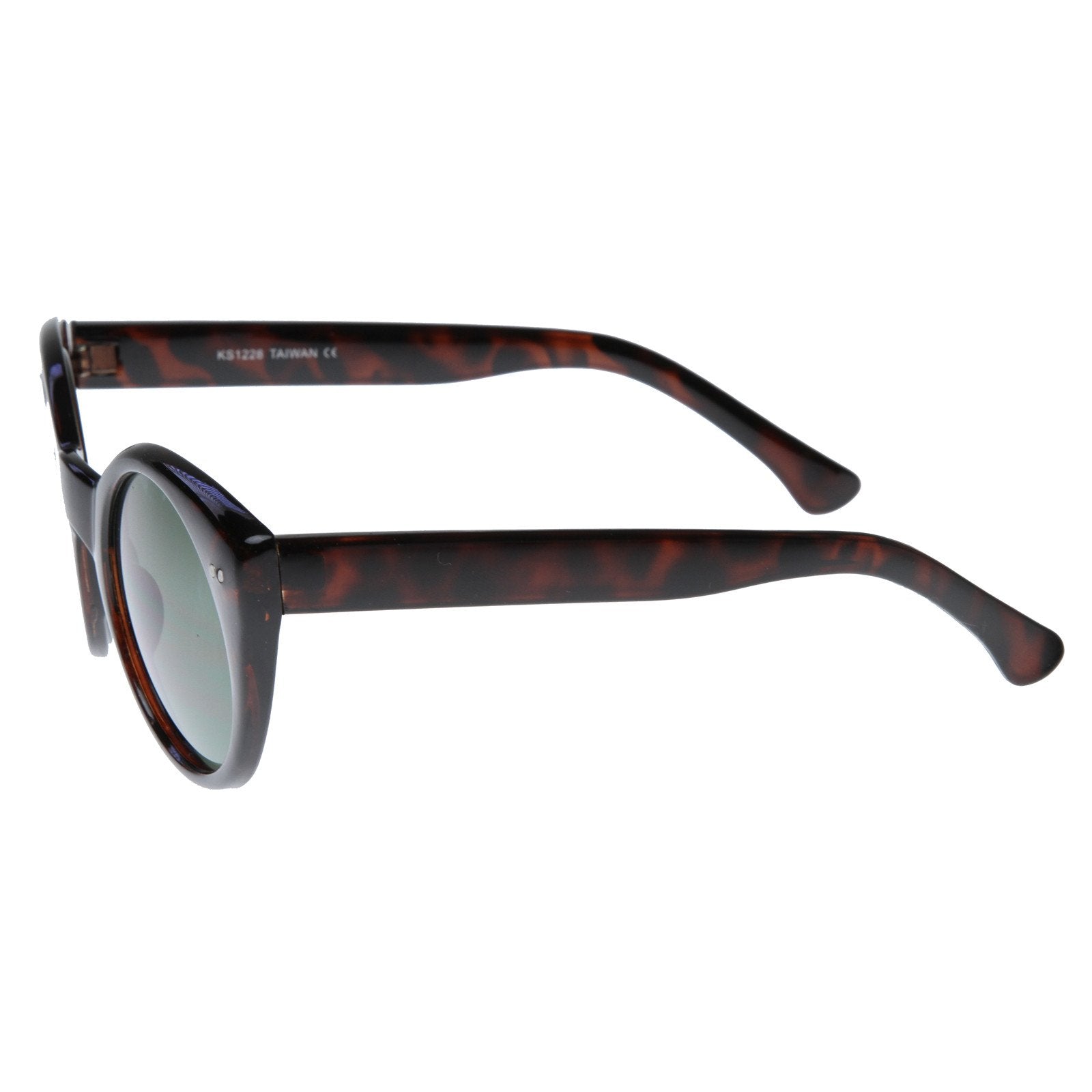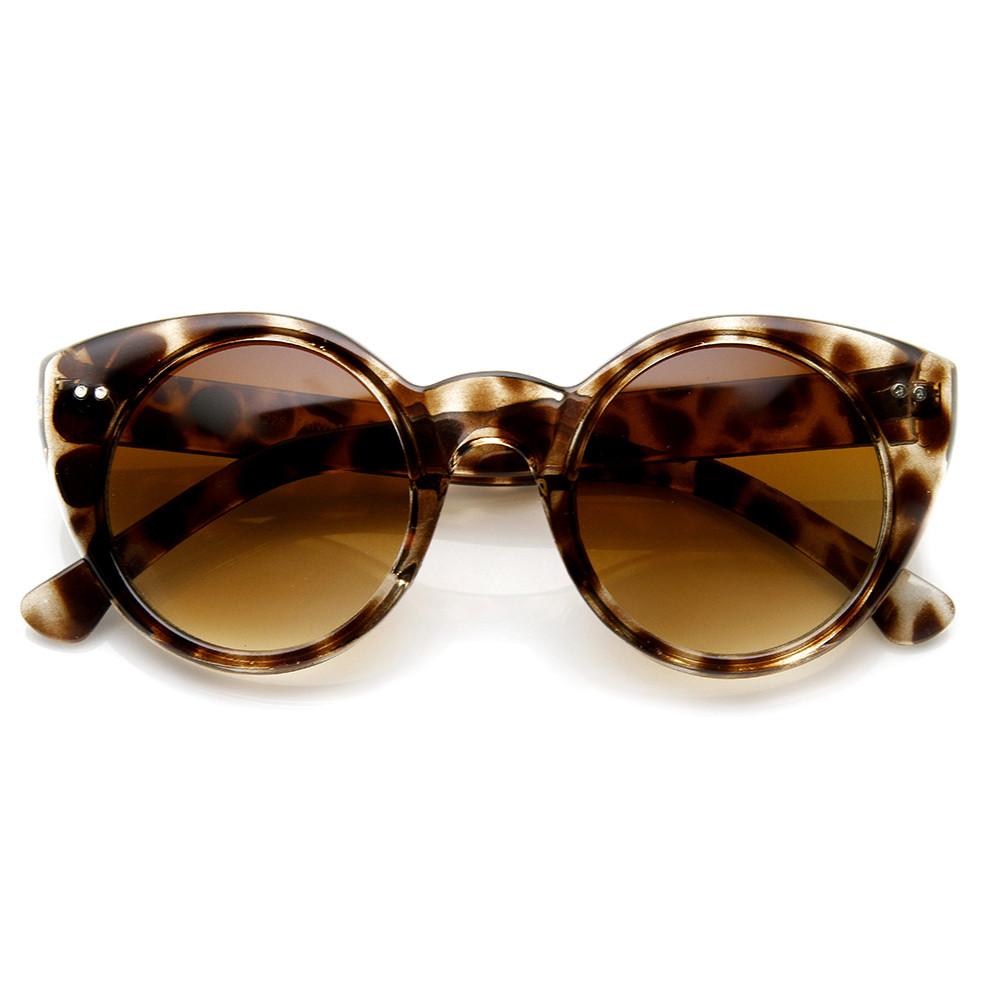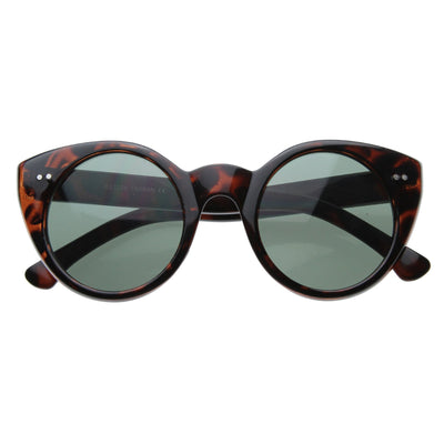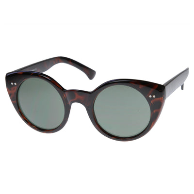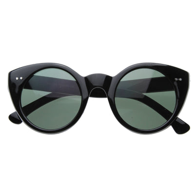 Vintage inspired round cat eye glamour sunglasses that feature metal rivets on the temples. Feel free to carry them all the way through the year as they are perfect for any season. Made with an acetate based frame, metal hinges and UV protected polycarbonate lenses.