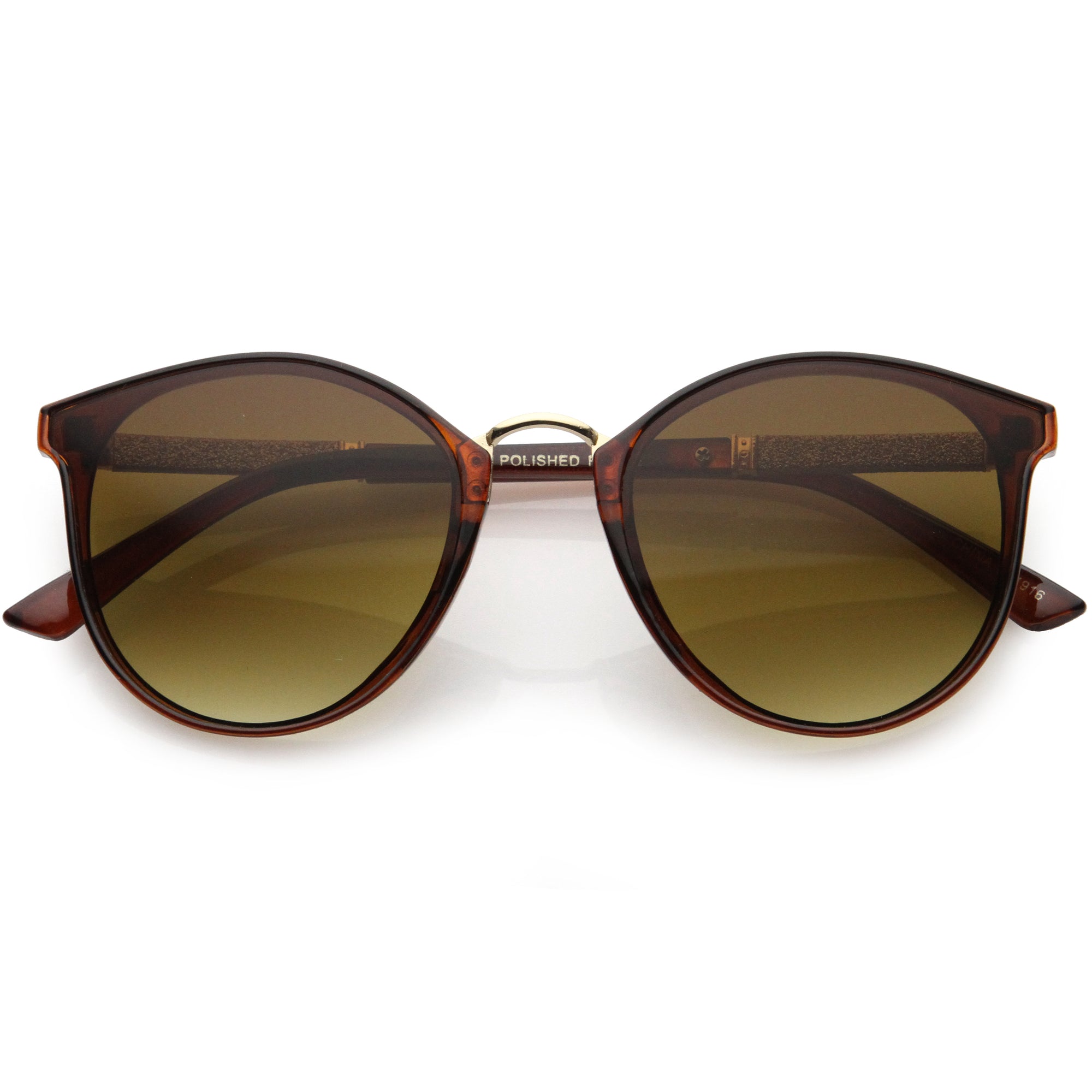 Flirty Two-Tone Glitter Arms Accent Chic Cat Eye P3 Round Sunglasses D037
