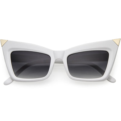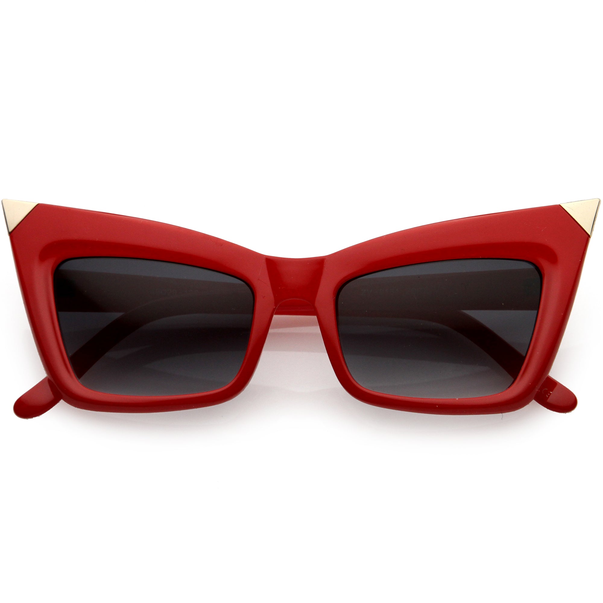 ¡Una increíble continuación de nuestras populares gafas de sol estilo ojo de gato Hot Tip que han estado volando de los estantes! Explore el fenómeno de las gafas de los años 50 con estas monturas únicas que cuentan con esquinas altas con puntas de metal. Fabricado con una montura a base de acetato, bisagras de metal y lentes de policarbonato con protección UV.