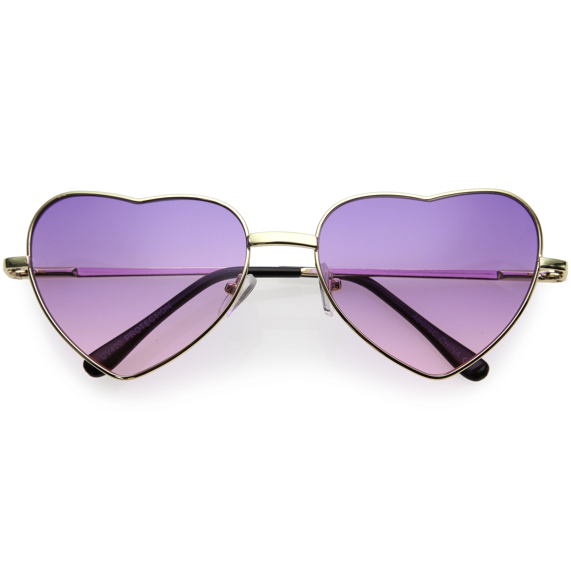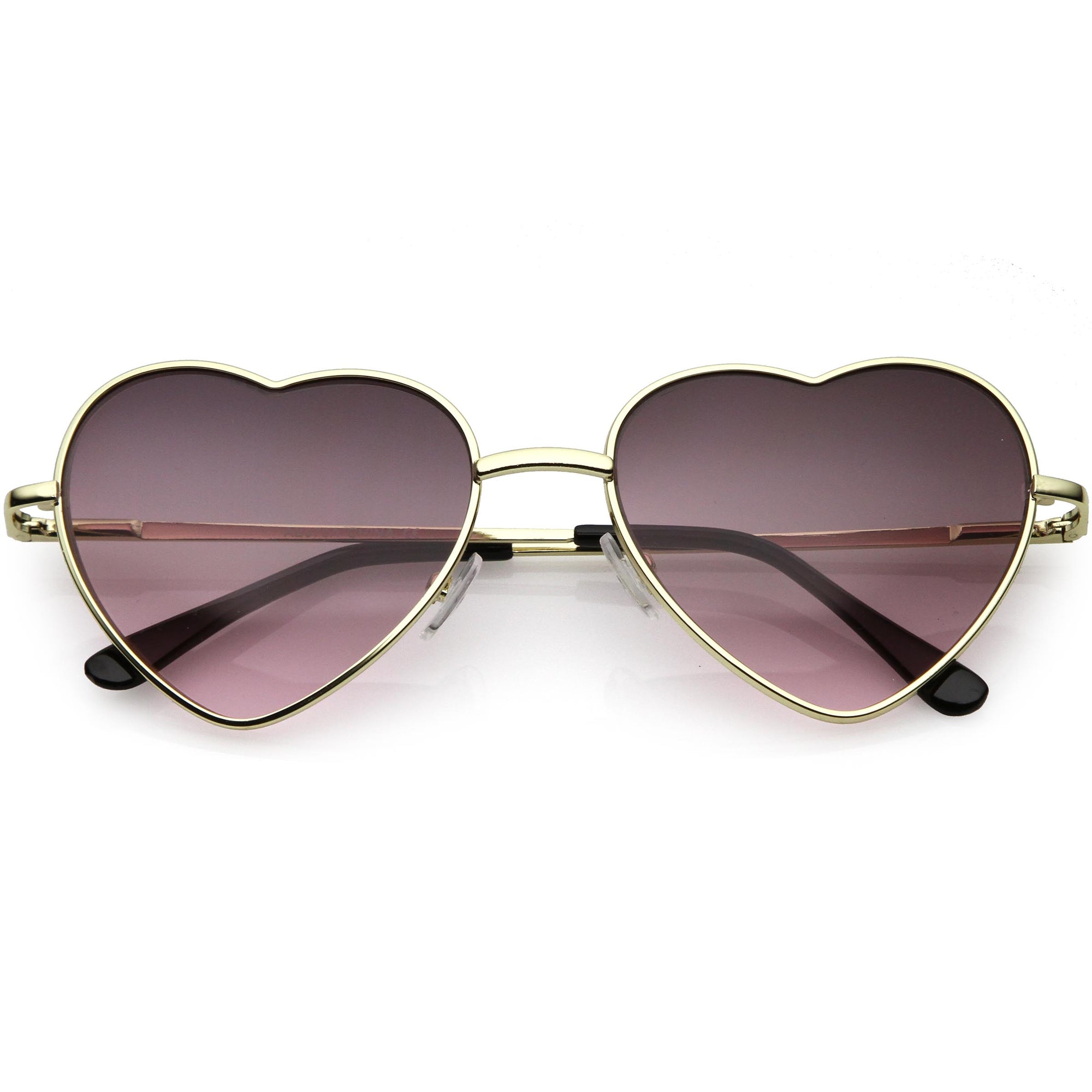 Gafas de sol con forma de corazón de metal y lentes flash súper lindas para mujer 9482