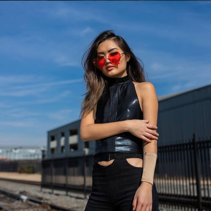 Lindo sin montura amor sangrado en forma de corazón efecto de goteo lentes teñidas gafas de sol de corazón D078