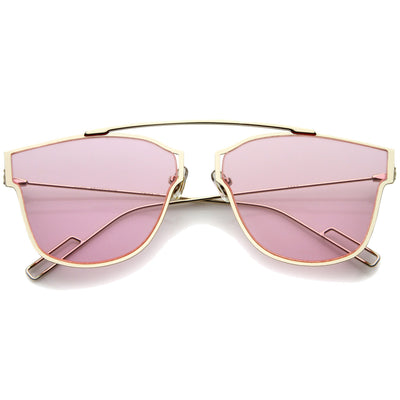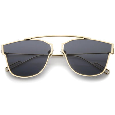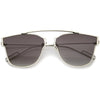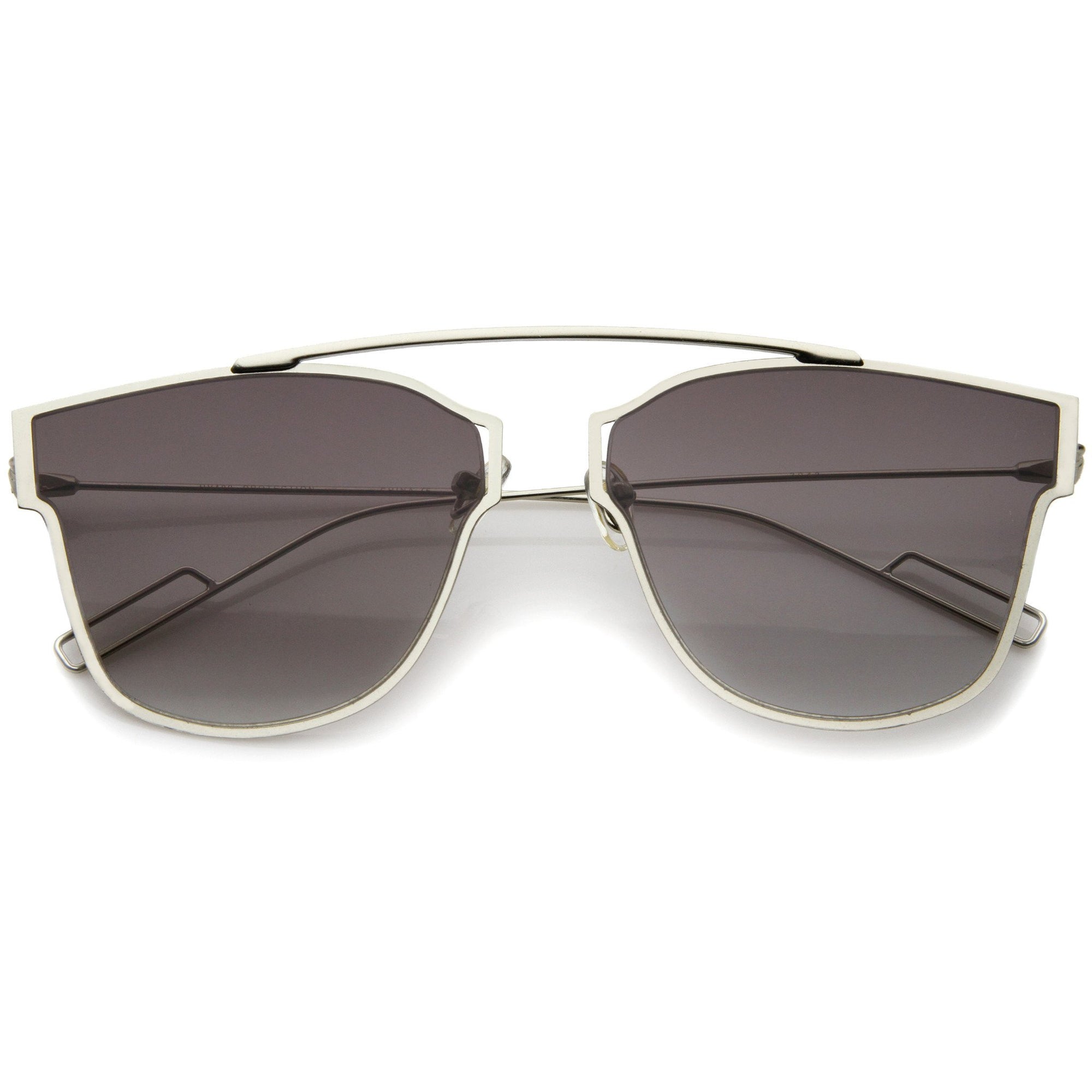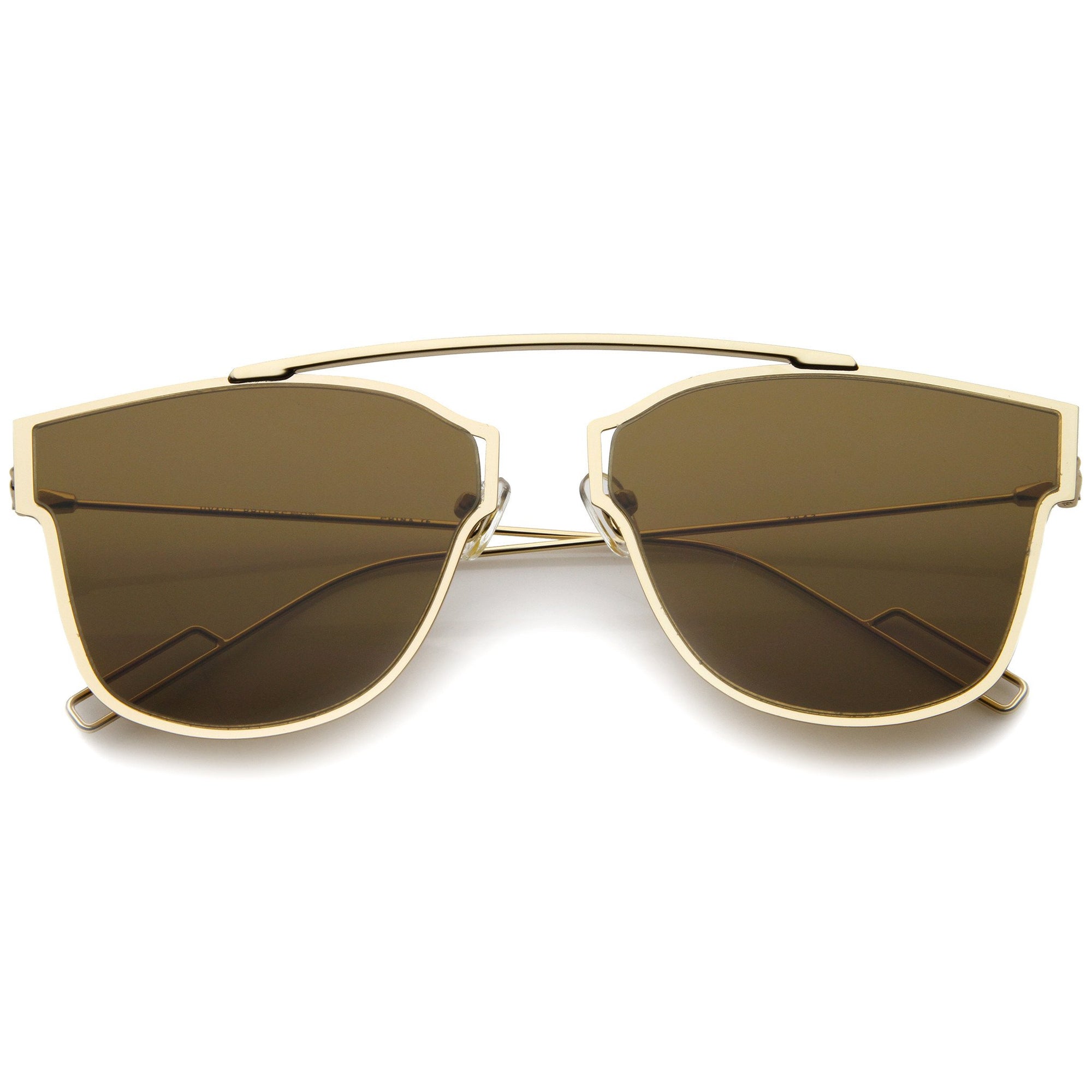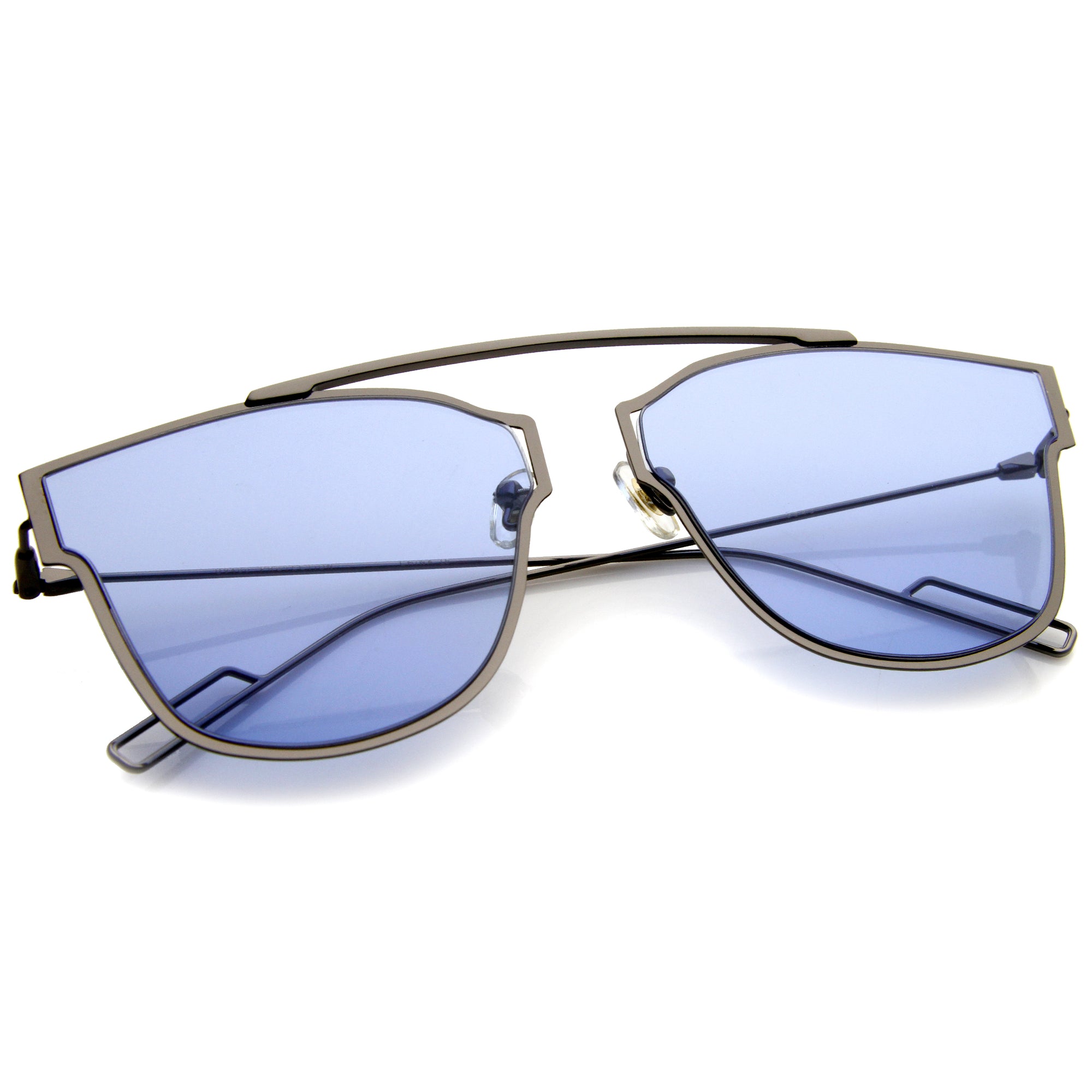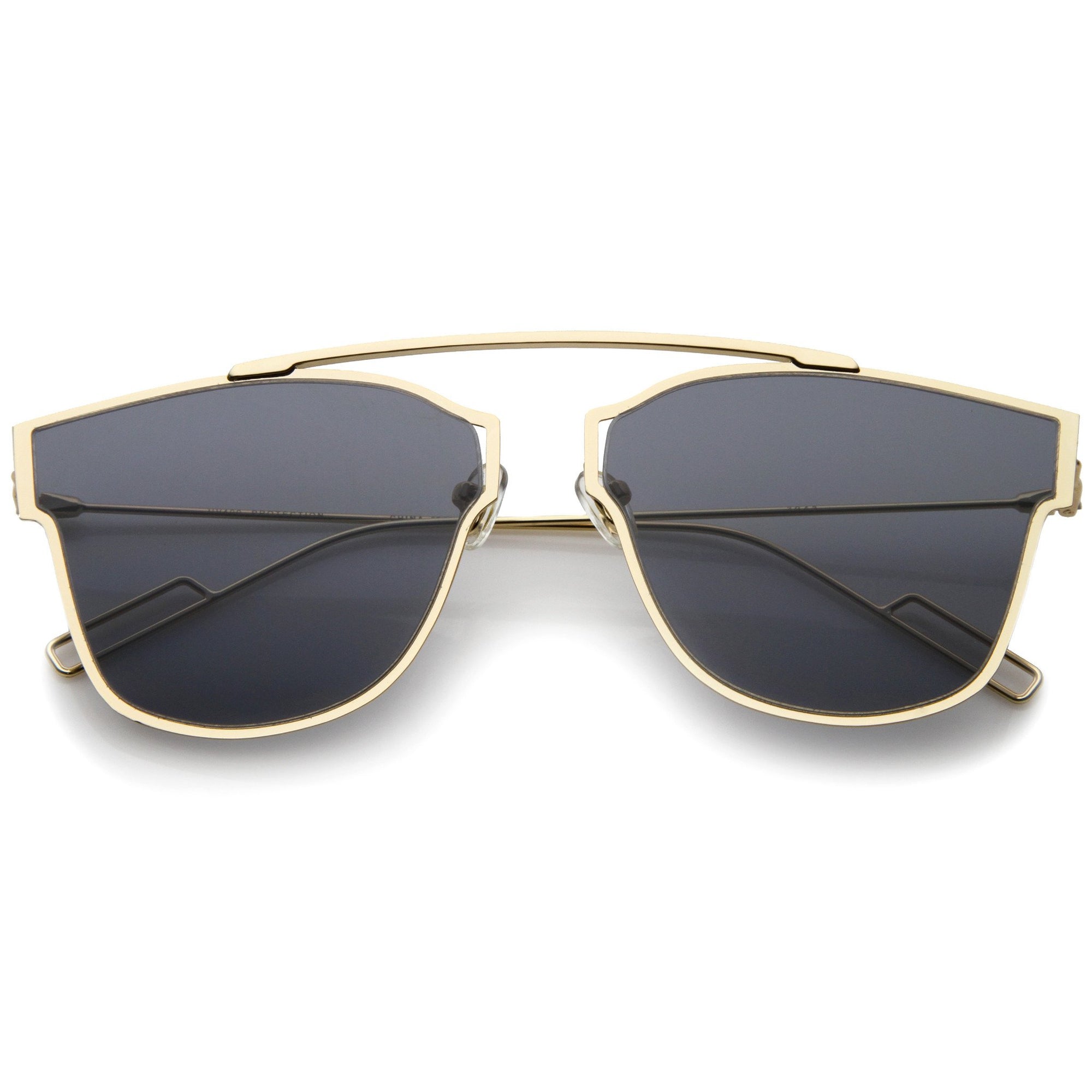 Un diseño arquitectónico pantos de metal abierto crea una silueta geométrica y distintiva para un estilo icónico minimalista. Los elementos modernos incluyen patillas delgadas con ganchos y alambre y una lente plana para una apariencia elegante cuando se usan. Fabricados con una montura totalmente metálica, piezas nasales de estilo inglés y lentes de policarbonato con protección UV400.