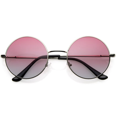Gafas de sol redondas con marco de metal fino y lentes de color degradado estilo Lennon clásico mediano 53 mm C990