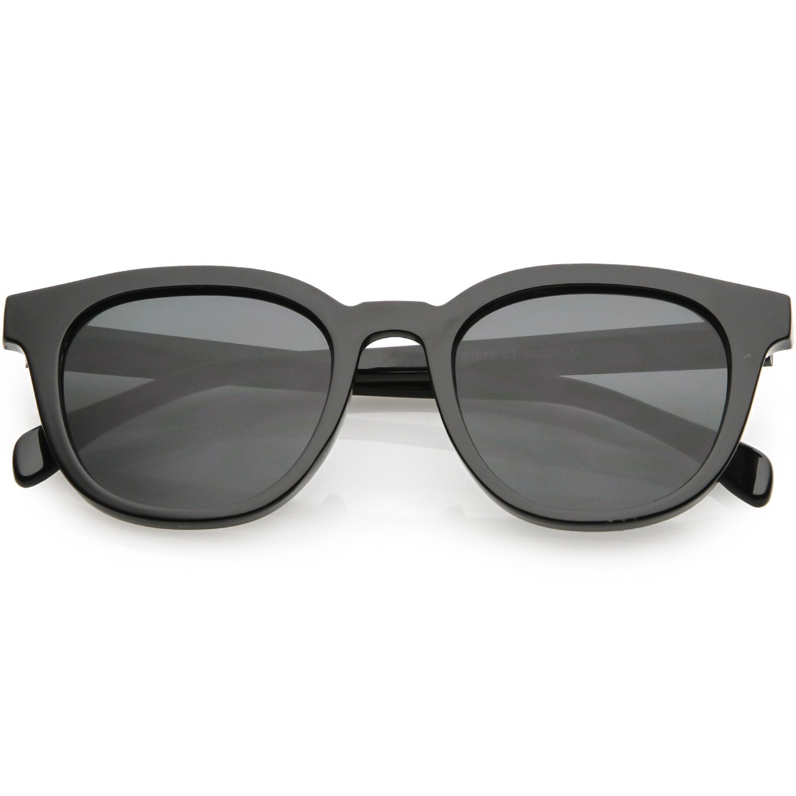 Gafas de sol retro modernas con borde de cuernos y lentes planas espejadas C834