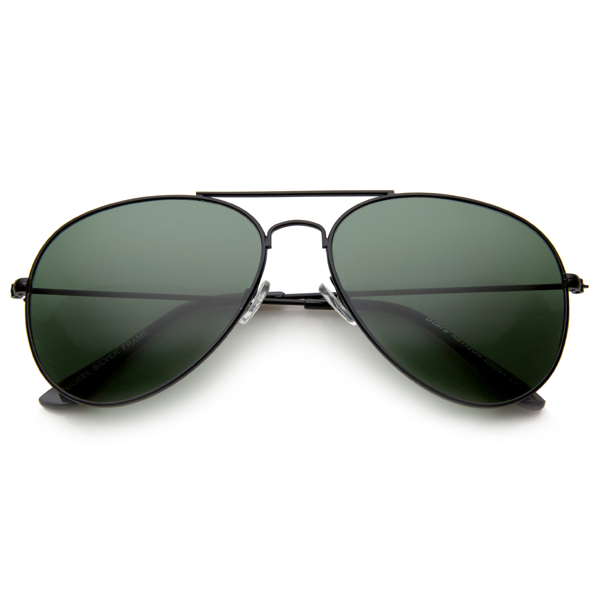 Gafas de sol estilo aviador con lentes verdes y marco metálico completo con barra transversal clásica A293