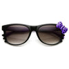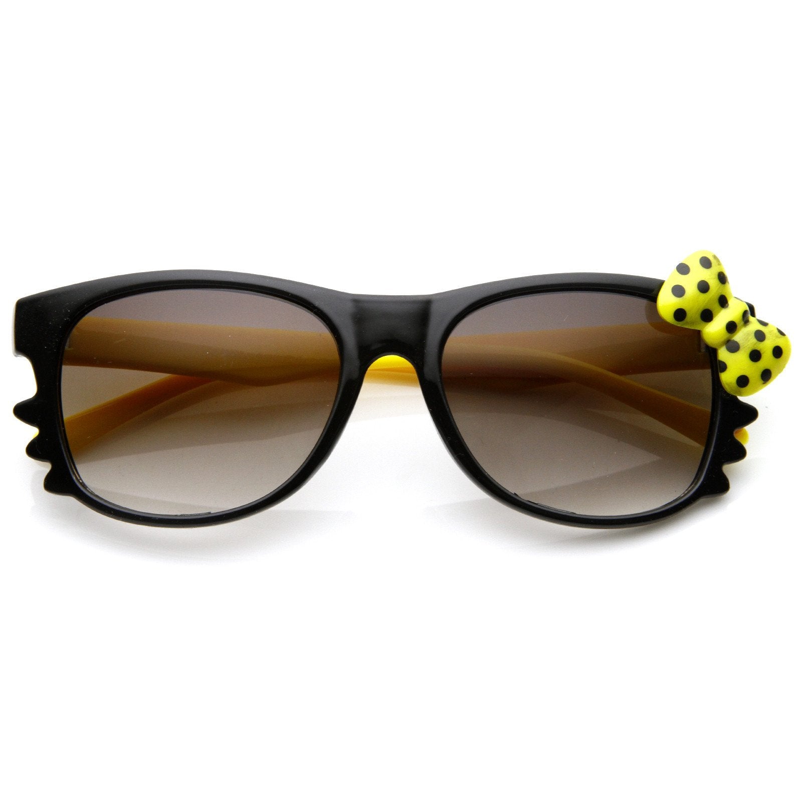 Súper lindas gafas de sol con montura en forma de cuerno que presentan un adorable lazo de gatito con lunares en la patilla izquierda y bigotes a los lados de la montura. ¡Estas atrevidas gafas son imprescindibles para cualquier colección de gafas de sol! Fabricado con bisagras de metal y lente de policarbonato ahumado con protección UV.