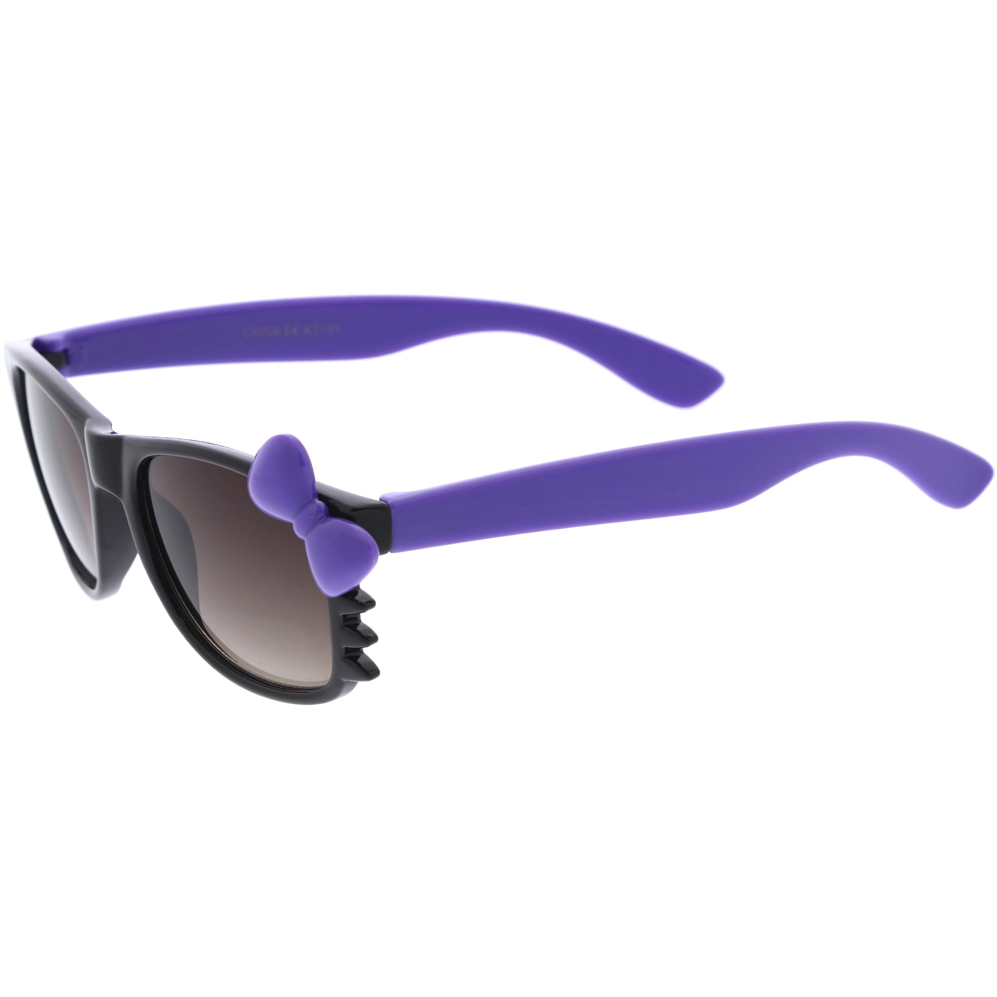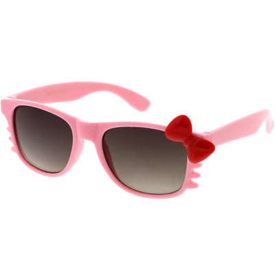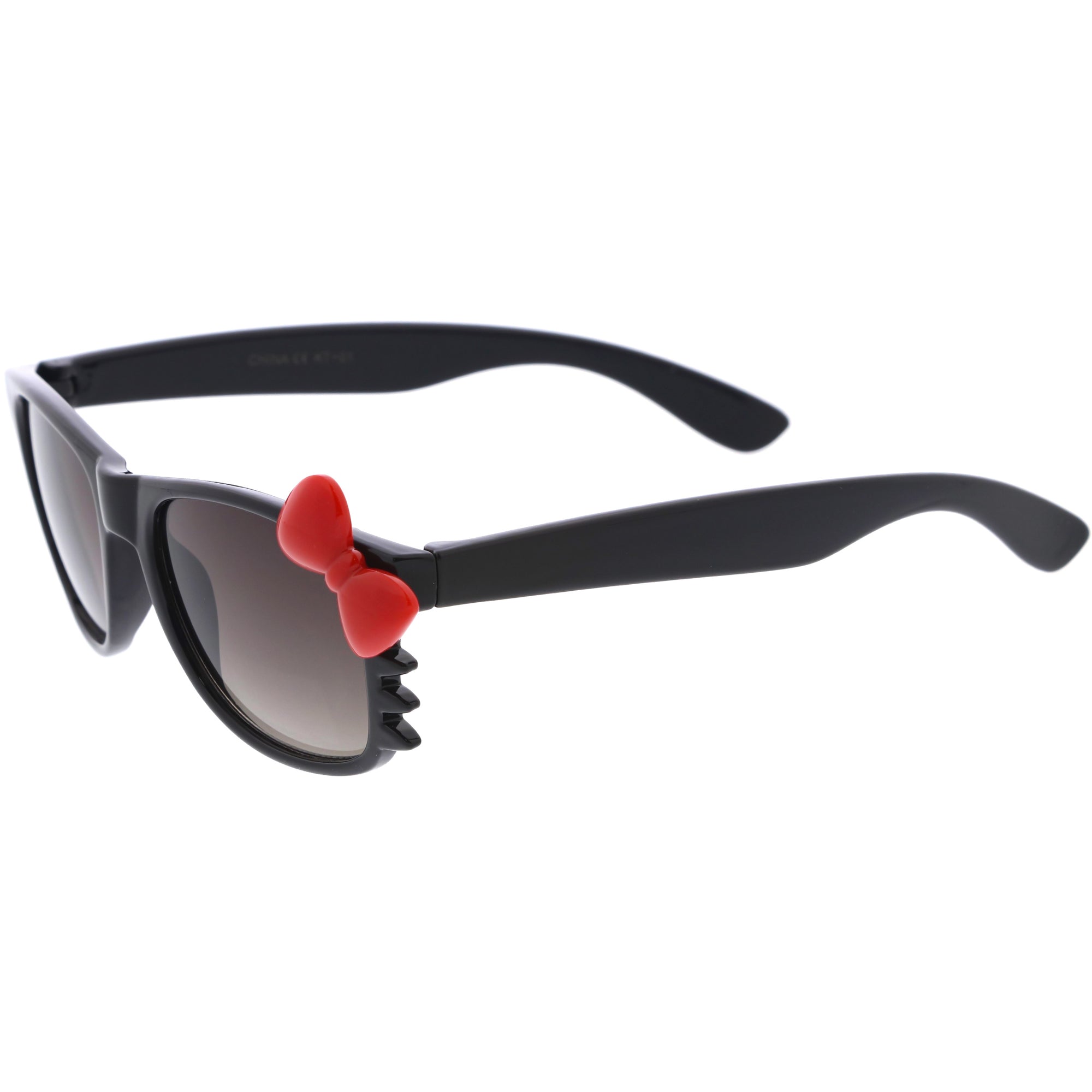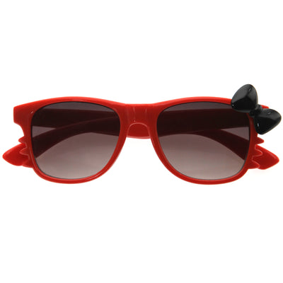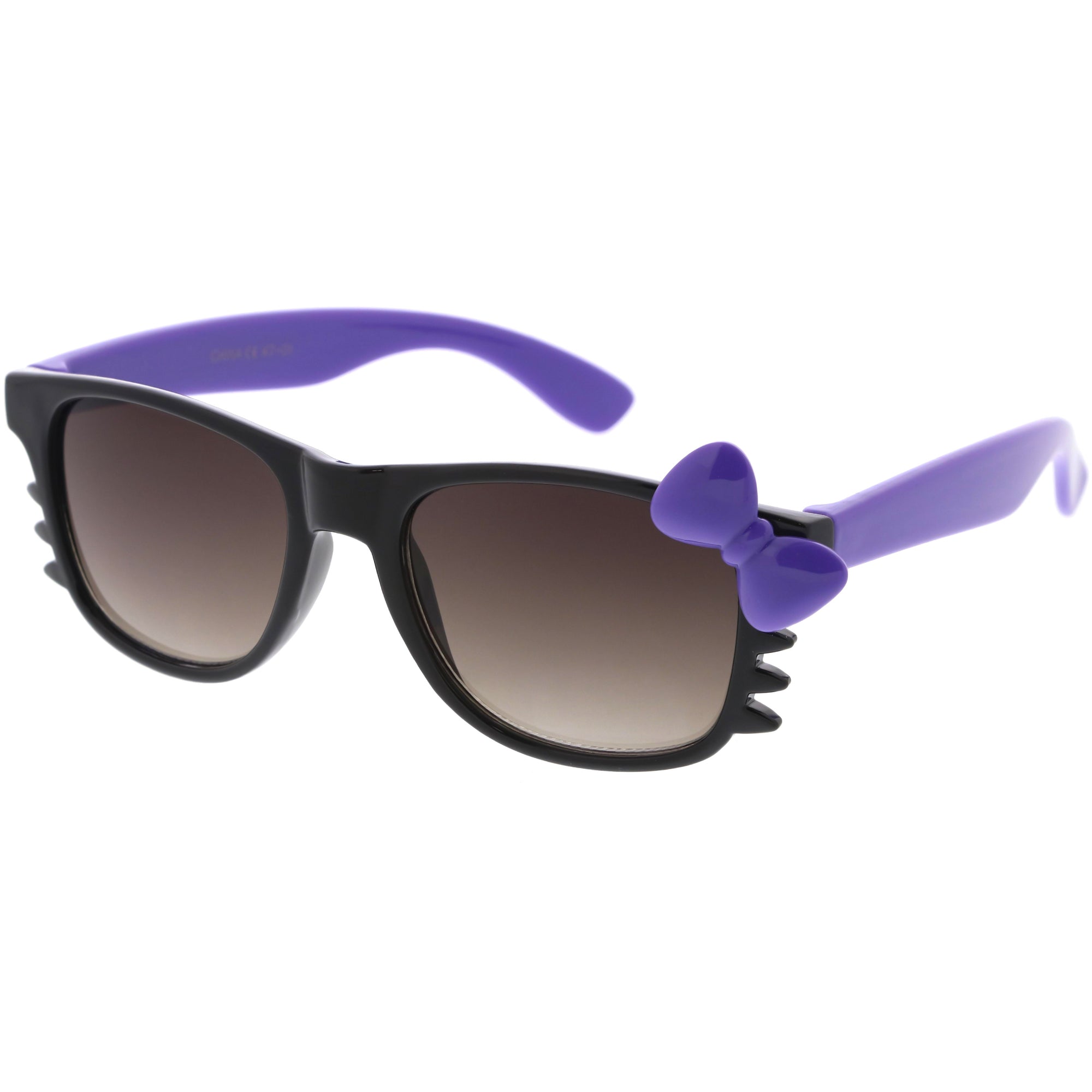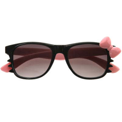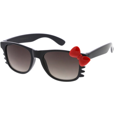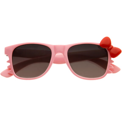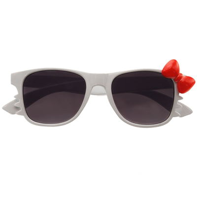 Gafas de sol súper lindas con montura de cuerno que presentan un adorable lazo de gatito en la patilla y bigotes a los lados de la montura. Estas atrevidas gafas de sol son imprescindibles para cualquier niño. Fabricadas con lentes de policarbonato con protección UV400.