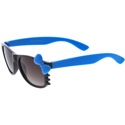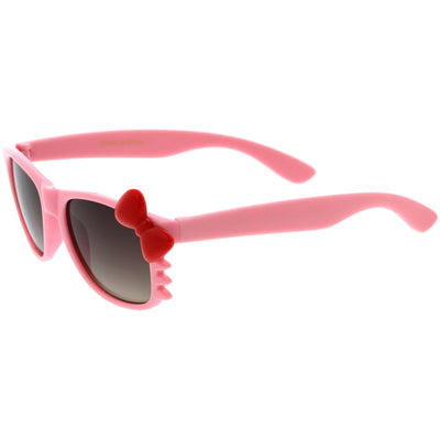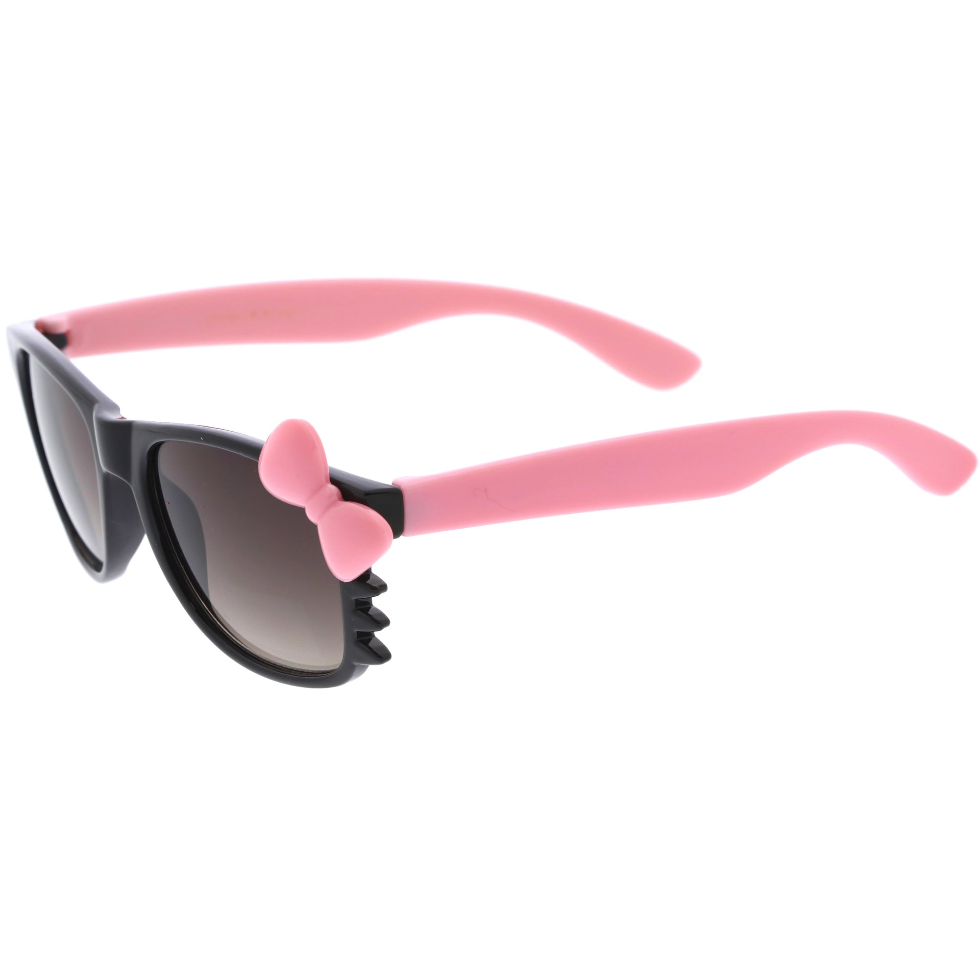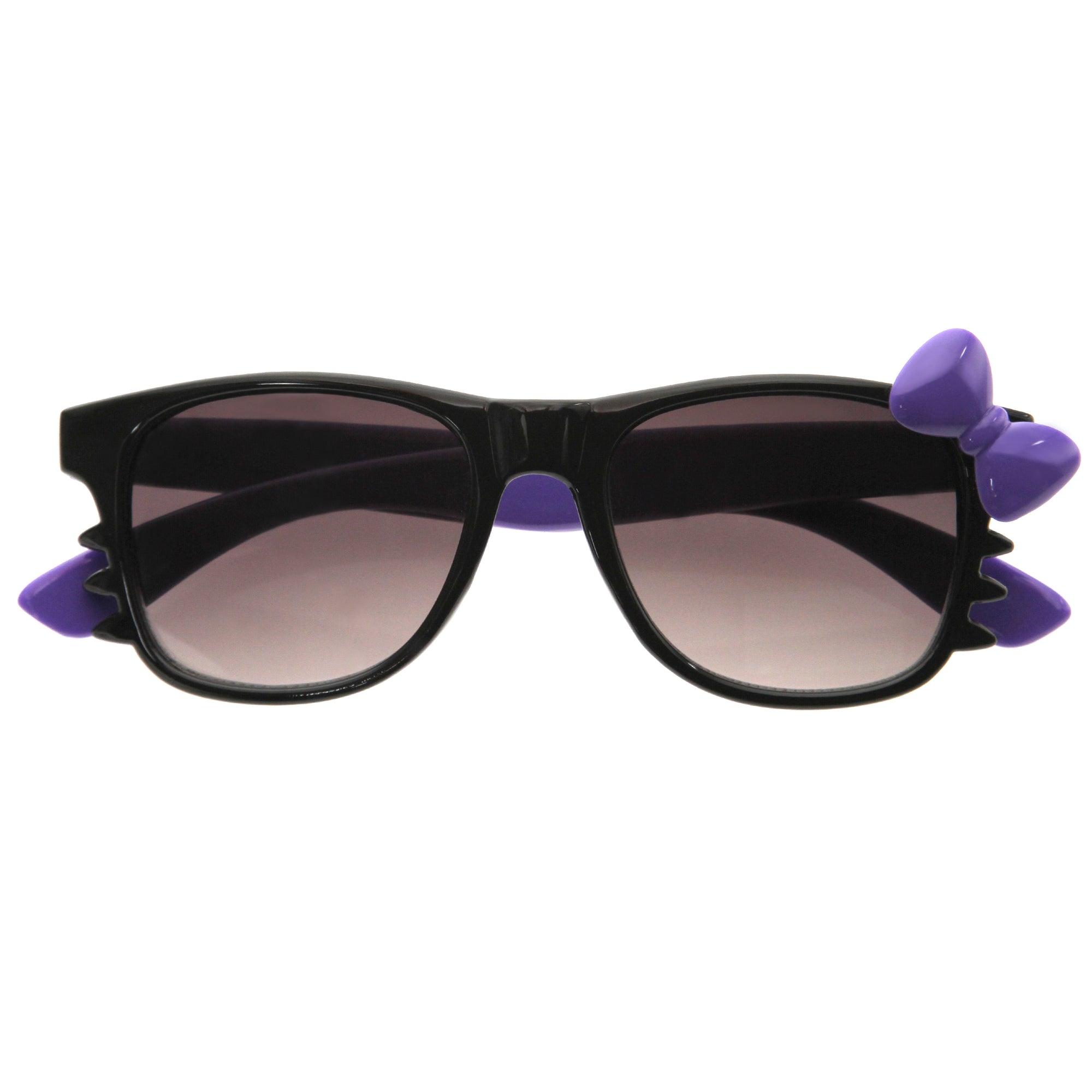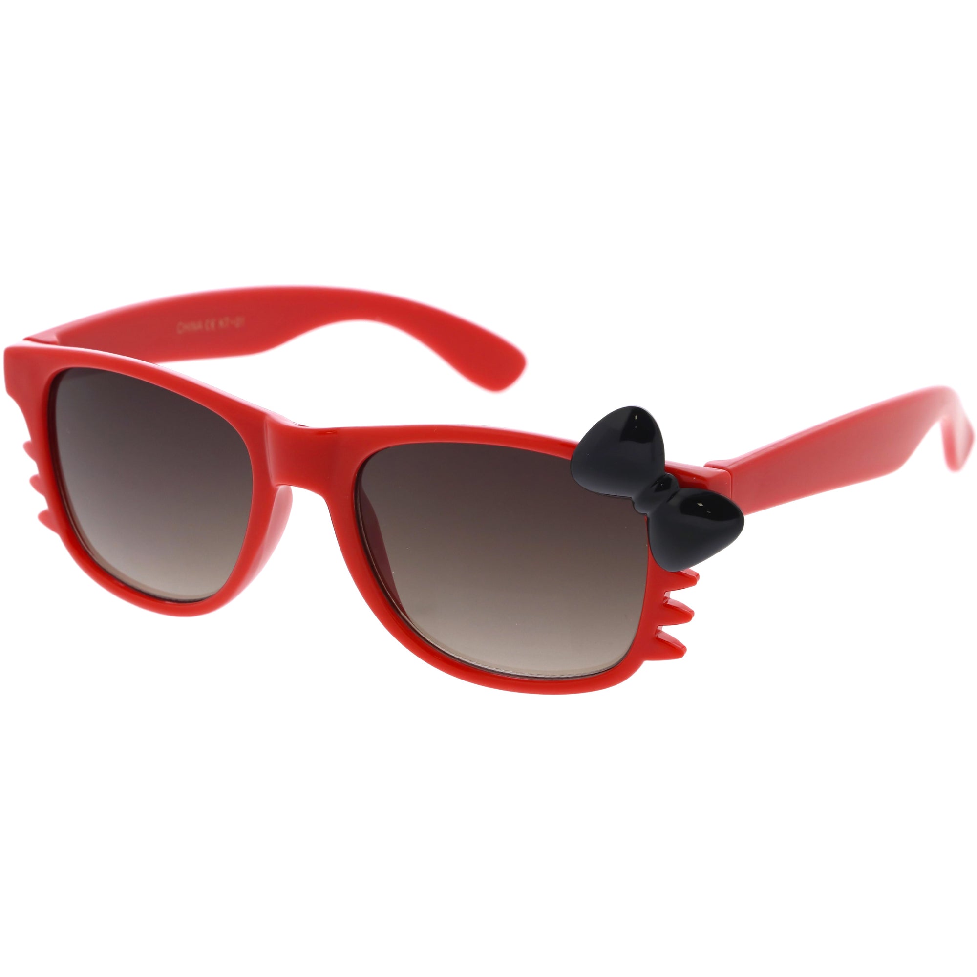 Gafas de sol súper lindas con montura de cuerno que presentan un adorable lazo de gatito en la patilla y bigotes a los lados de la montura. Estas atrevidas gafas de sol son imprescindibles para cualquier niño. Fabricadas con lentes de policarbonato con protección UV400.