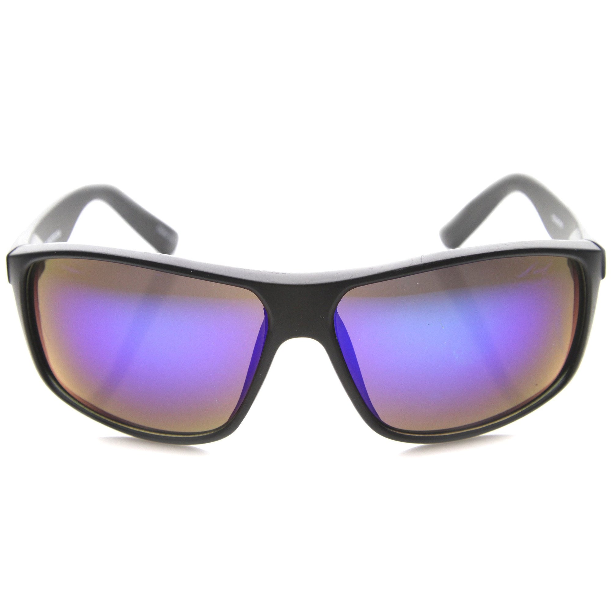 Gafas de sol modernas y cuadradas para deportes de acción que cuentan con patillas anchas y atrevidas y lentes espejadas de colores llamativos. Perfecto para cualquiera que necesite una montura para deportes de acción elegante y de ajuste más amplio en esta temporada soleada. Fabricado con un marco de plástico, bisagras con pasadores y lentes de policarbonato con protección UV400.