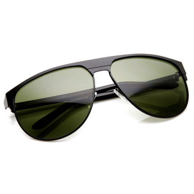 Montura de aviador contemporánea que presenta una elegante estructura de metal con un diseño de patillas altas y planas. Las líneas elegantes y el acabado metálico crean una apariencia masculina muy moderna. Fabricado con un marco de metal, bisagras de metal y lentes de policarbonato con protección UV.