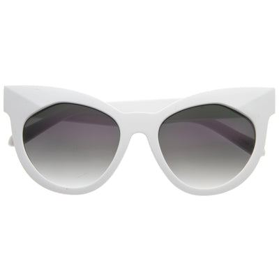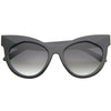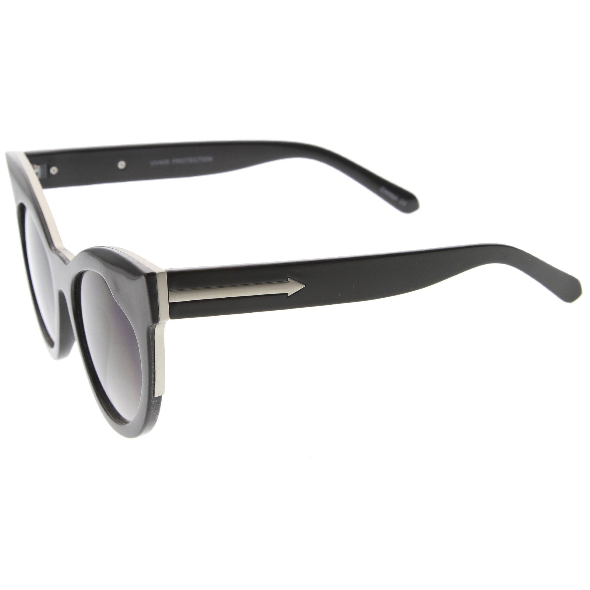 Silueta de ojo de gato de gran tamaño que presenta una montura gruesa y atrevida con refuerzos metálicos y salpicada de elegantes flechas metálicas a lo largo de las sienes. También diseñado con lentes planas para una menor curvatura del marco, creando una apariencia aplanada y al ras. Estas gafas de sol tipo ojo de gato de gran tamaño complementan especialmente los rostros más redondos y se ofrecen en una variedad de colores divertidos para complementar todos tus guardarropas esta temporada. Fabricado con un marco de plástico y metal, bisagras de metal y lentes de policarbonato con protección UV400.
