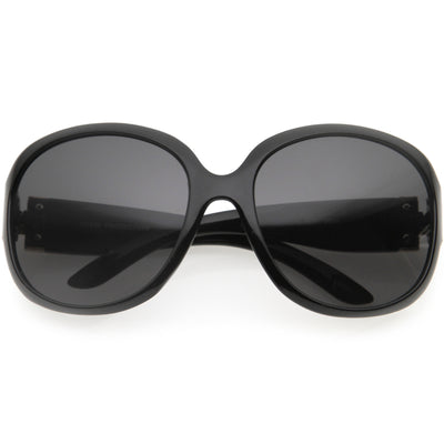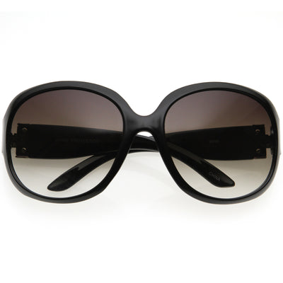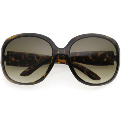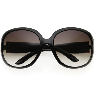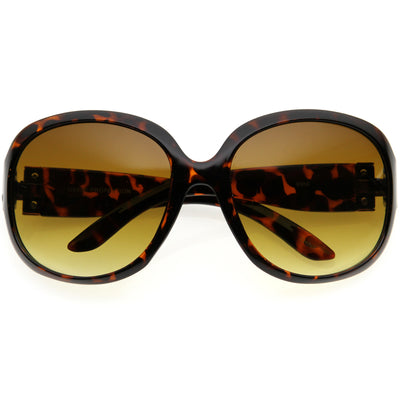 Gafas de sol redondas extragrandes de inspiración europea que son elegantes y elegantes. Estas gafas de sol de colores neutros serán el complemento perfecto para tus accesorios de moda diarios. Fabricado con un marco de plástico, bisagras de metal, lentes de policarbonato degradado con protección UV400.