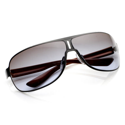 Gafas de sol de aviador con montura metálica de alta calidad y parte superior plana que cuentan con elegantes patillas de plástico que presentan un aspecto muy moderno. Perfectas para un look masculino informal, ideales para un par de gafas de sol fáciles de usar y para todos los días. Fabricado con una montura de metal, patillas de plástico y lentes con protección UV400.