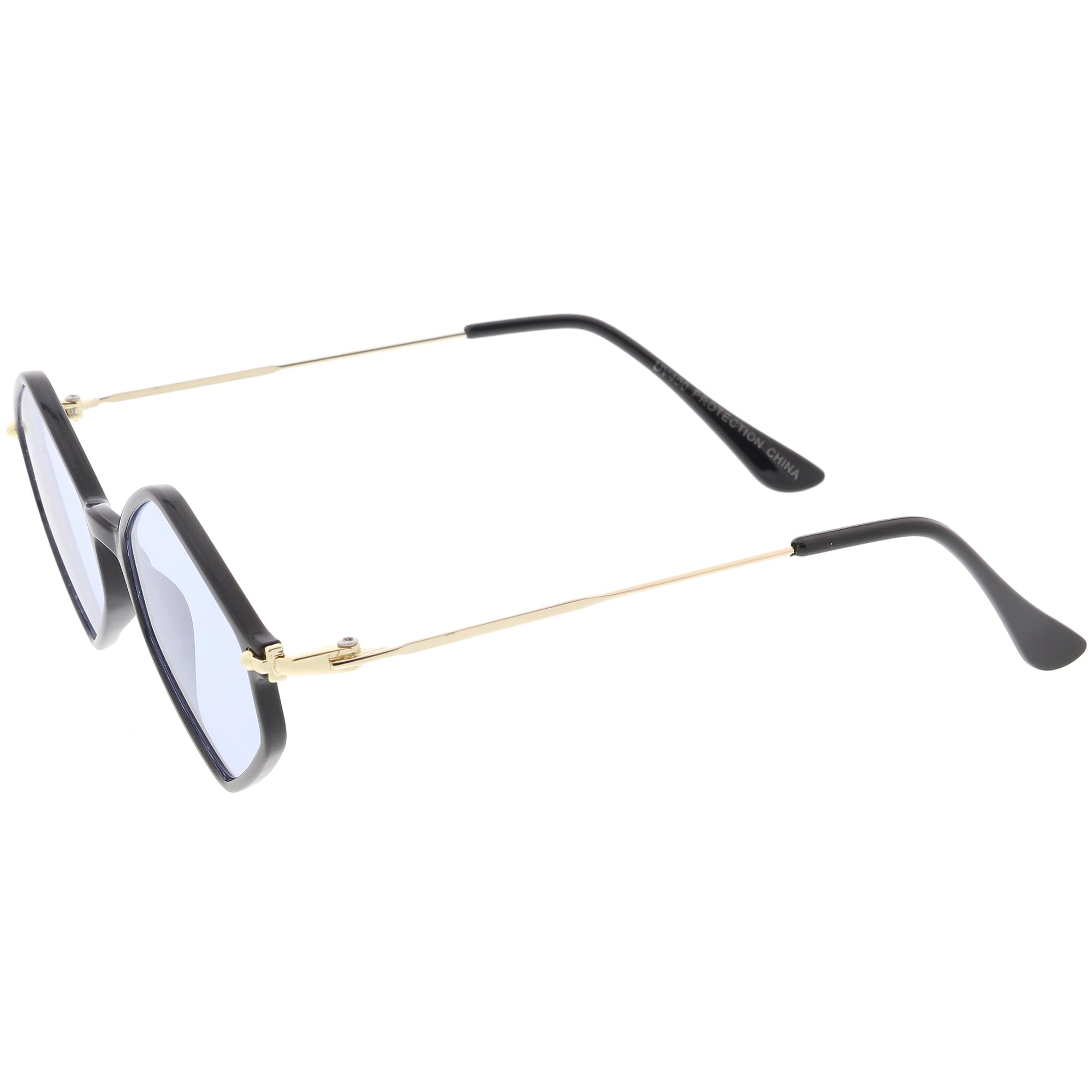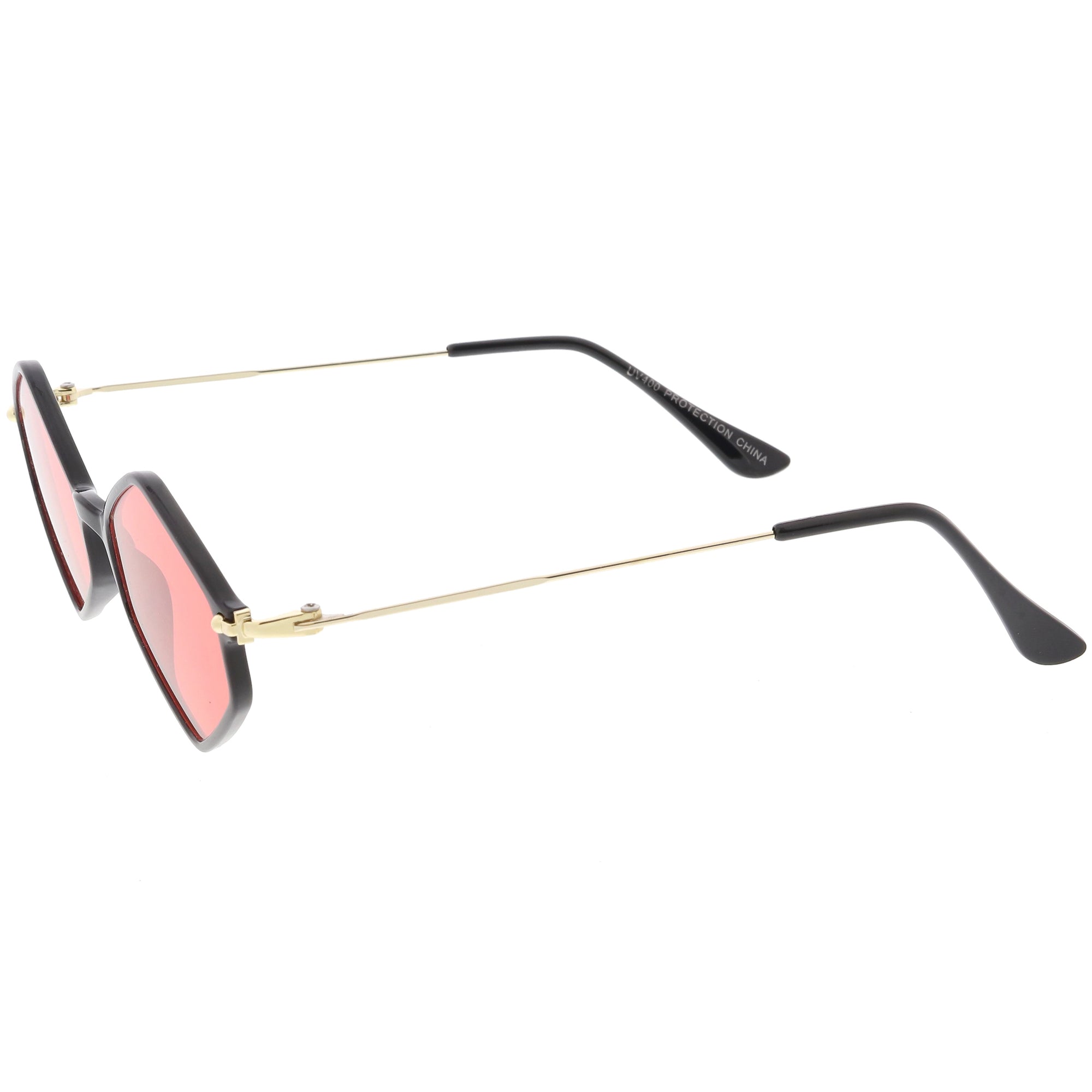 Gafas de sol hexagonales geométricas con lentes tintadas en tonos vibrantes. En contraste con patillas de metal ultradelgadas y un diseño de bisagra único, estas gafas de sol geométricas son una gran incorporación a nuestra colección de verano. Fabricado con una montura a base de plástico y metal y lentes 100% con protección UV.