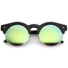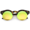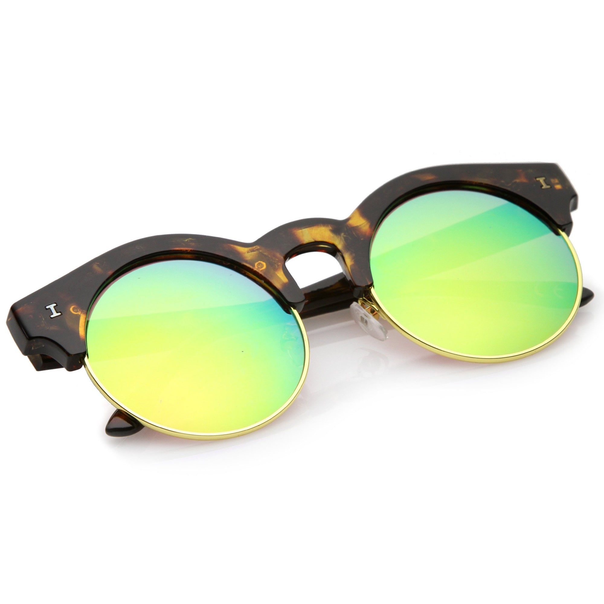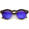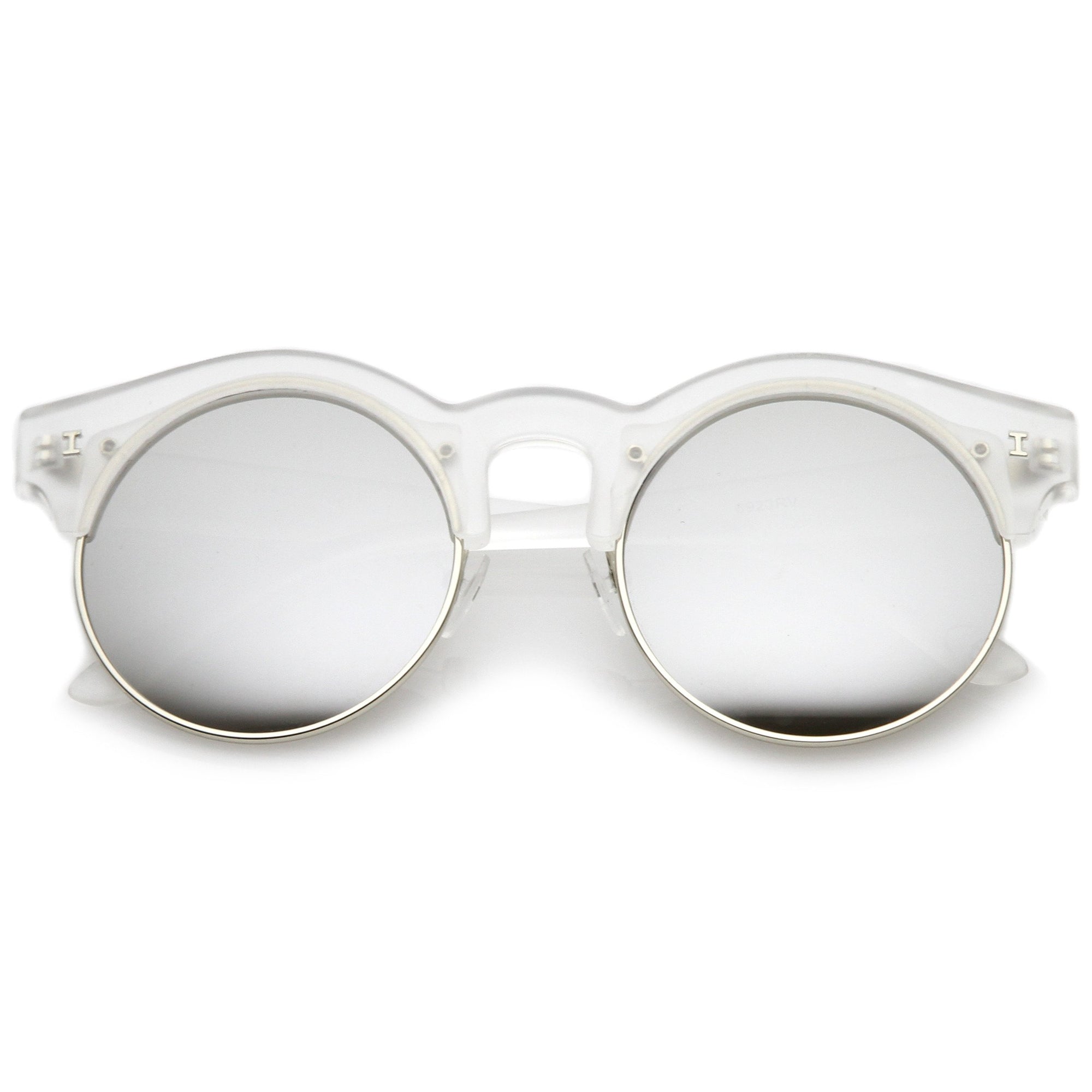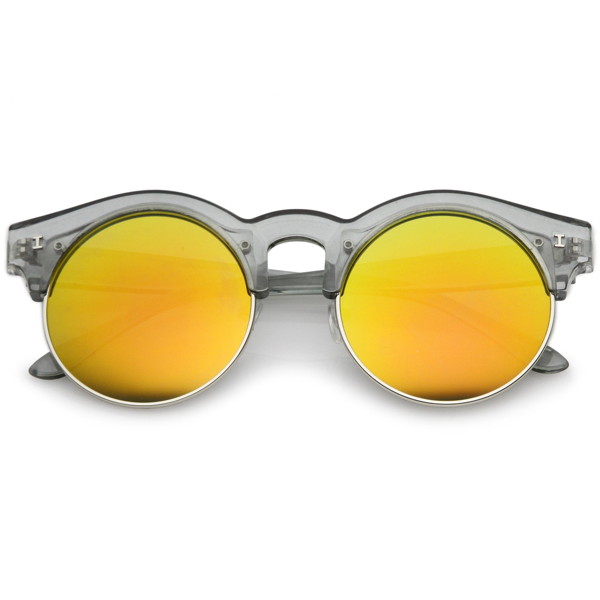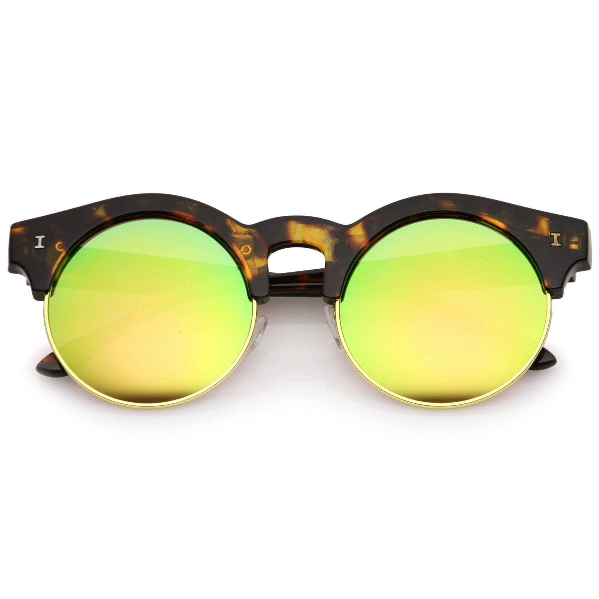 Una versión moderna de un estilo clásico, estas gafas de sol redondas de media montura están diseñadas con adornos metálicos a lo largo de las lentes planas de espejo de colores. Completas con detalles sutiles con montura de cuerno y patillas altas, estas gafas de sol de media montura son ideales para usar durante toda la temporada. Fabricado con una montura de plástico y metal, piezas nasales de estilo inglés, bisagras de metal y lentes reflectantes con protección UV400.