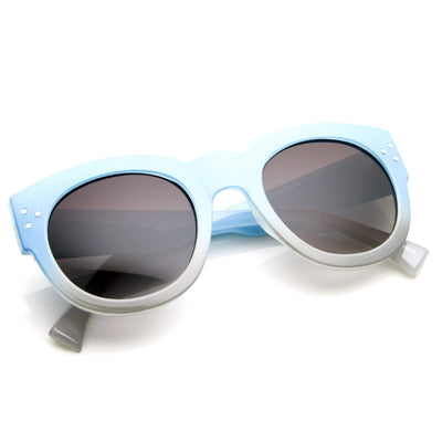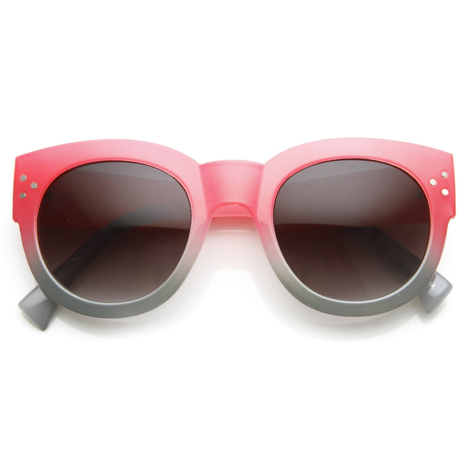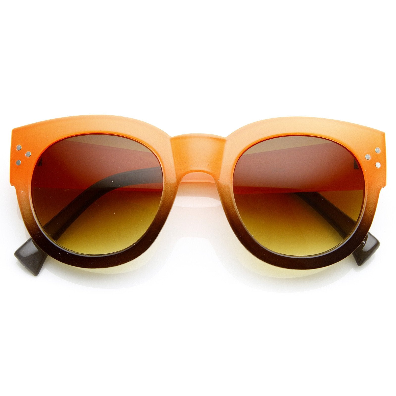 Gafas de sol con montura redonda, de gran tamaño y con montura atrevida, que cuentan con patillas altas con tres remaches distintos en cada esquina y una montura de dos tonos de color descolorido. ¡La gran silueta de gran tamaño y los divertidos colores de dos tonos hacen de esta una maravillosa opción para la temporada cálida y soleada! Fabricado con una montura a base de acetato, bisagras metálicas y lentes de policarbonato con protección UV.
