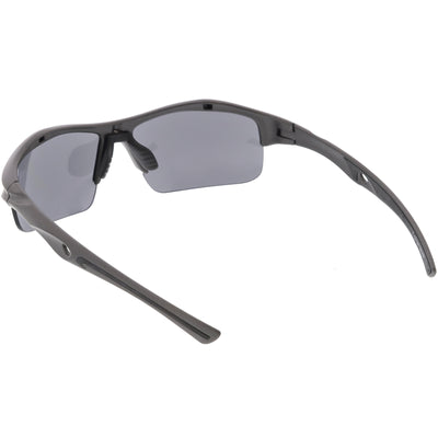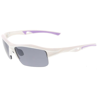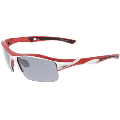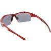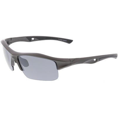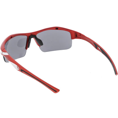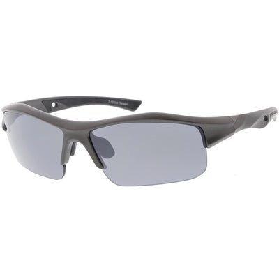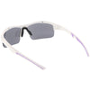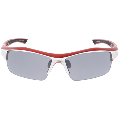 Lleve su juego al siguiente nivel con estas gafas de sol deportivas livianas y duraderas diseñadas por expertos con una montura envolvente TR-90 semi sin montura que le brinda una vista sin obstáculos de 180 grados. Complementadas con lentes rectangulares de colores neutros, estas gafas de sol deportivas se completan con almohadillas nasales de silicona antideslizantes y silicona moldeada inyectada en contraste en las patillas delgadas. Fabricado con un marco de plástico TR-90, bisagras de pasador y lentes 100% con protección UV.