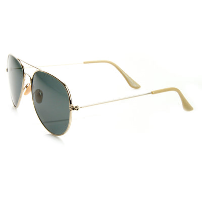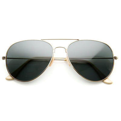Elegante y atemporal, el clásico estilo aviador nunca pasará de moda. Presenta puntas de patillas de colores y lente de cristal de 56 mm de ancho. Con una elaboración duradera y una calidad excepcional, no es de extrañar que este sea uno de nuestros estilos de aviador más populares. Fabricado con un marco de metal, bisagras de metal clásicas, piezas nasales de estilo inglés y lentes de vidrio con protección UV.