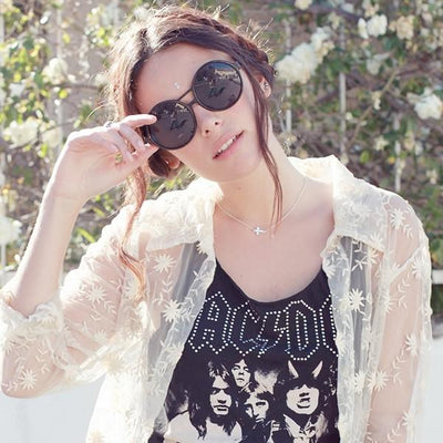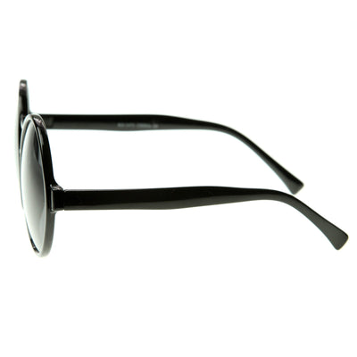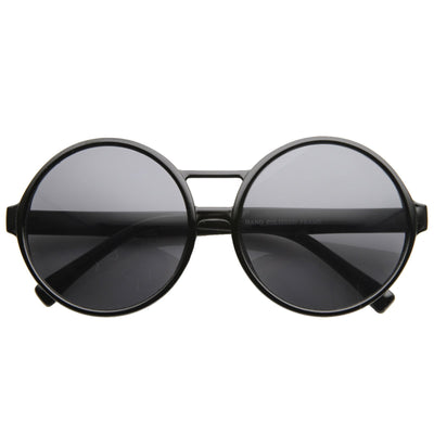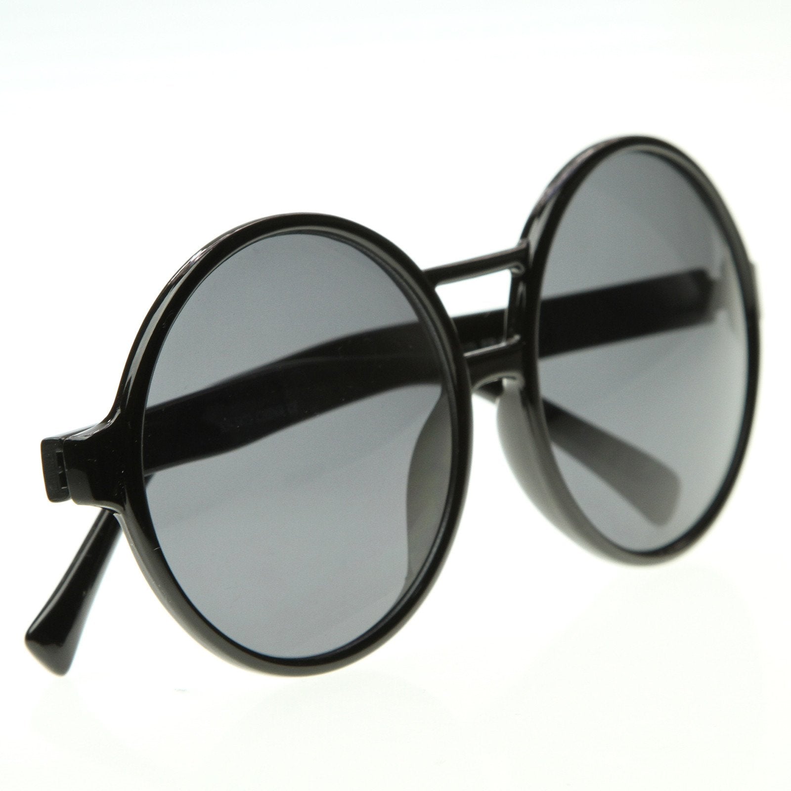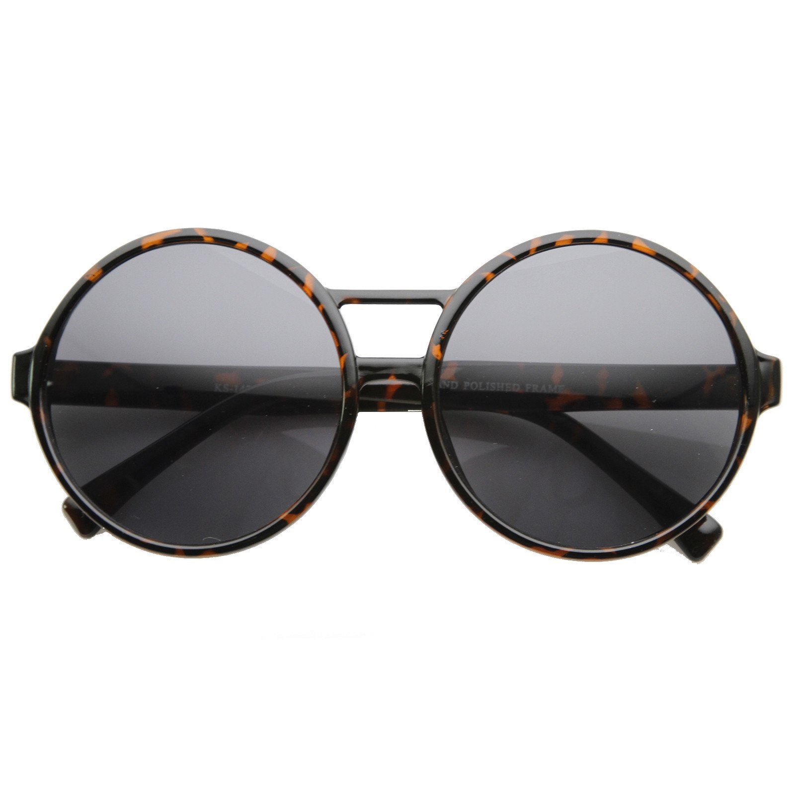 Montura de silueta circular redonda de gran tamaño que presenta un puente nasal de dos barras. ¡Perfecto para un look vintage chic! Fabricado con una montura a base de acetato, bisagras metálicas y lentes de policarbonato con protección UV.