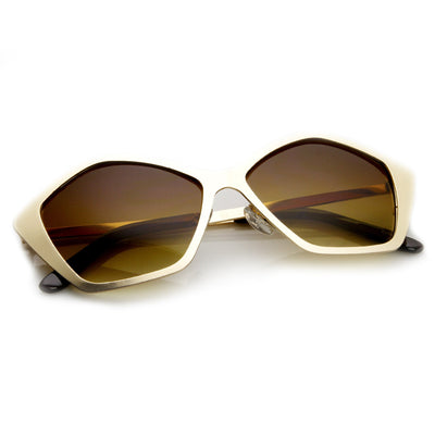 Gafas de sol totalmente metálicas de alta moda que presentan ángulos geométricos únicos que crean una forma hexagonal. Rompe con los tradicionales cuadrados y círculos esta temporada con estas gafas de sol hexagonales súper elegantes. Fabricadas con una montura de metal, piezas nasales de estilo inglés y lentes con protección UV400.