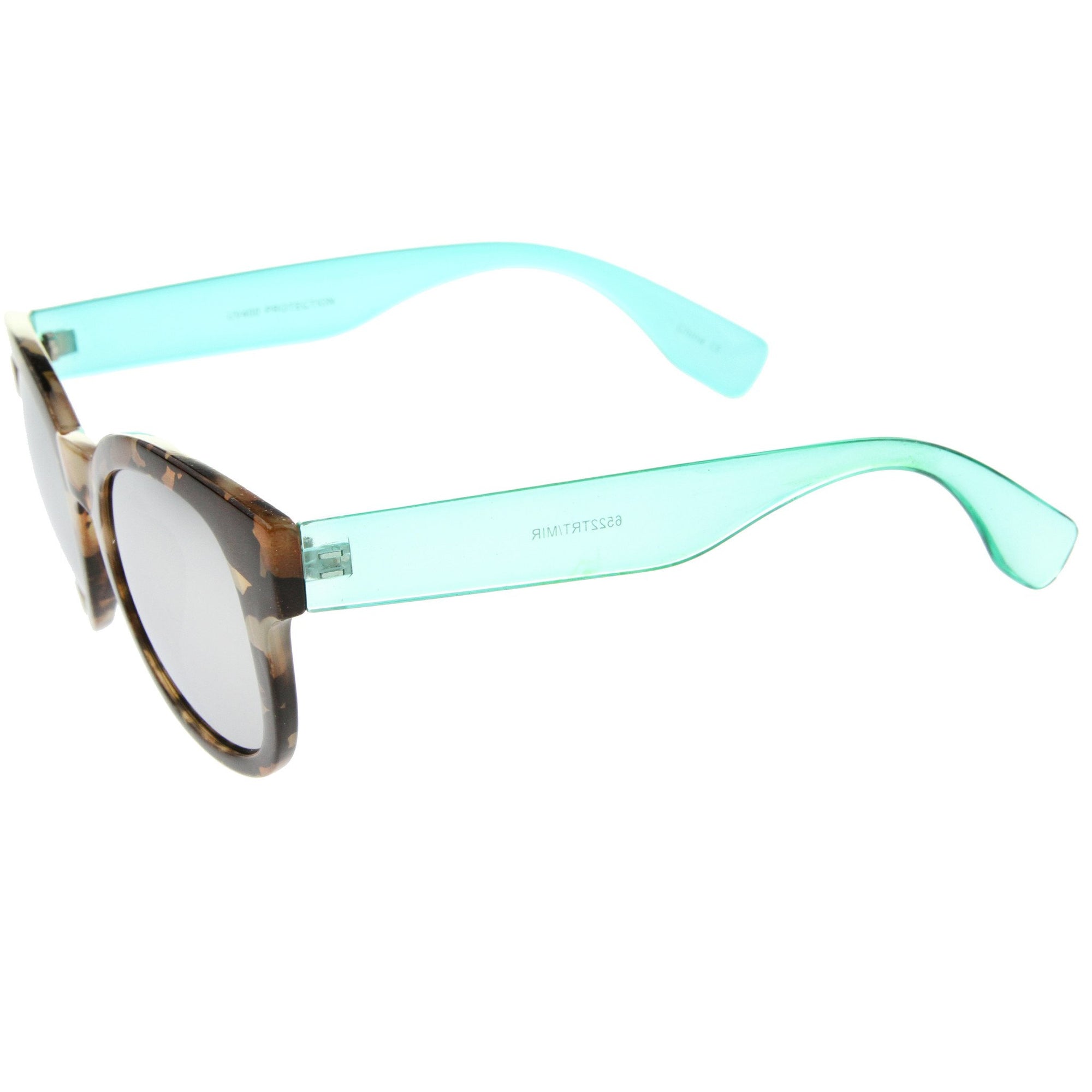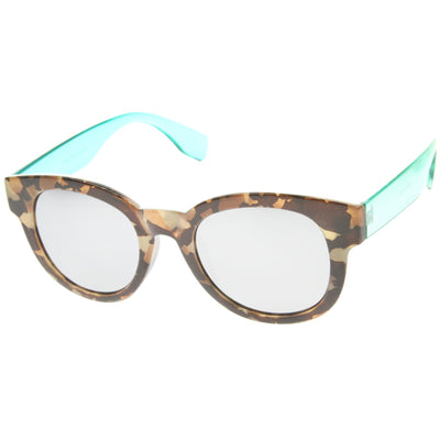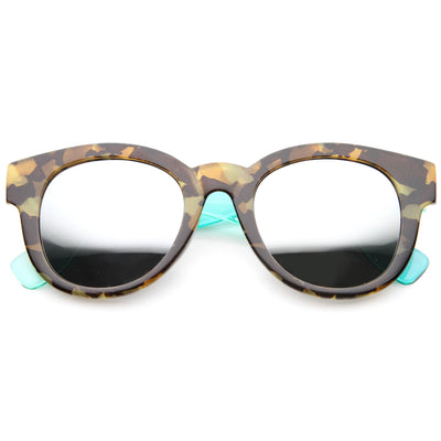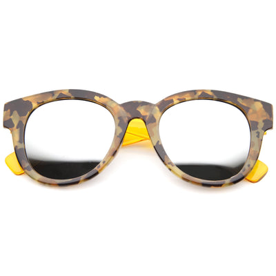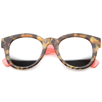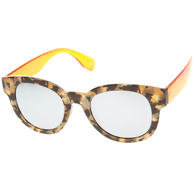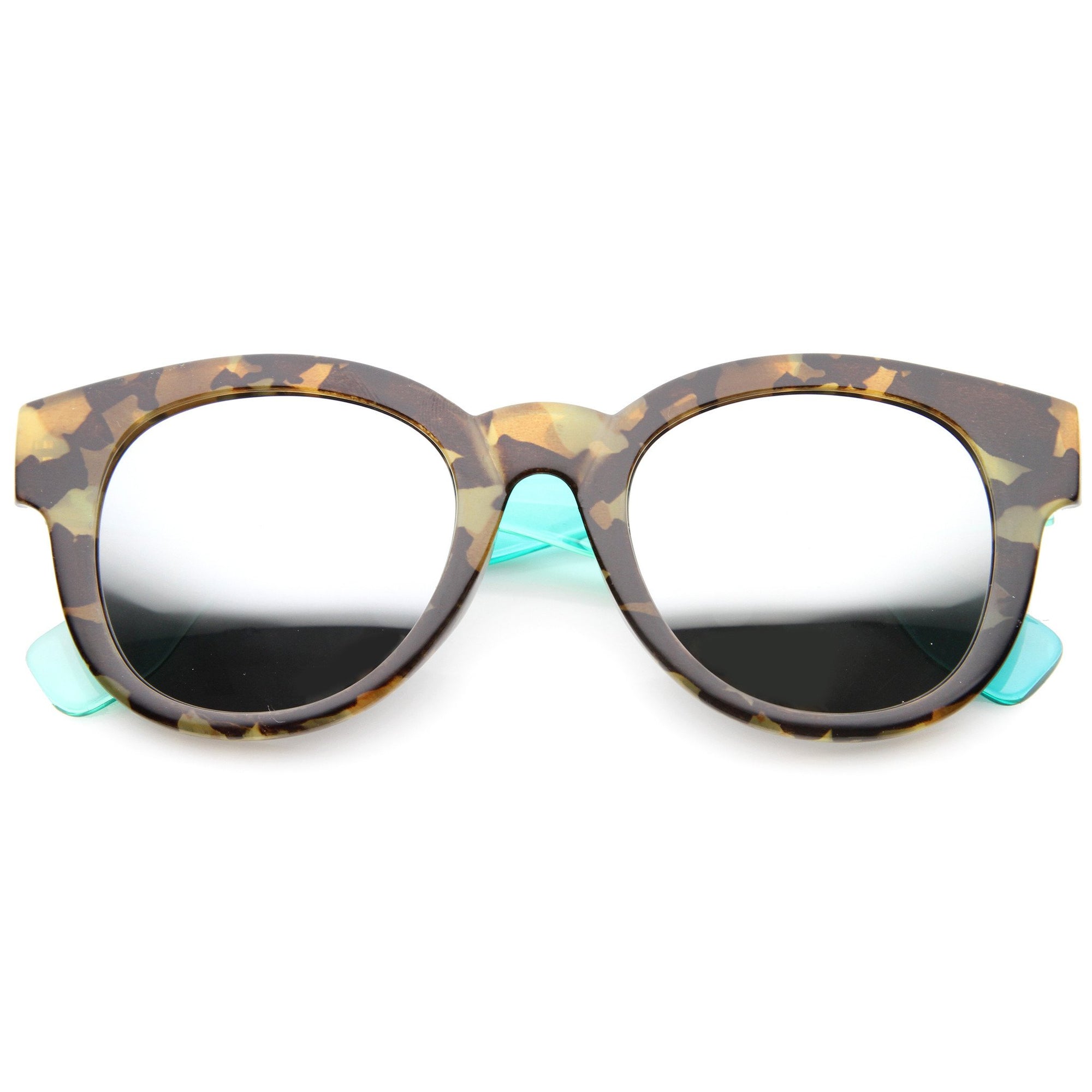 Destaca entre la multitud con estas gafas de sol con montura de cuerno de dos tonos. Estas divertidas gafas de sol están diseñadas con una montura frontal con estampado de tortuga en bloque y patillas translúcidas en contraste en tonos vibrantes. Impresionantes lentes de espejo reflectantes y patillas altas rematan este estilo atrevido y moderno. Estos llamativos tonos se pueden diseñar para un día de playa o una fiesta en la piscina. Fabricado con un marco de plástico, bisagras de metal y lentes de policarbonato reflectantes UV400.