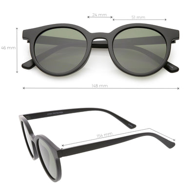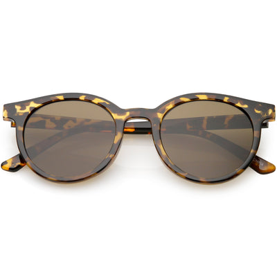 Este estilo con montura de carey es una pieza clásica imprescindible. Crea una apariencia atemporal con una camiseta sencilla, jeans y estas gafas de sol de colores neutros. Las lentes planas redondas le dan a este look retro la cantidad perfecta de toque moderno. Disponible en acabados de marco mate y brillante. Completo con un marco de plástico, bisagras de metal y lentes 100% con protección UV.