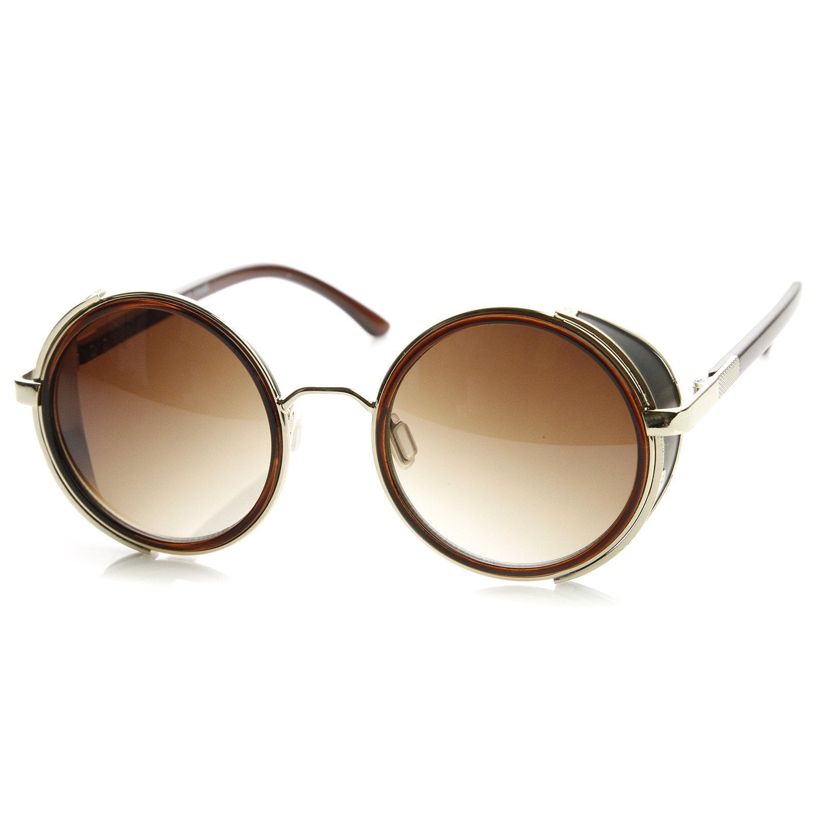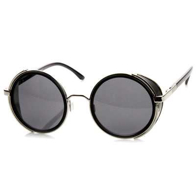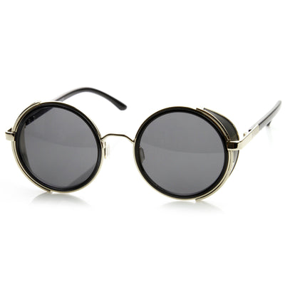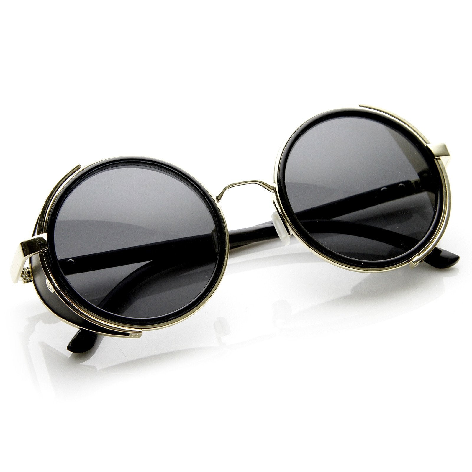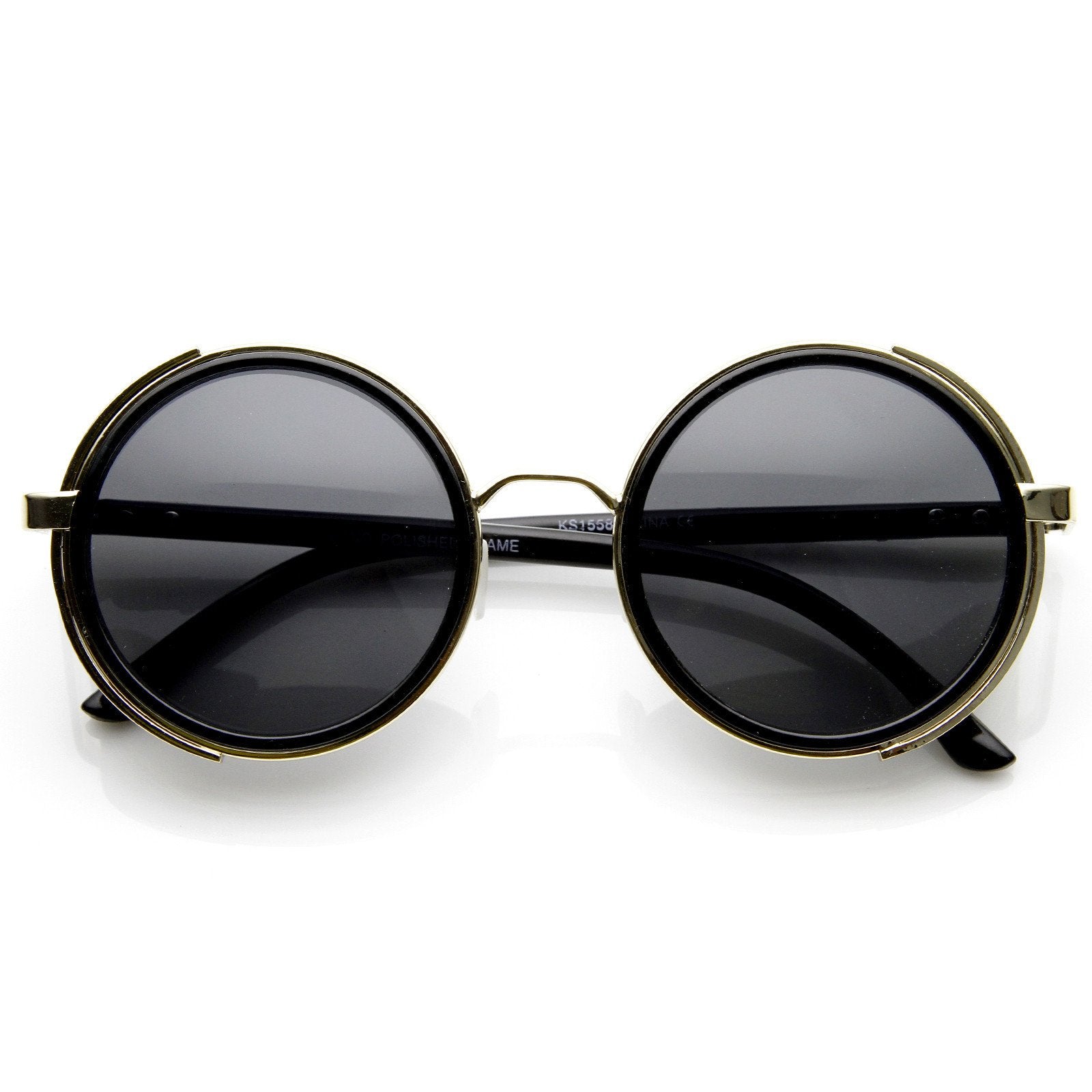 Gafas de sol de silueta redonda con laterales cubiertos Studio que presentan un marco exterior de metal con relleno de plástico en la parte interior y cubiertas protectoras en los laterales. Estas elegantes gafas de sol redondas revestidas de estudio adquieren un estilo vanguardista esta temporada. Fabricado con un marco a base de metal y plástico, bisagras de metal y lentes de policarbonato con protección UV400.