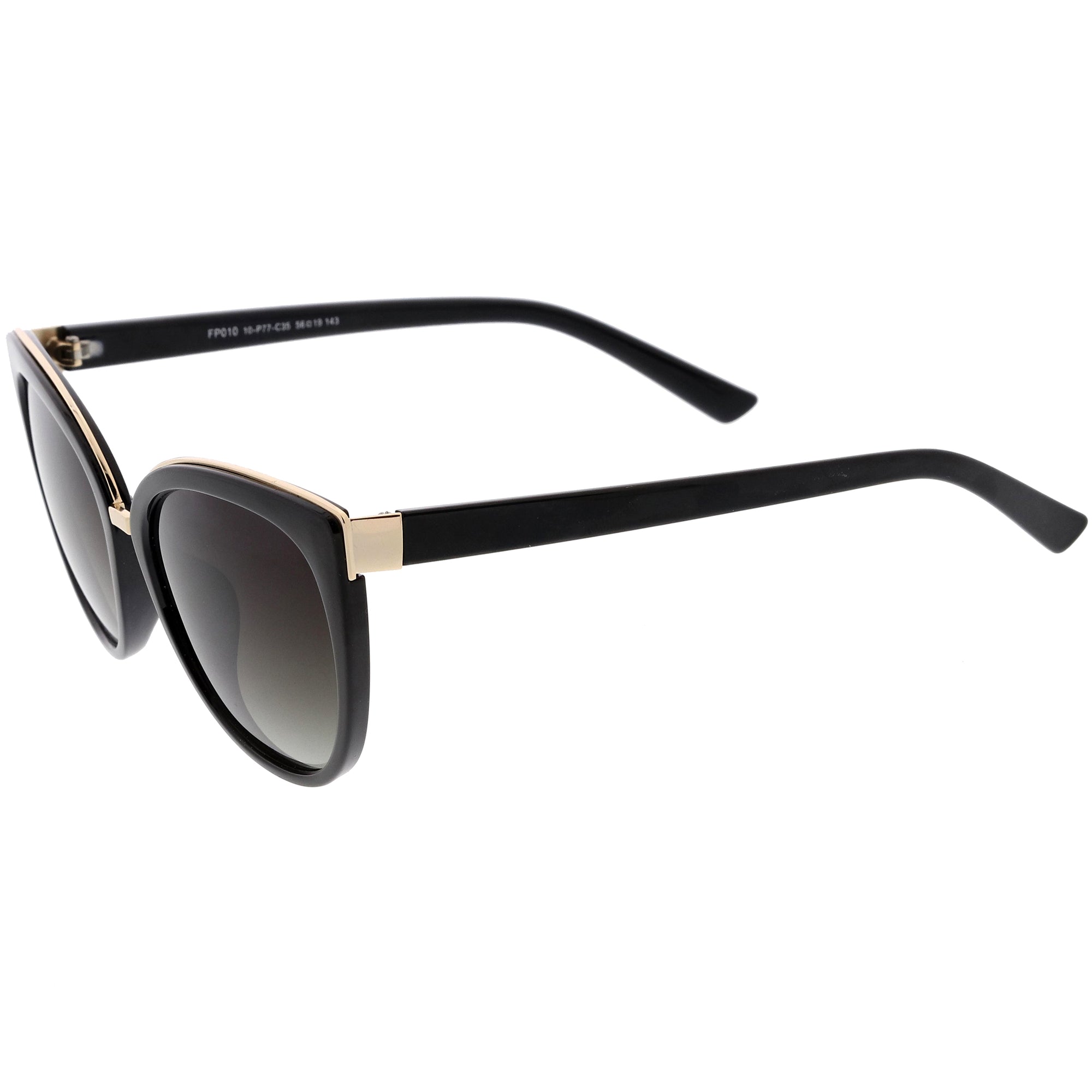 Un diseño clásico que es a la vez elegante y funcional, estas gafas de sol estilo ojo de gato cuentan con adornos de metal a lo largo del marco y patillas altas. Elaboradas con lentes polarizadas en tonos neutros, estas gafas de sol polarizadas reducen el deslumbramiento y los reflejos proporcionando una visión más clara. Ideales para el uso diario, estas gafas de sol estilo ojo de gato para mujer son un accesorio imprescindible. Fabricado con un marco de plástico y metal, bisagras de metal reforzado y lentes 100% con protección UV.