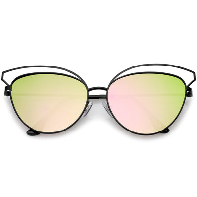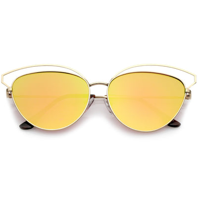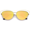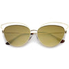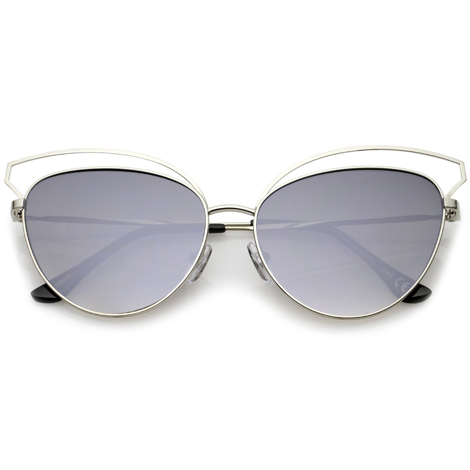 La combinación perfecta entre sofisticación y elegancia, estas gafas de sol estilo ojo de gato están exquisitamente diseñadas con una montura de metal abierta y una silueta de gran tamaño. Completas con patillas de metal delgadas para un atractivo minimalista y lentes de espejo de colores en forma de lágrima para mayor versatilidad, estas elegantes gafas de sol añaden un toque lujoso a cualquier look. Fáciles de usar y livianas, estas gafas de sol tipo ojo de gato añaden un efecto llamativo a cualquier look. Fabricado con una montura de metal, piezas nasales de estilo inglés, bisagras de metal y lentes reflectantes con protección UV400.