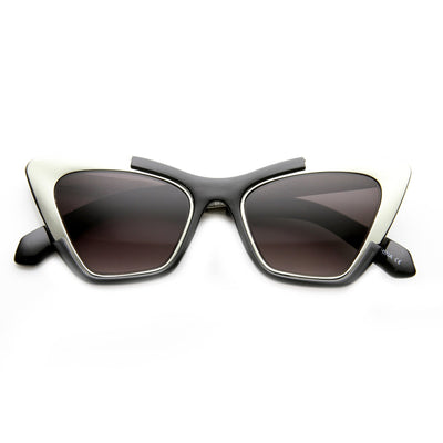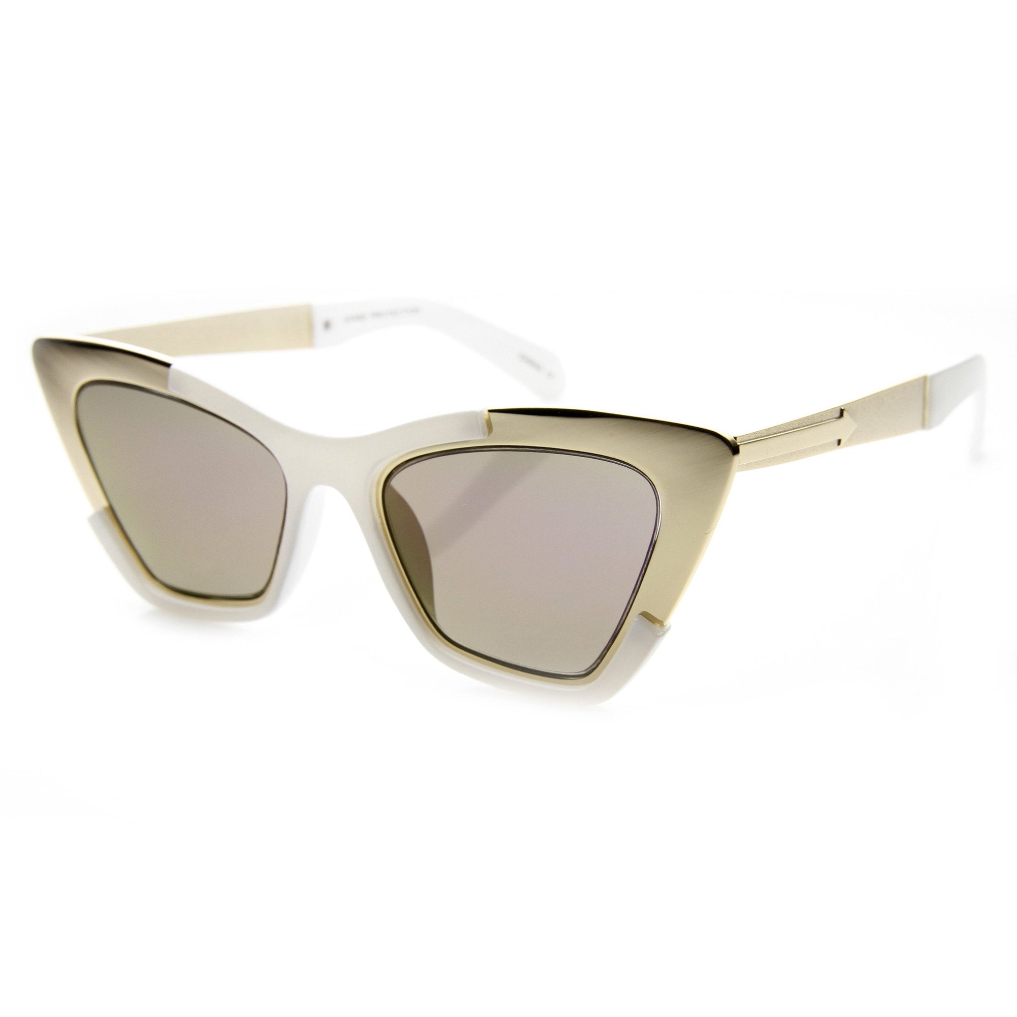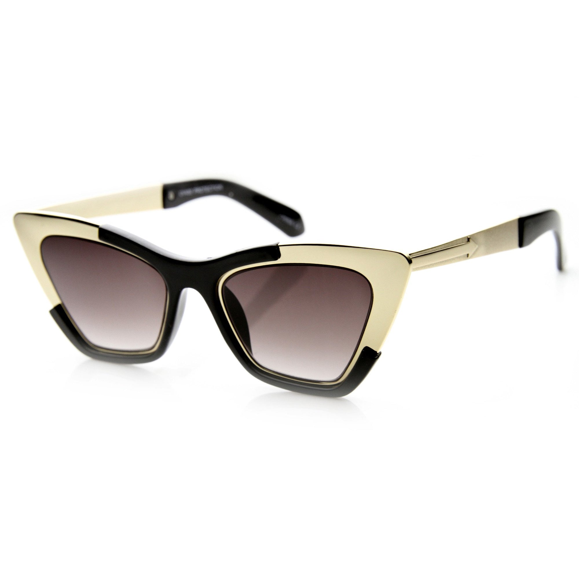 Una forma de ojo de gato espectacular y futurista define estas impresionantes gafas de sol inspiradas en diseñadores. Añade un toque espectacular de alta costura a tus conjuntos esta temporada con estas fabulosas gafas de sol estilo ojo de gato. Fabricado con un marco de metal y plástico, bisagras de metal y lentes de policarbonato con protección UV.