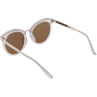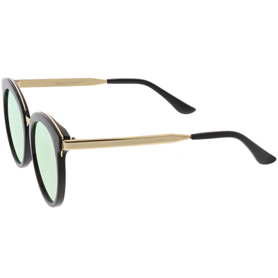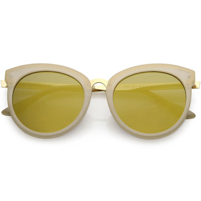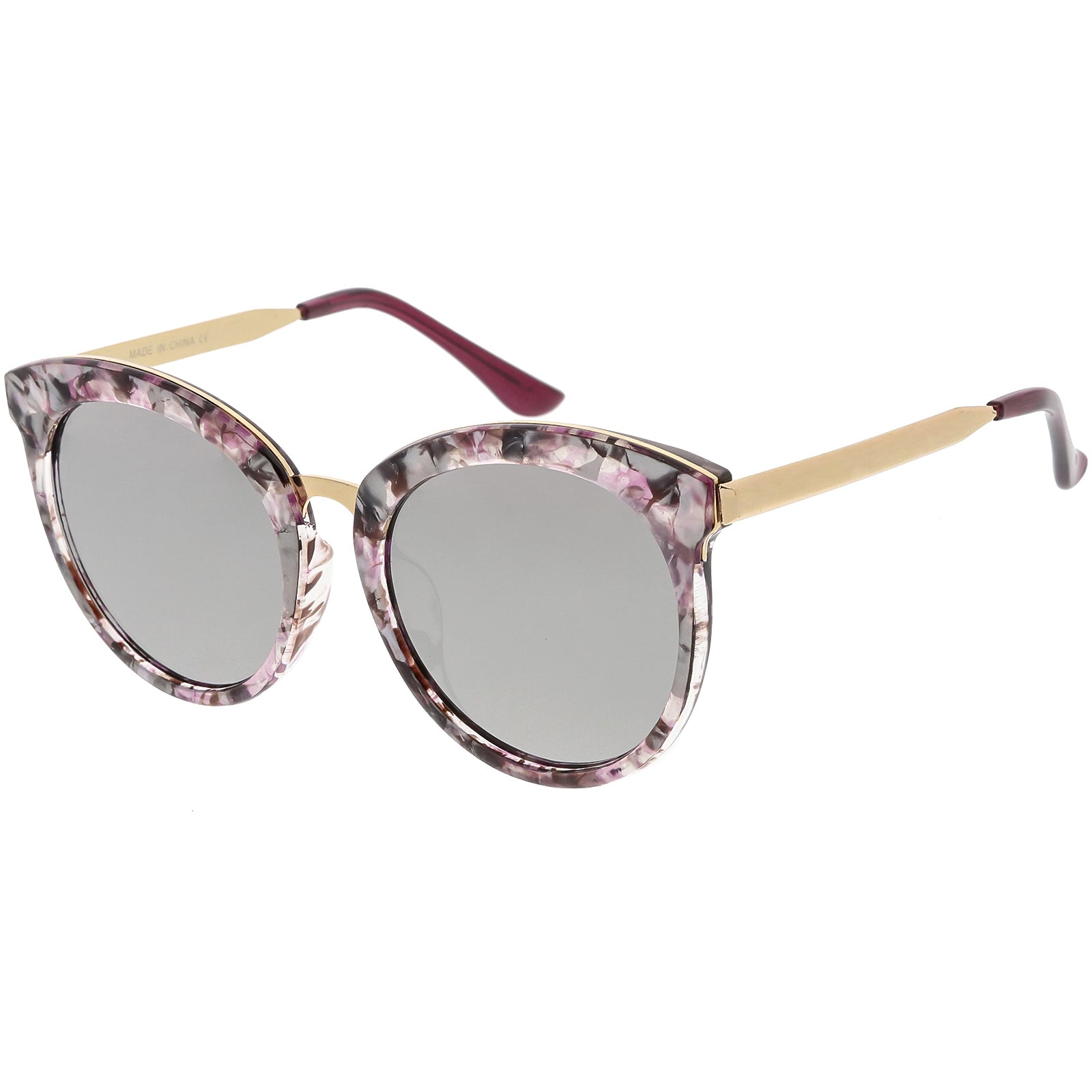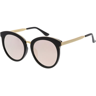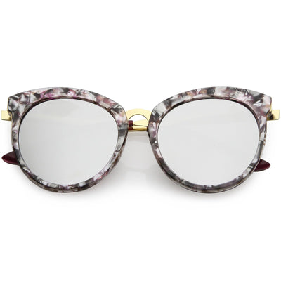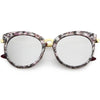 Enfréntate a la ciudad con estas llamativas gafas de sol tipo ojo de gato con montura de cuerno, diseñadas con una silueta de gran tamaño y adornos metálicos a lo largo del marco para darle ese atractivo lujoso. Acentuadas con impresionantes lentes redondos de espejo de colores, estas gafas de sol de gran tamaño se completan con patillas y puente nasal de metal que le dan una apariencia elegante. Fabricado con un marco de plástico y metal, bisagras de metal reforzado y lentes 100% con protección UV.