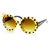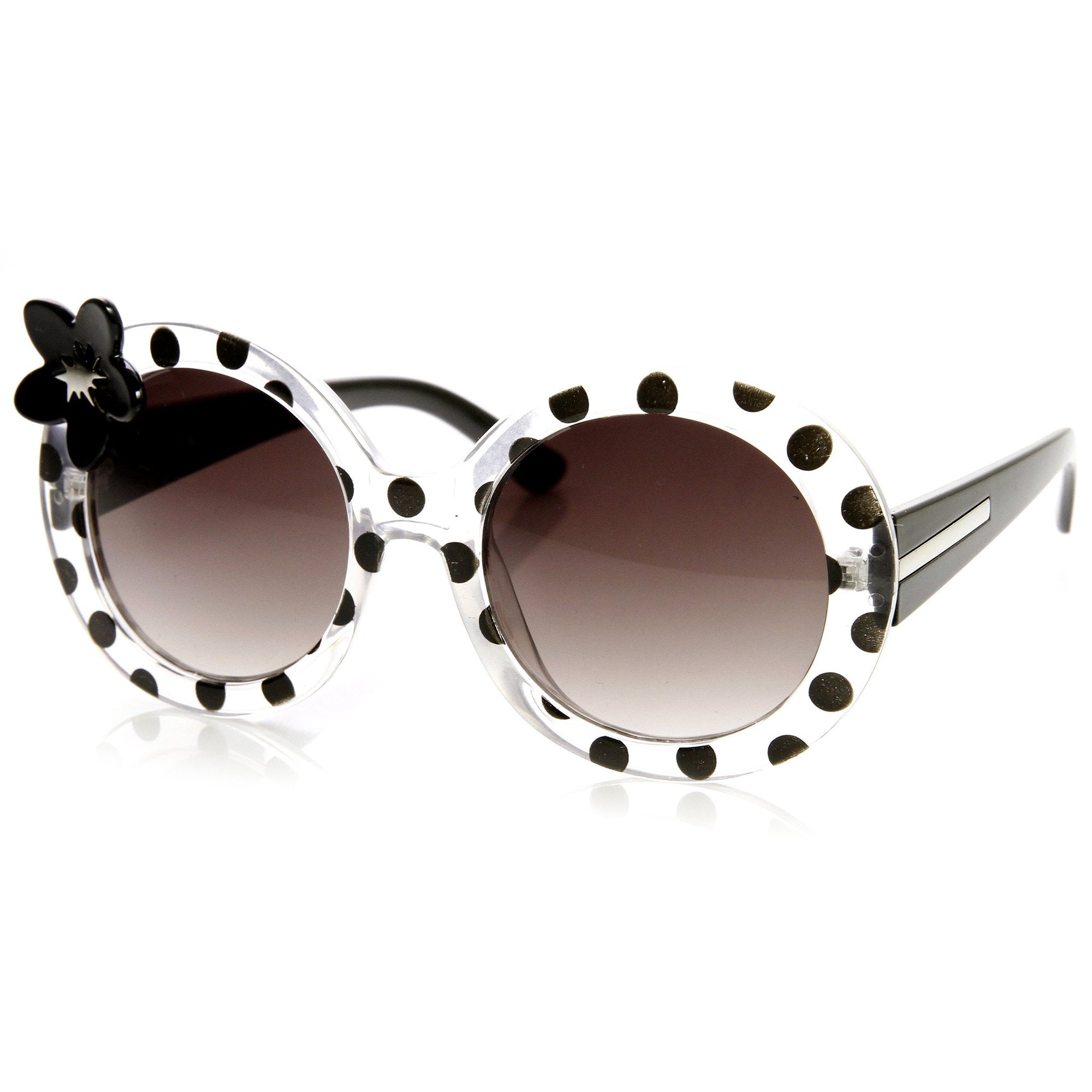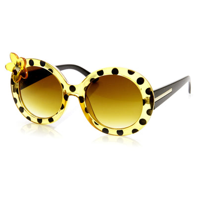 Súper lindas gafas de sol redondas con estampado de mariposas, flores y mariquitas de gran tamaño. Fabricadas con un marco de plástico, bisagras de metal y lentes de policarbonato transparente con protección UV400.