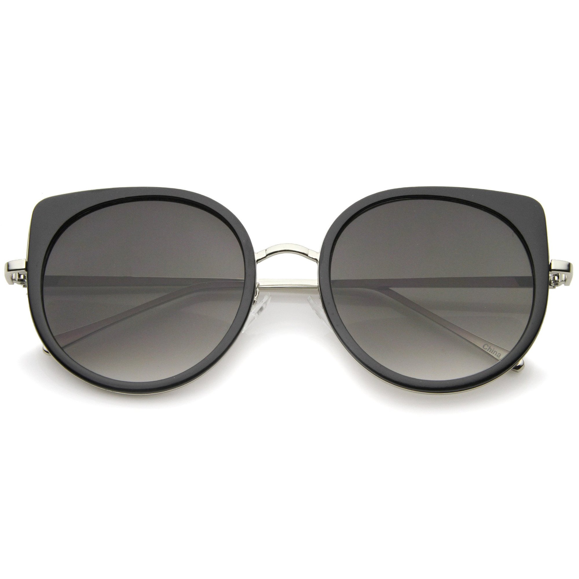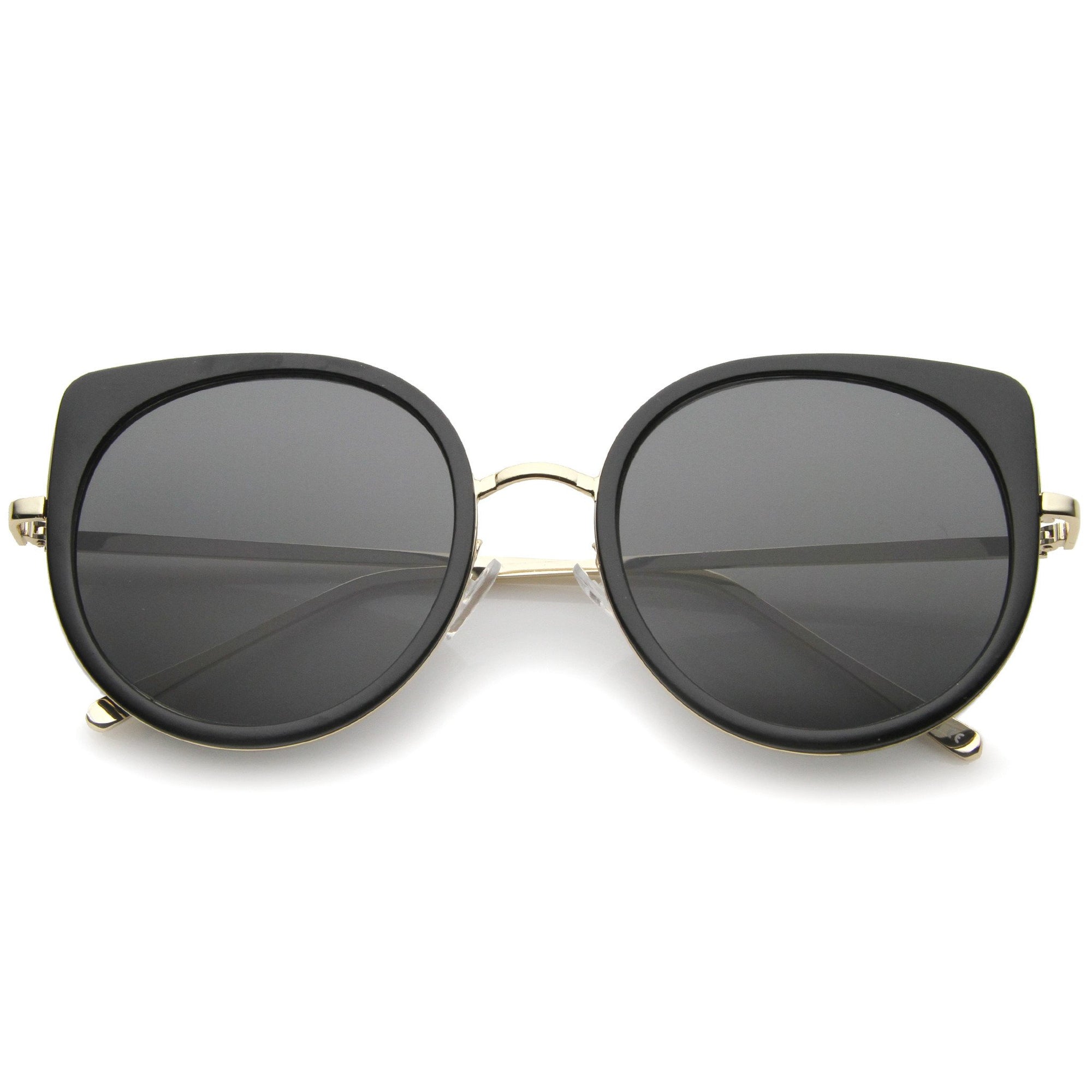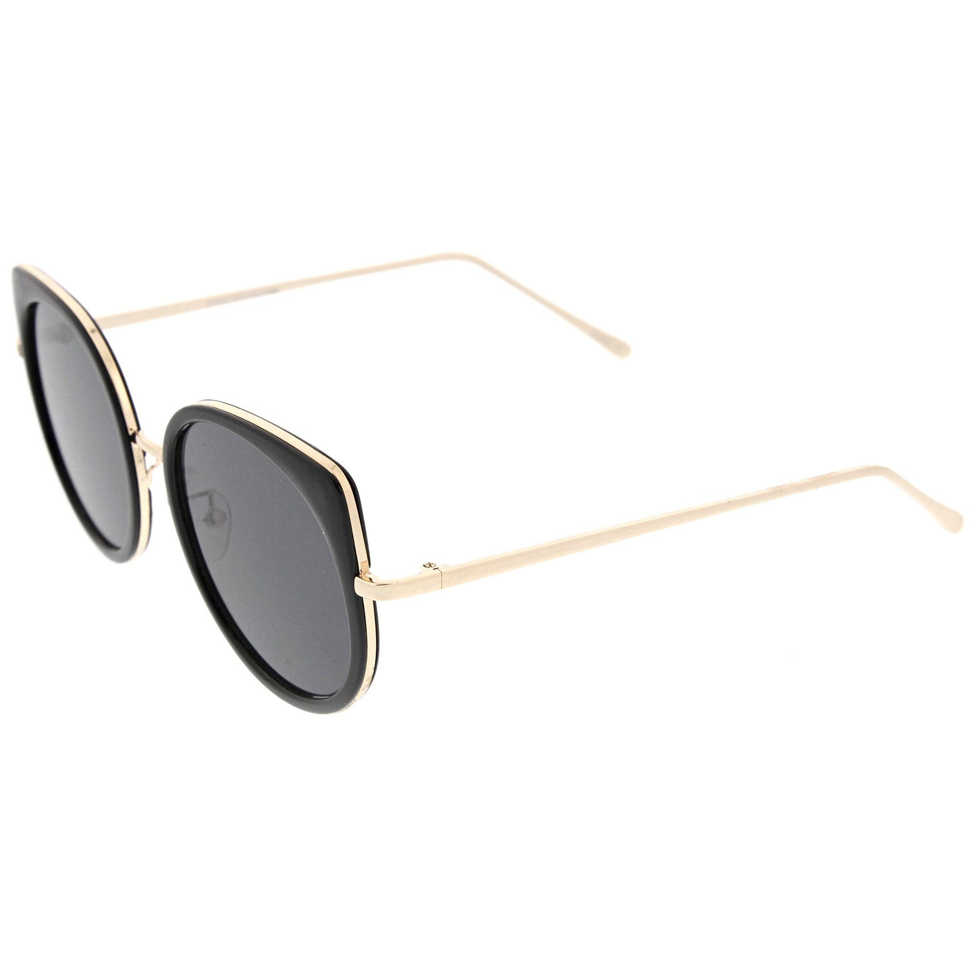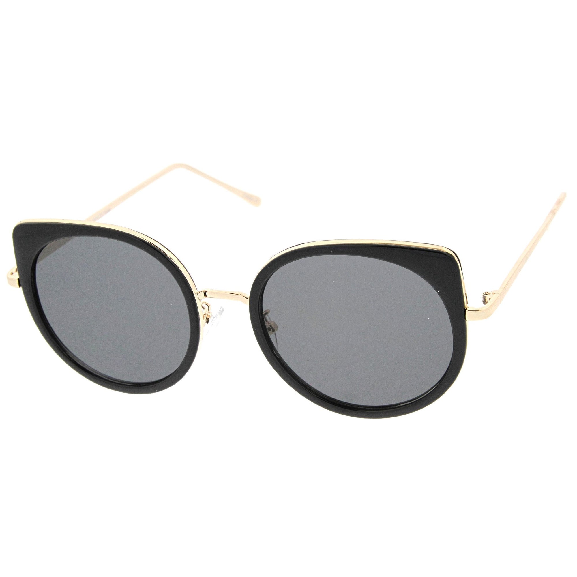 Gafas de sol con lentes planas tipo ojo de gato, redondas y delgadas para mujer A814