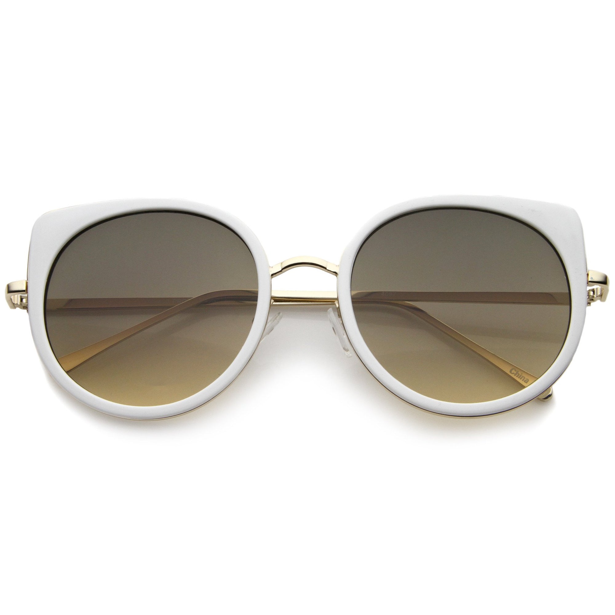 • Cree una apariencia sofisticada y elegante con estas gafas de sol tipo ojo de gato que cuentan con un delgado puente nasal y patillas de metal para darle un toque elegante y lujoso. Lentes planas redondas degradadas y una silueta redonda de ojo de gato completan este estilo coqueto y fácil de usar. Fabricados con una montura de plástico y metal, puentes nasales estilo inglés, bisagras de metal y lentes de policarbonato UV400.