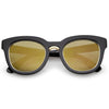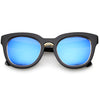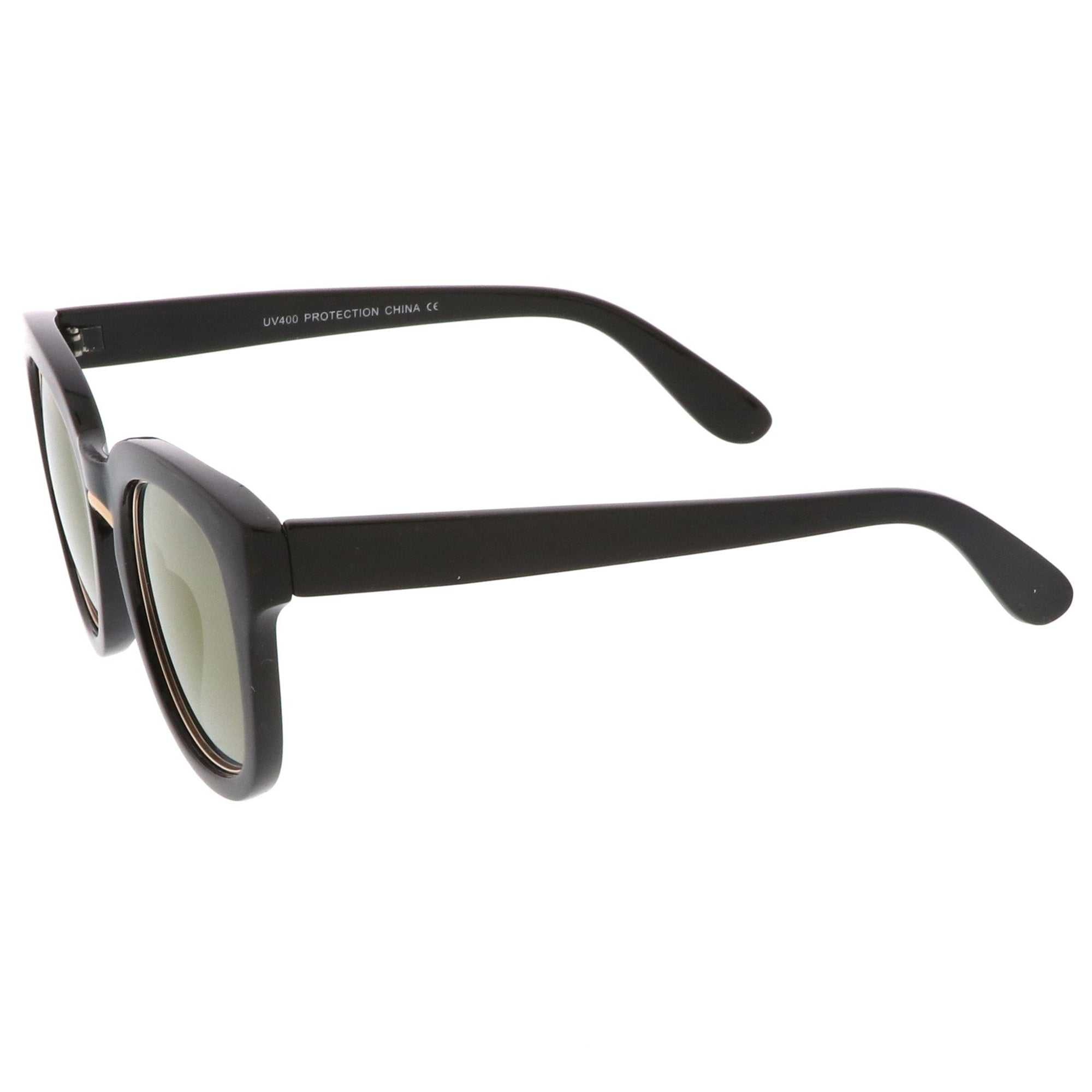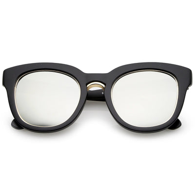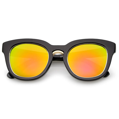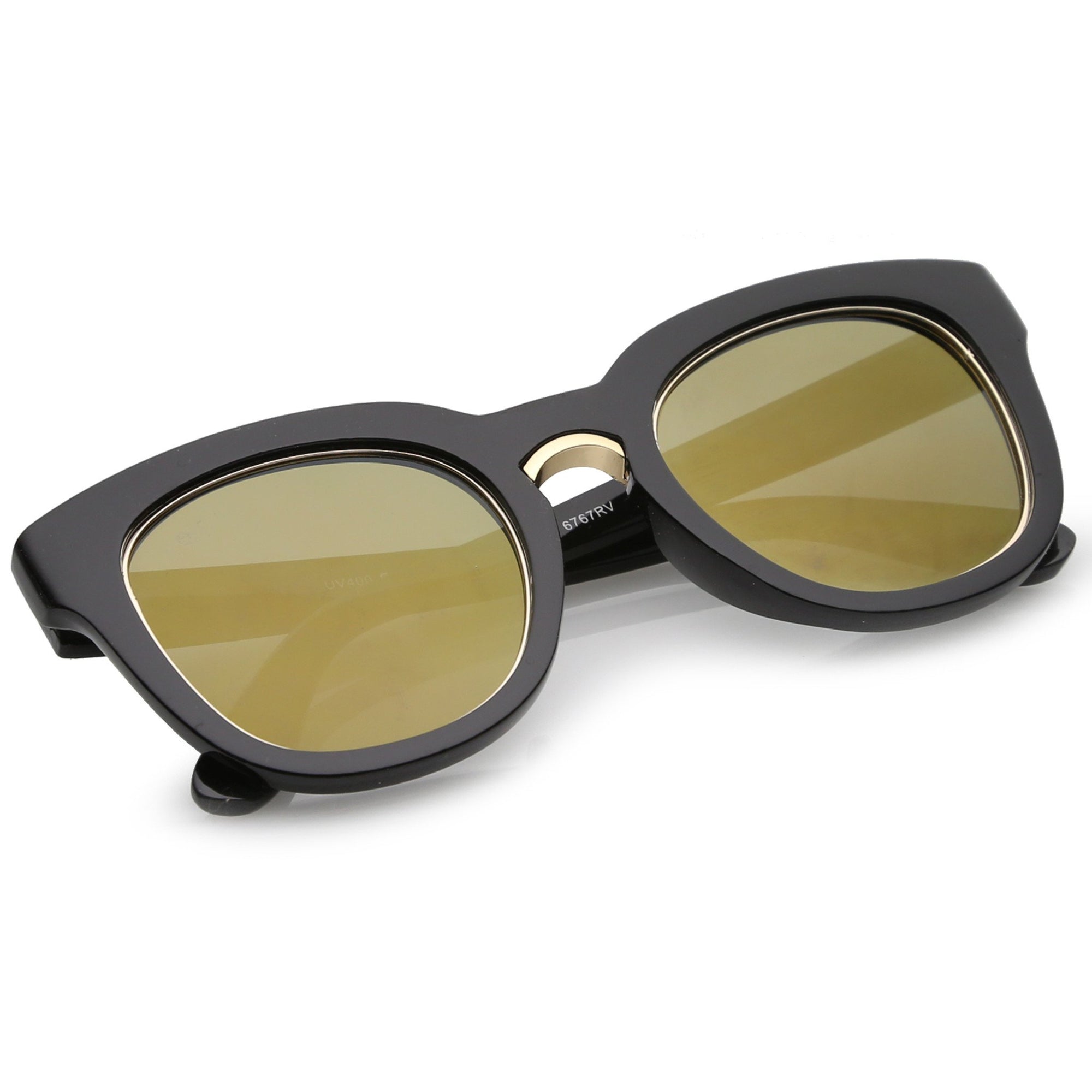 Audaces y lujosas, estas gruesas gafas de sol estilo ojo de gato cuentan con un elegante puente nasal de metal y patillas elegantemente anchas. Acentuadas con un borde metálico alrededor de las lentes planas de espejo de colores, estas impresionantes gafas de sol estilo ojo de gato son espectaculares. Fabricado con un marco de plástico, bisagras de metal y lentes de policarbonato con protección UV400.