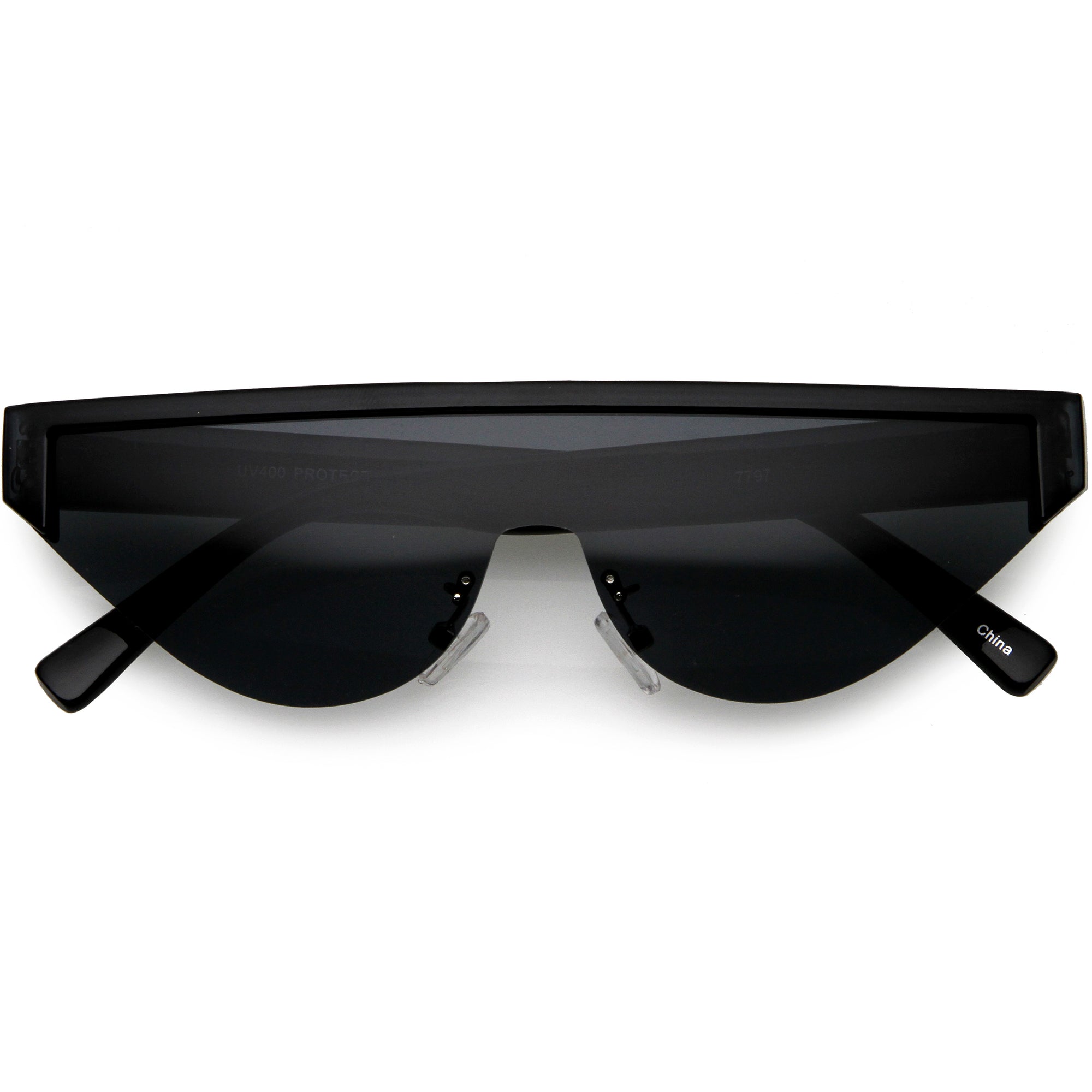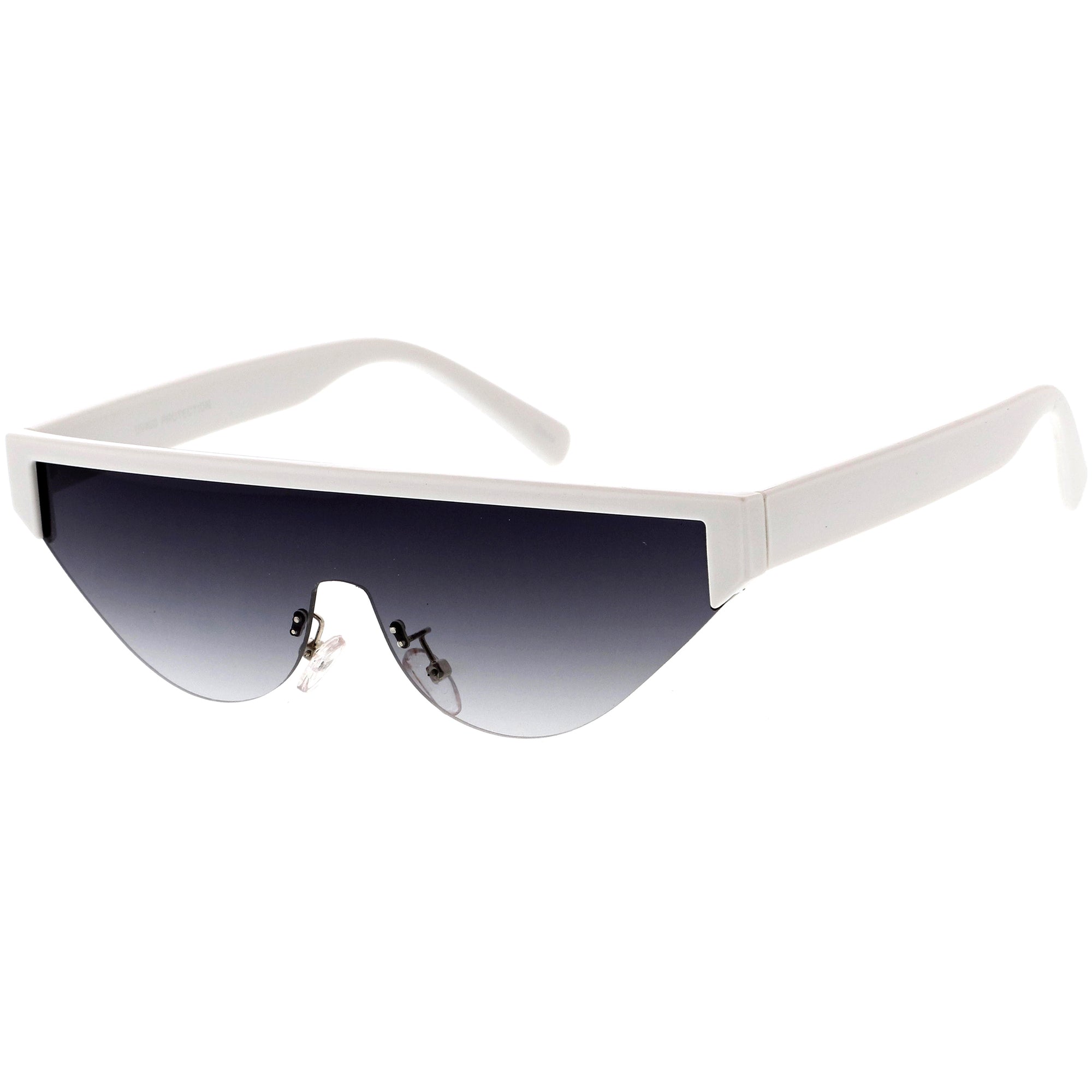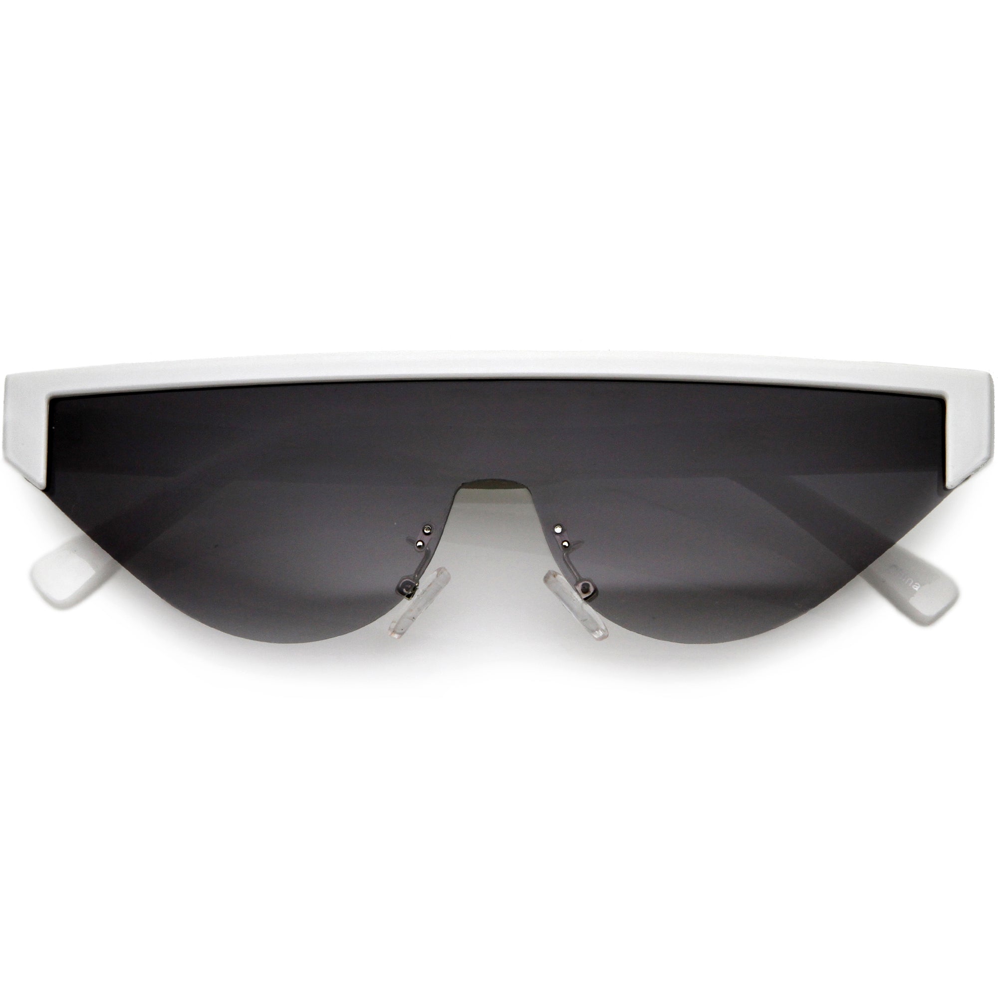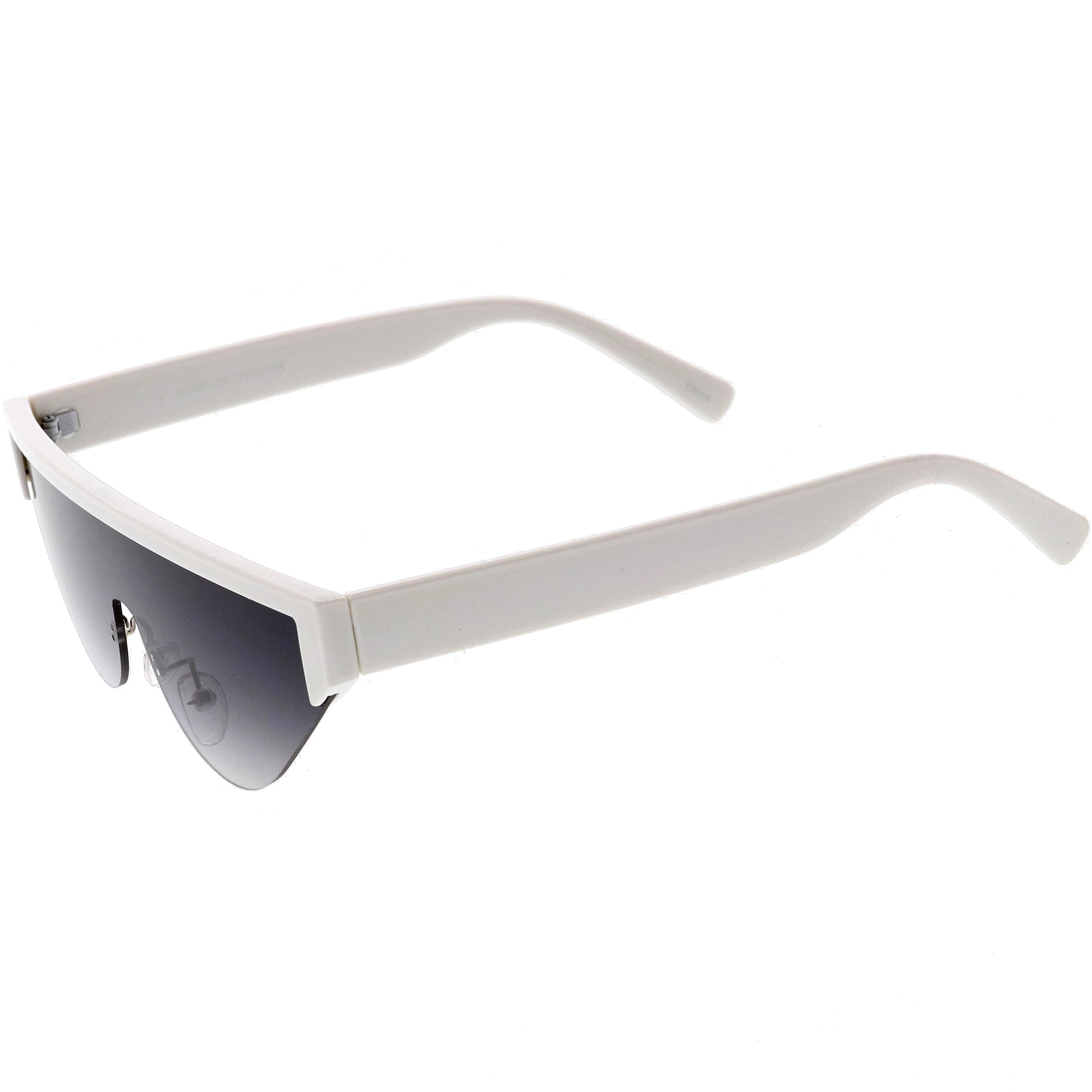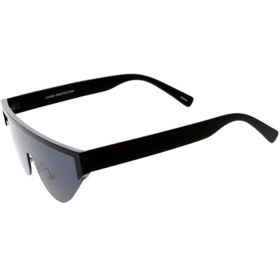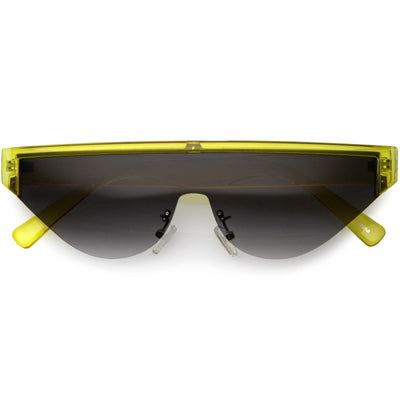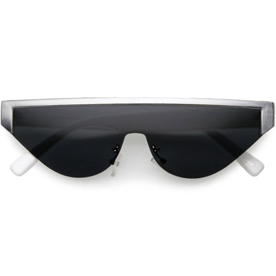 Bold Color Trim Flat Top Futuristic Semi Rimless Cat Eye Shield Sunglasses C999