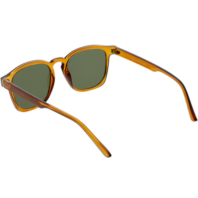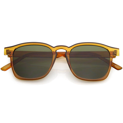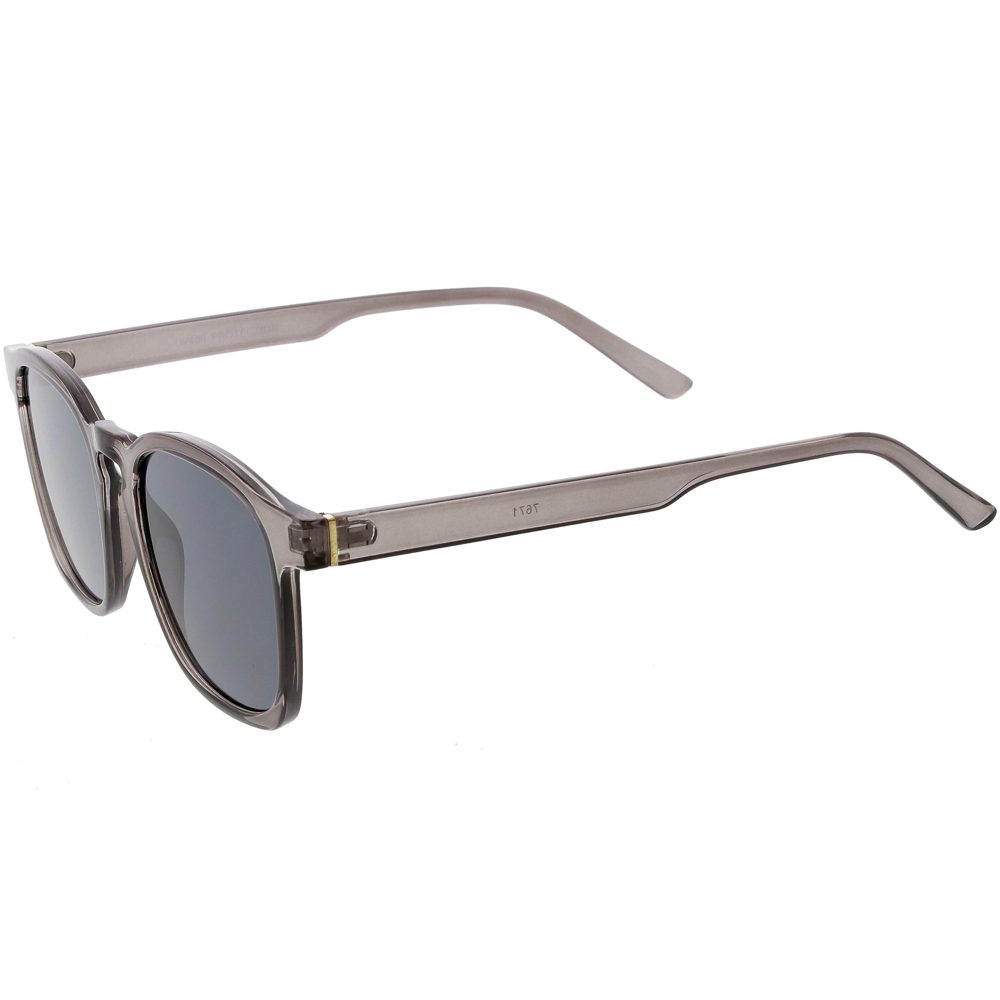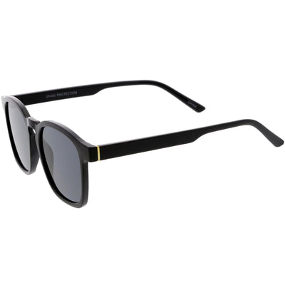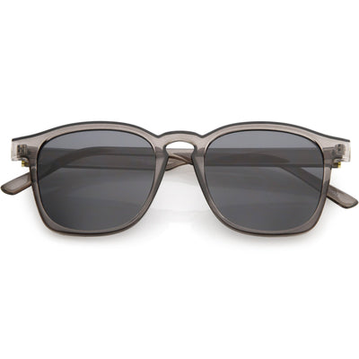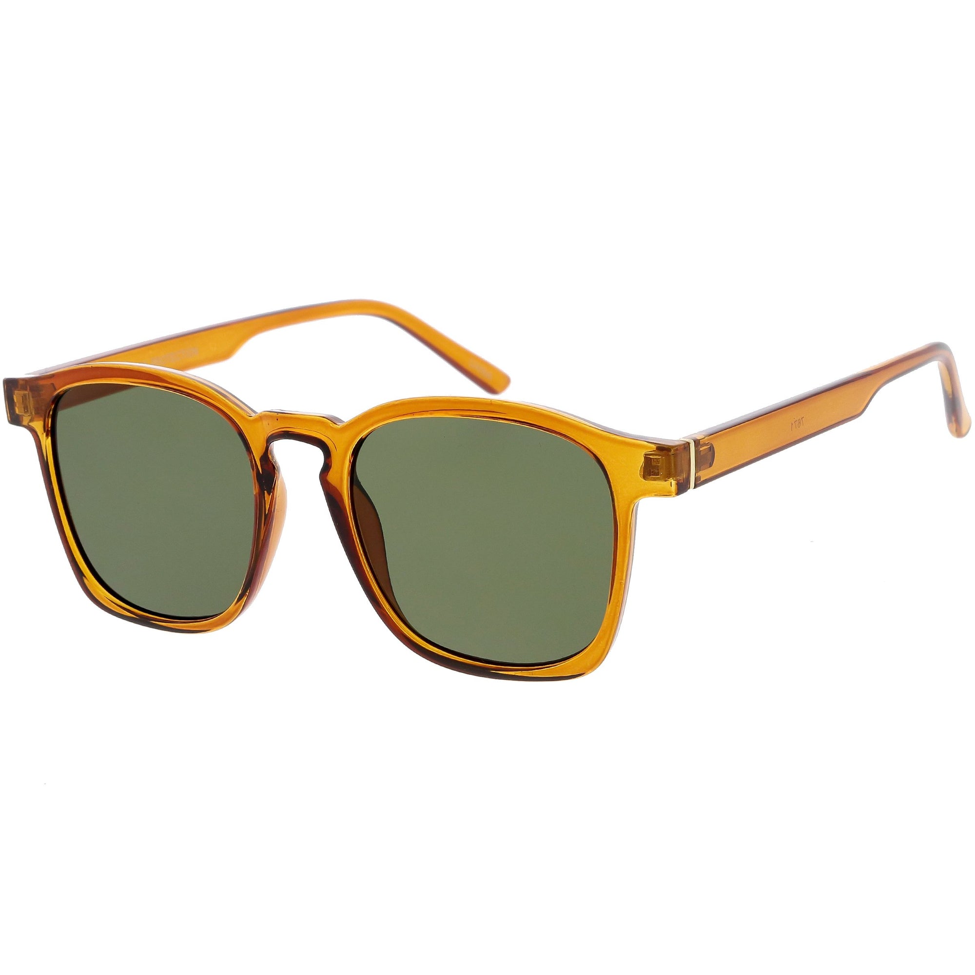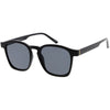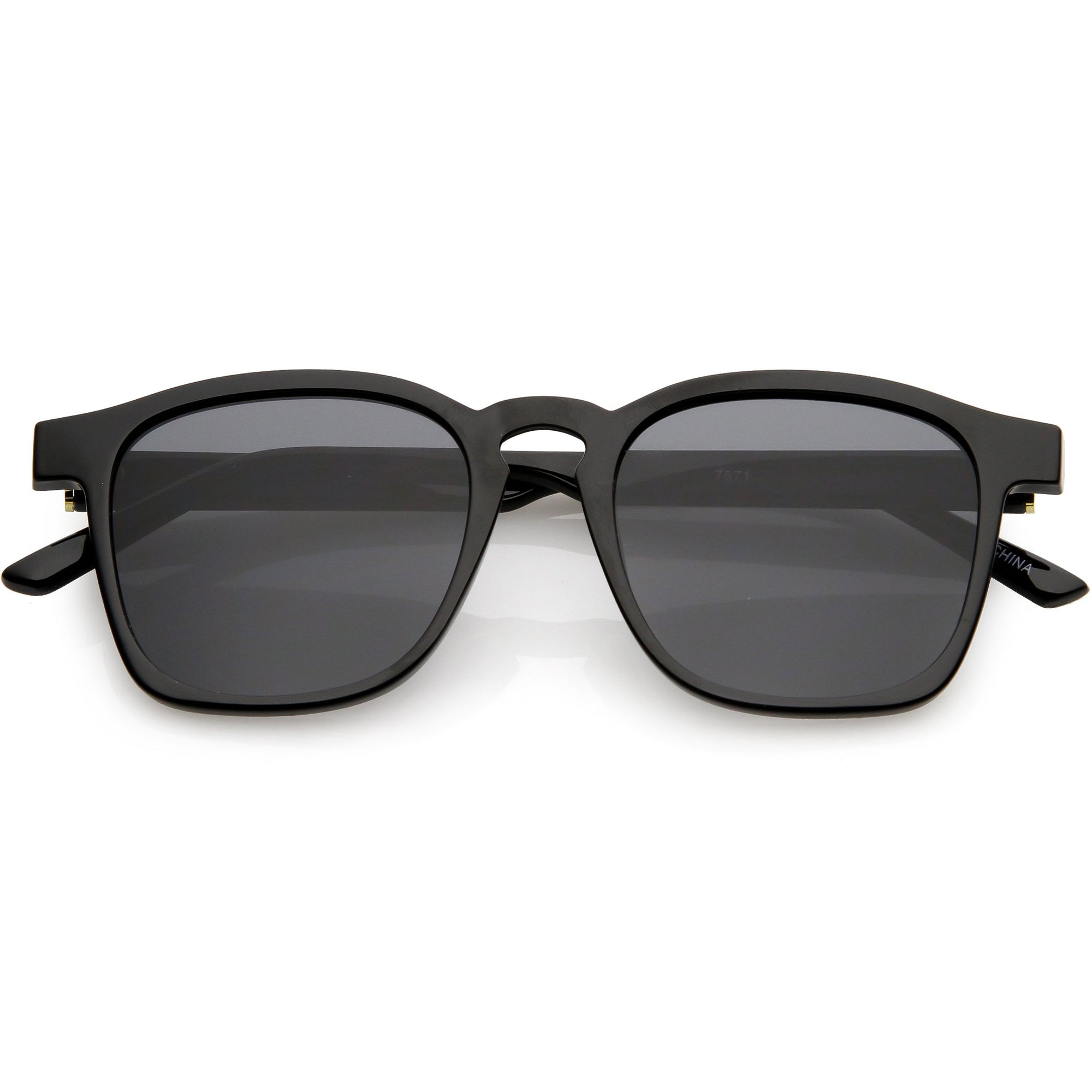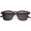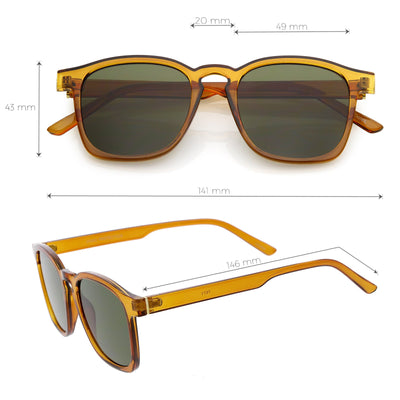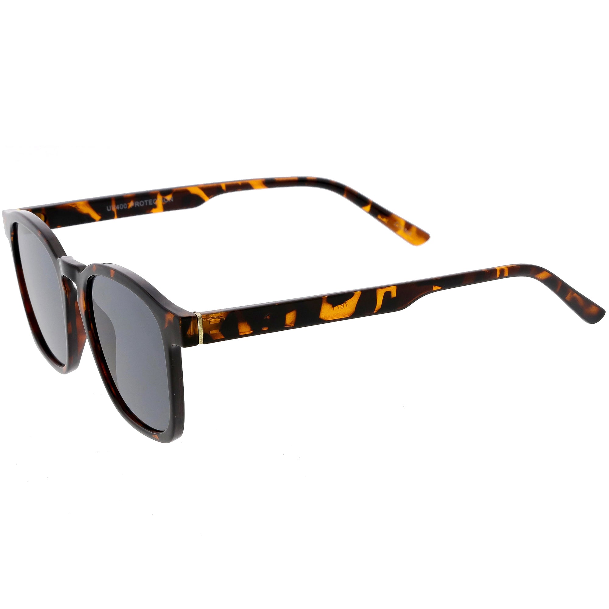 Versatile and classic, these square sunglasses are exquisitely crafted with a horn rimmed design and slim arms that taper at the ends. Complimented with a keyhole nose bridge that classic touch and neutral colored flat lenses, these square sunglasses are a great essential accessory that can be worn all year round. Made with a plastic based frame, reinforced metal hinges, and 100% UV protected lenses.