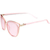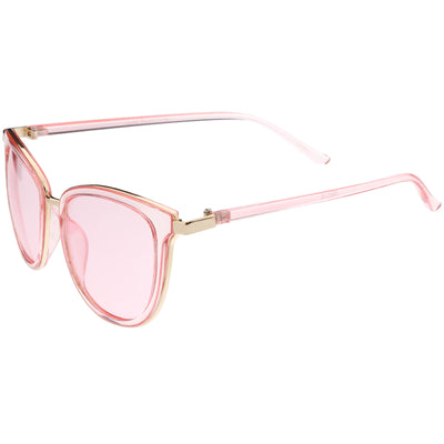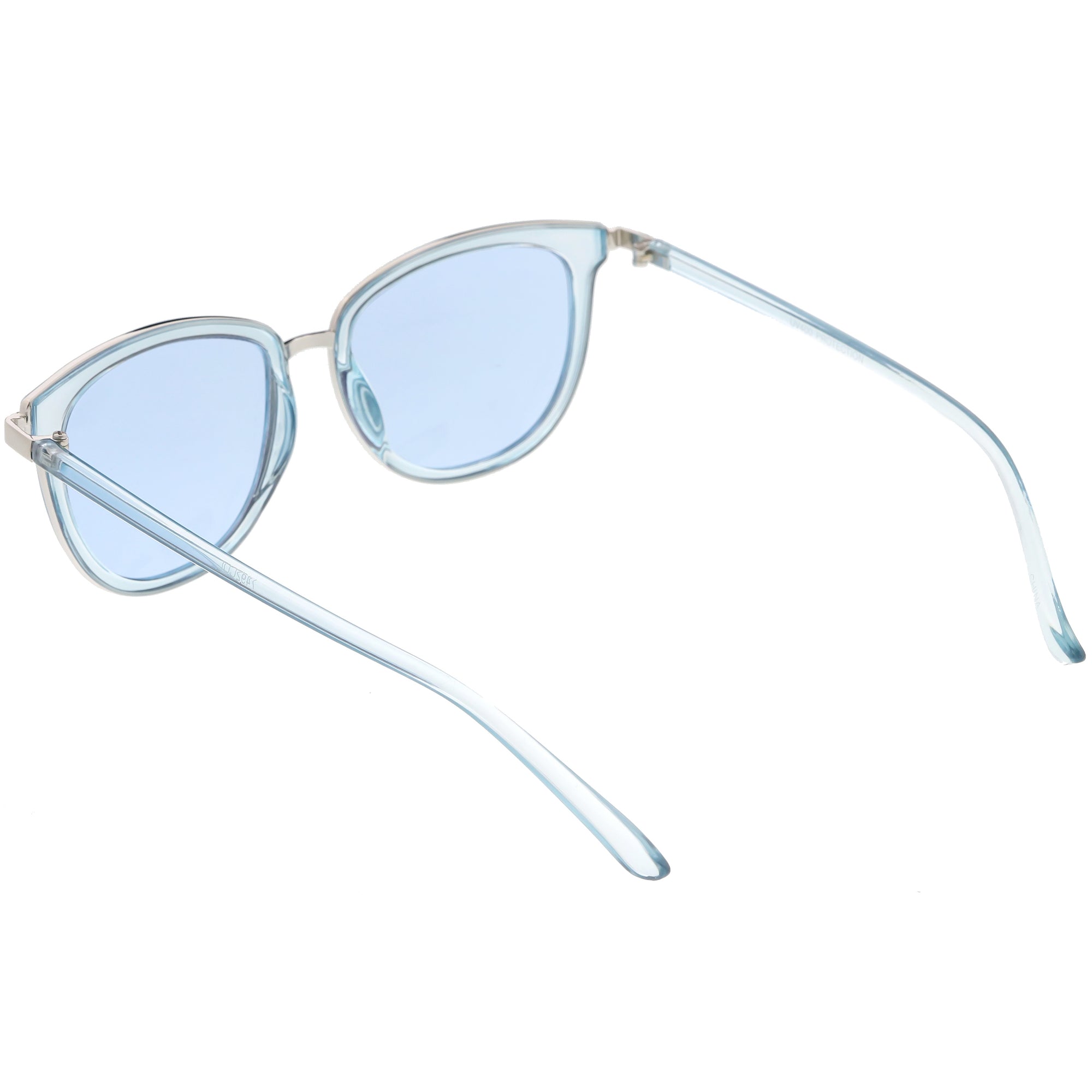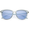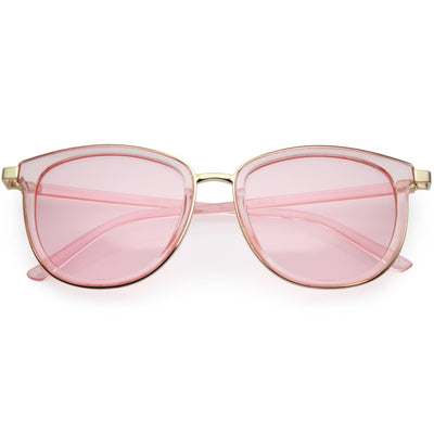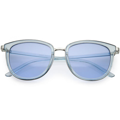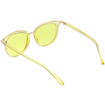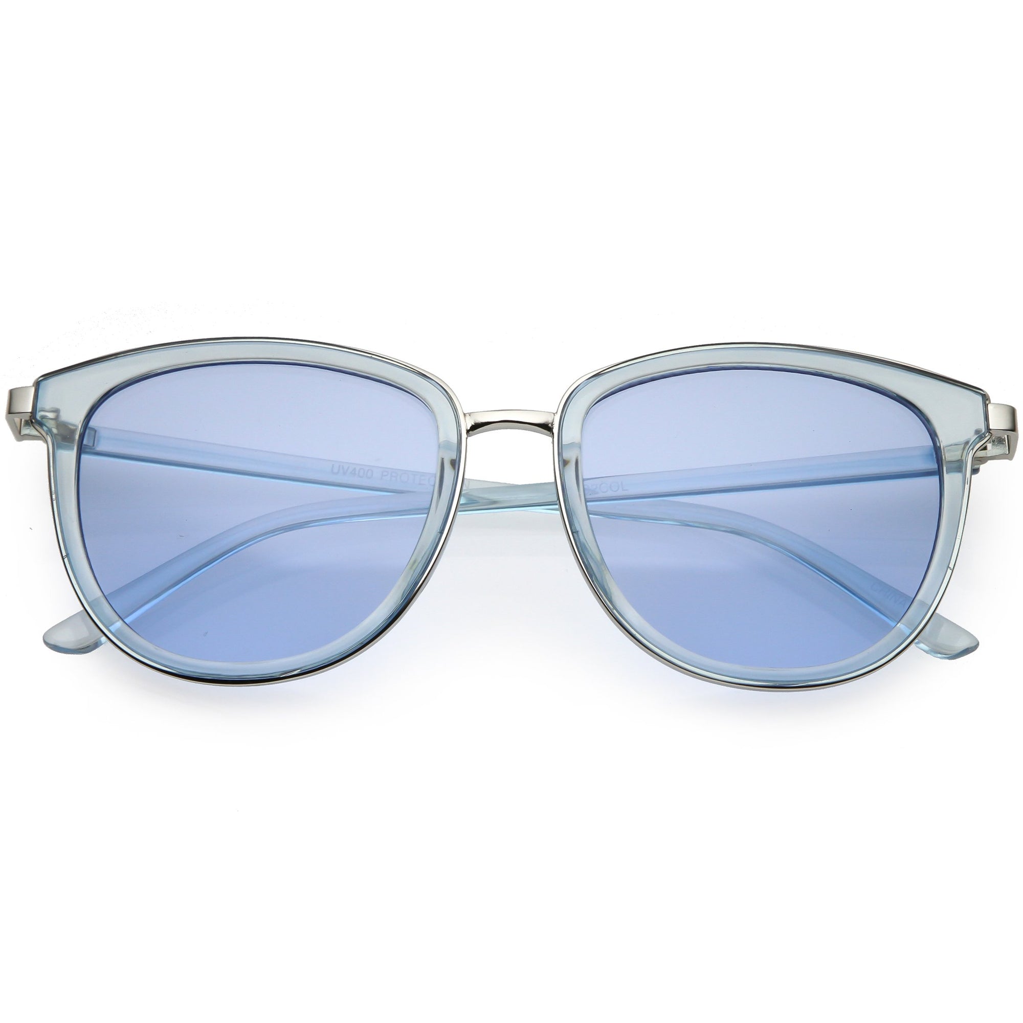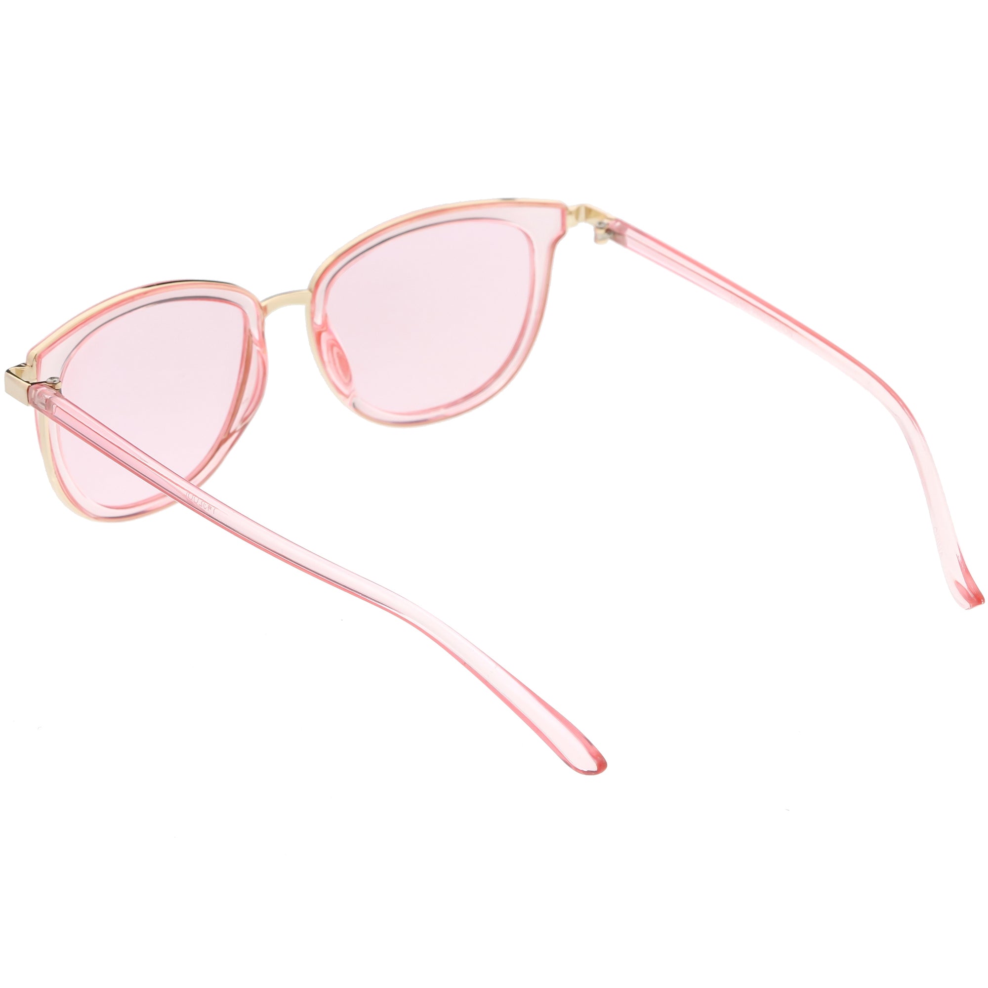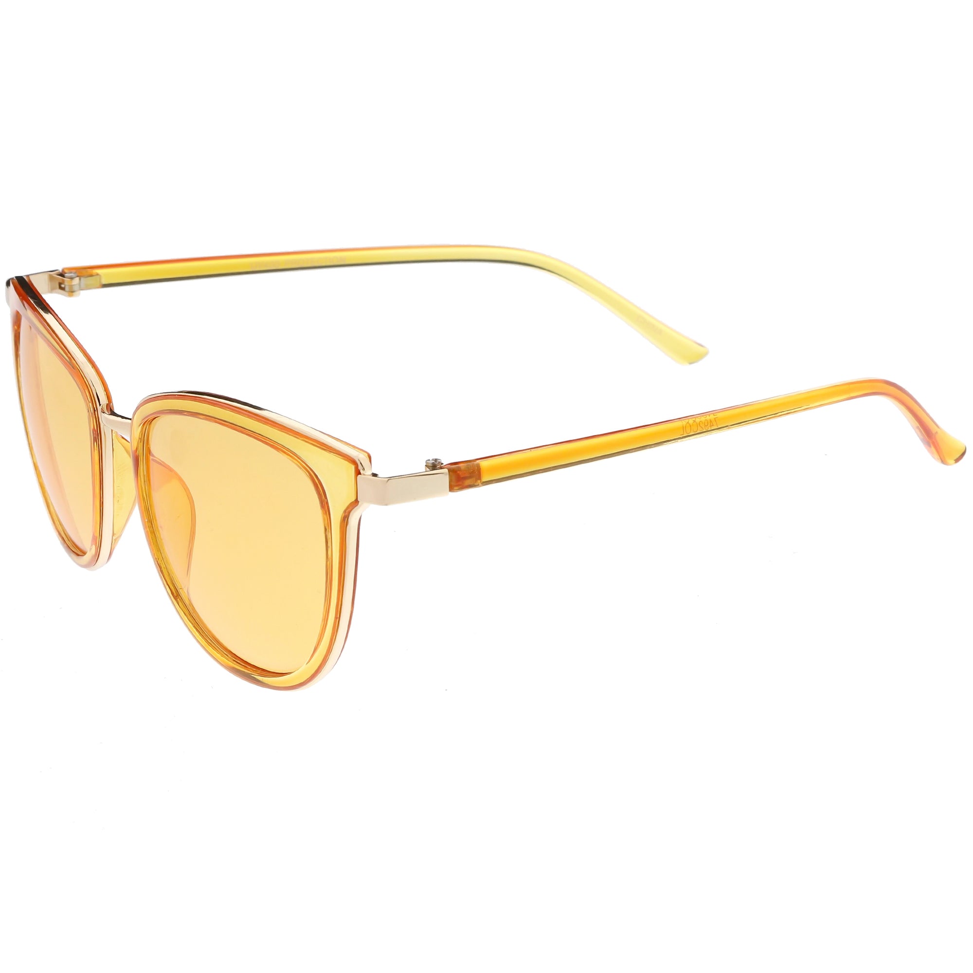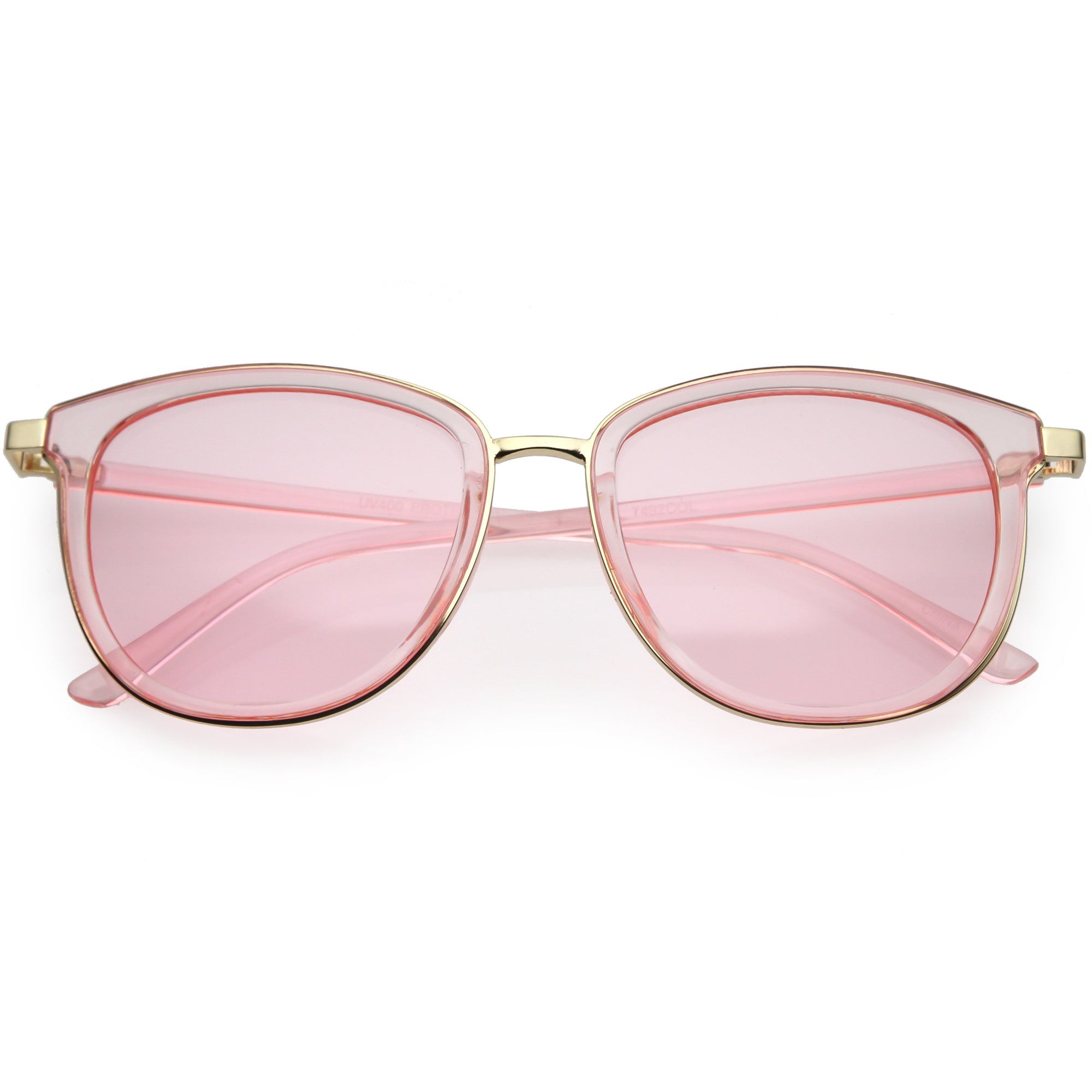 Embrace the warm weather seasons with these colorful horn rimmed sunglasses exquisitely designed with translucent frames with metal trim accents for added luxe. Color tinted square lenses add to this style's fun and playful appeal. Made with a plastic and metal based frame, metal hinges, and 100% UV protected lenses.