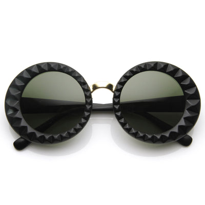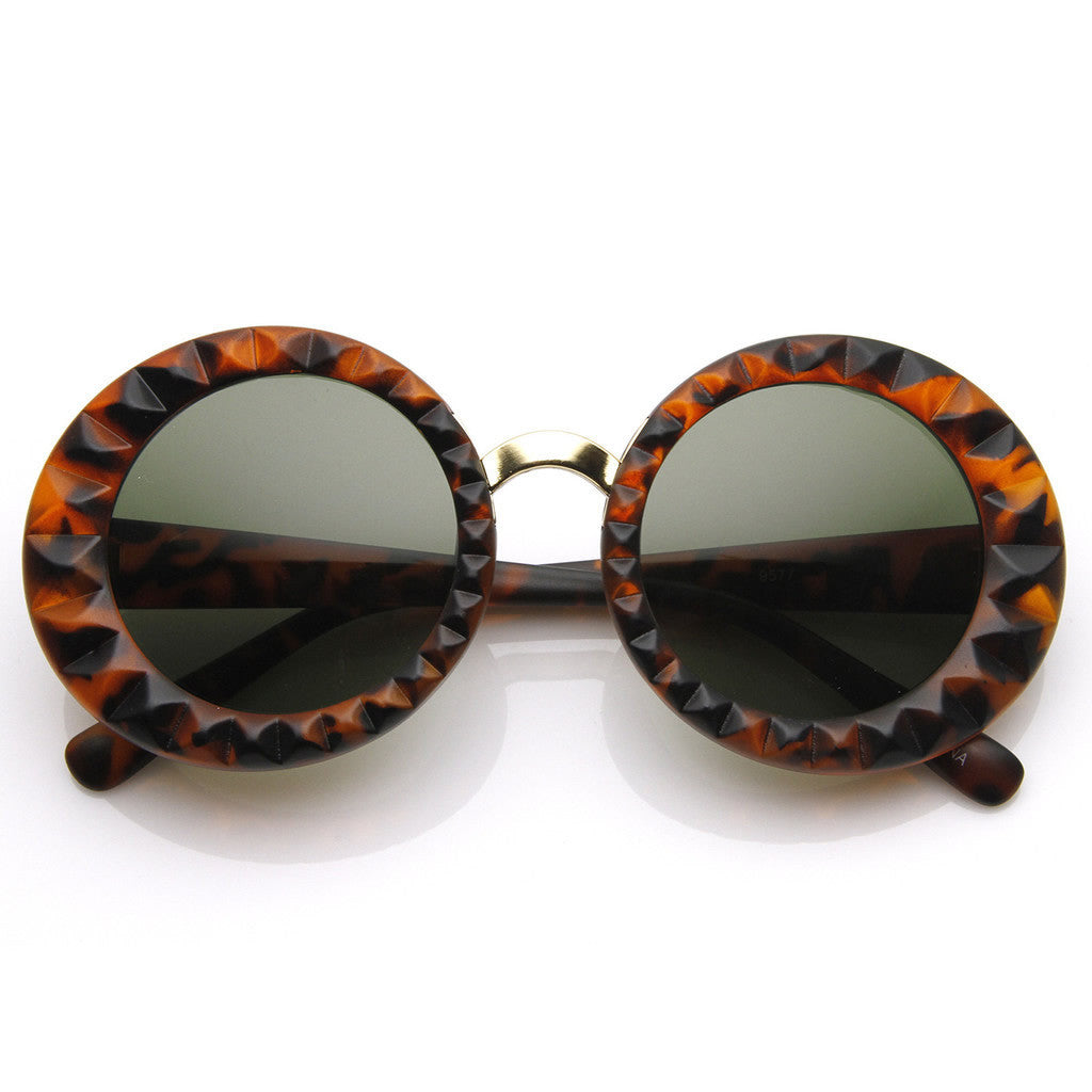 Large, round, bold and chic these fashionable frames are reminiscent of circa 1950's era and perfect for any season. Made with an acetate based frame, metal hinges, and smoke polycarbonate UV protected lenses.