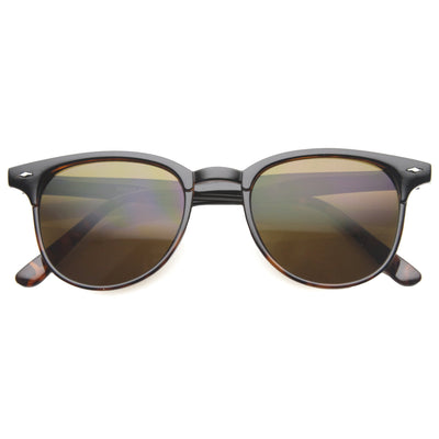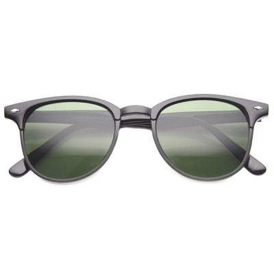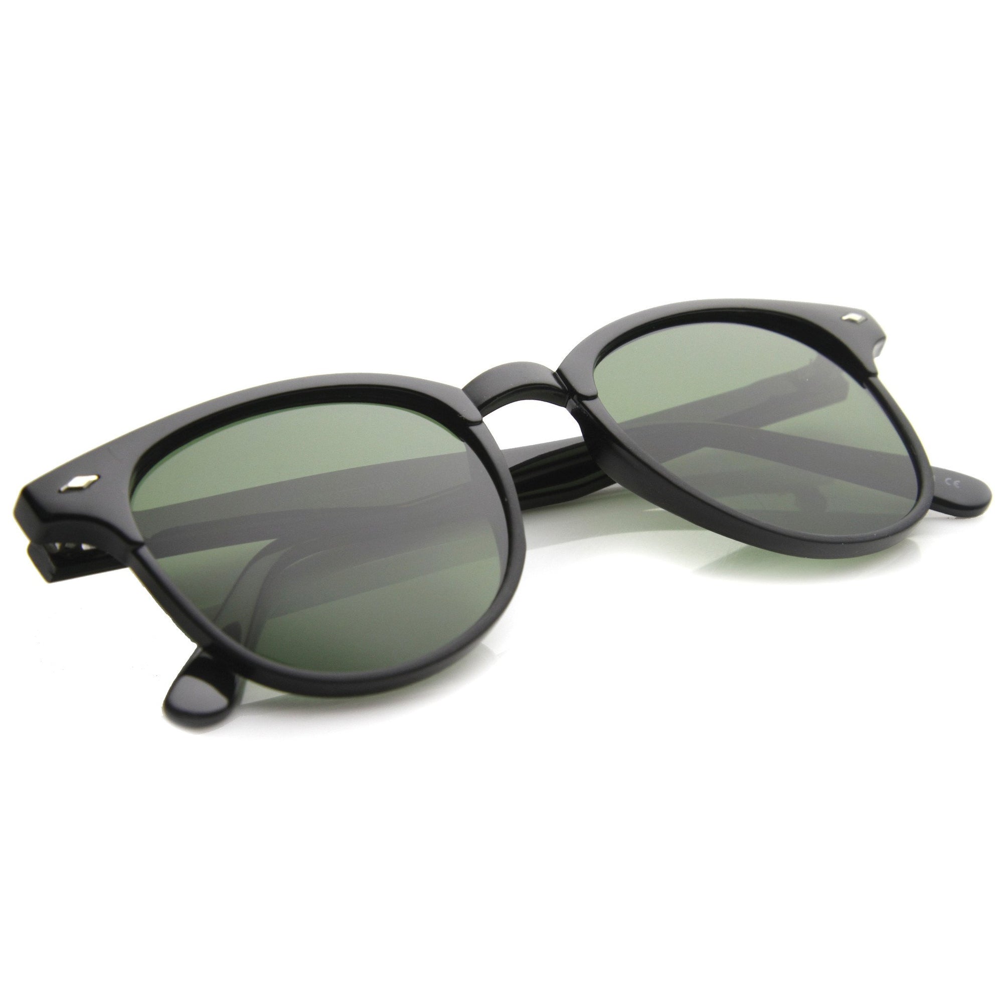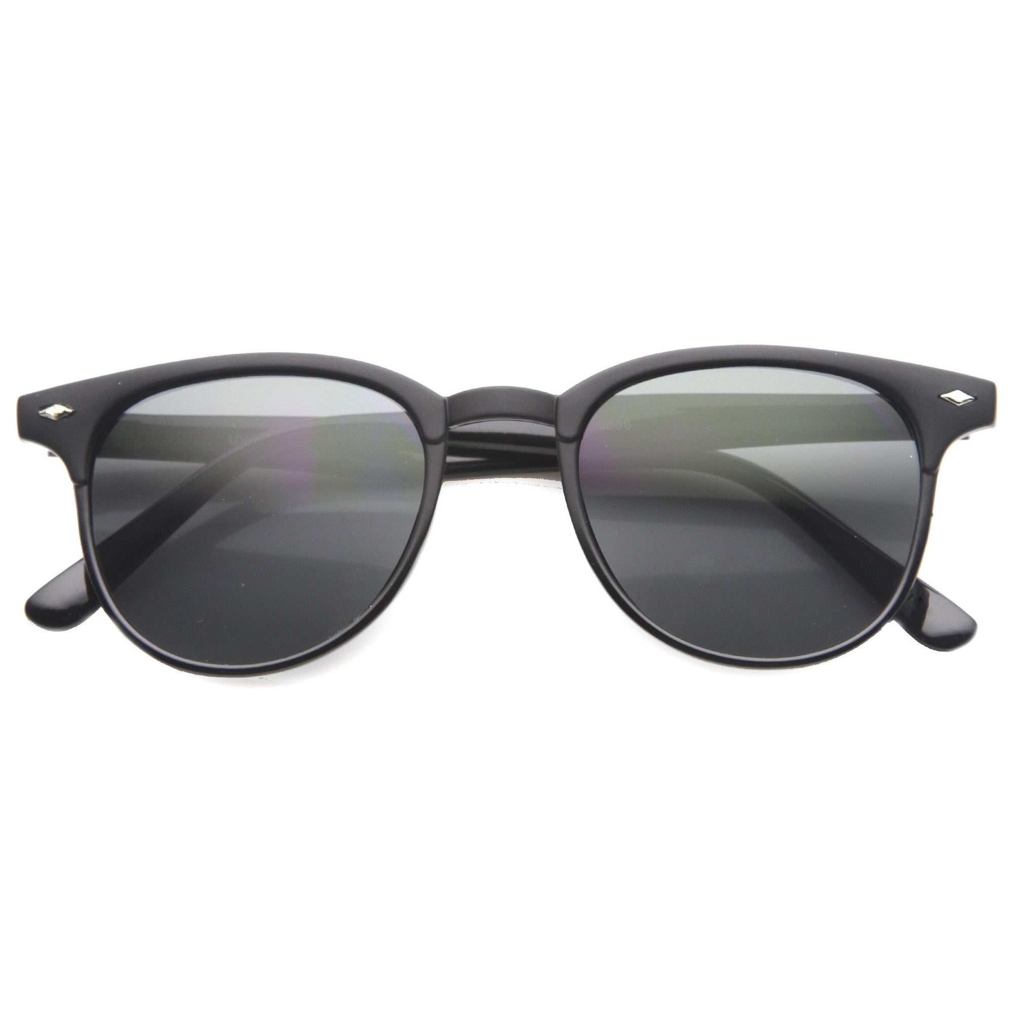 The horned rim frame is one of the most distinct and recognizable frames that has earned it status as a pop culture icon. There are unlimited modified versions of the horned rim frame, but this particular pair is a classic original shape that has remained unchanged for decades. Made with a plastic frame, metal hinges, and dark polycarbonate UV protected lenses.