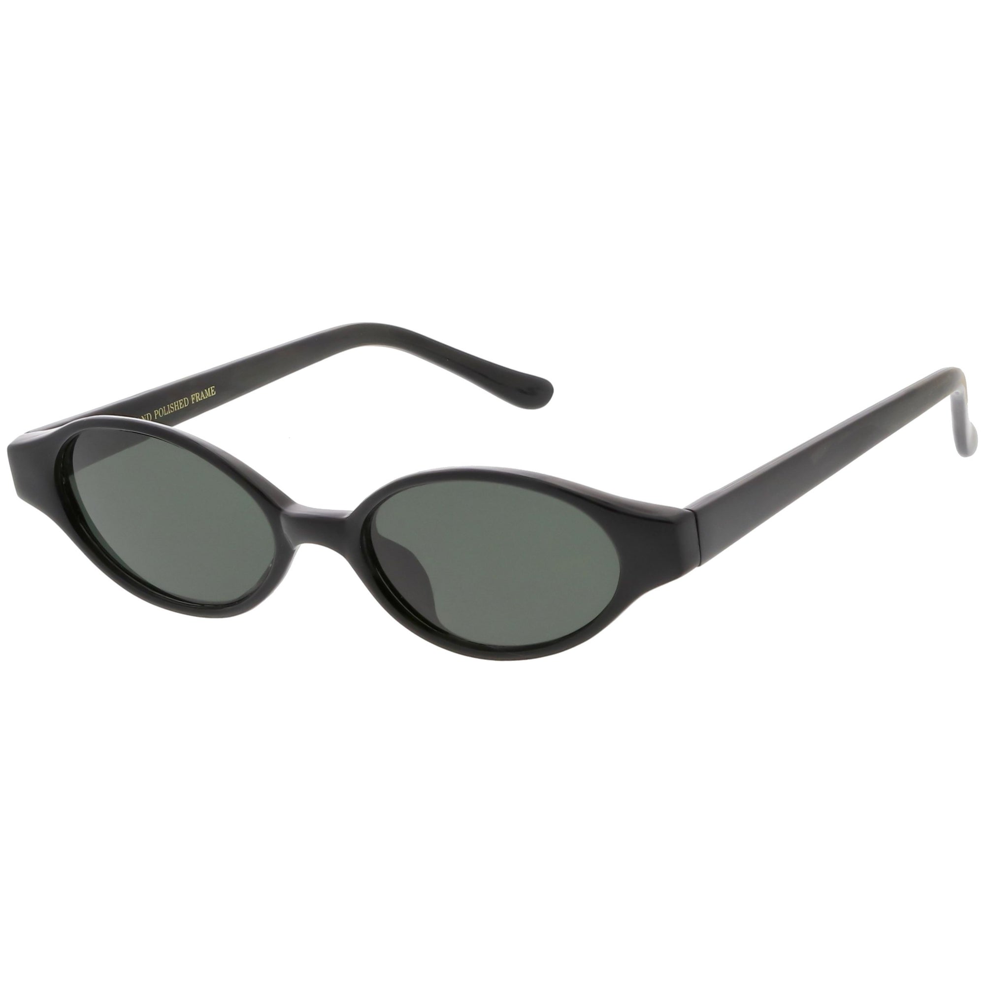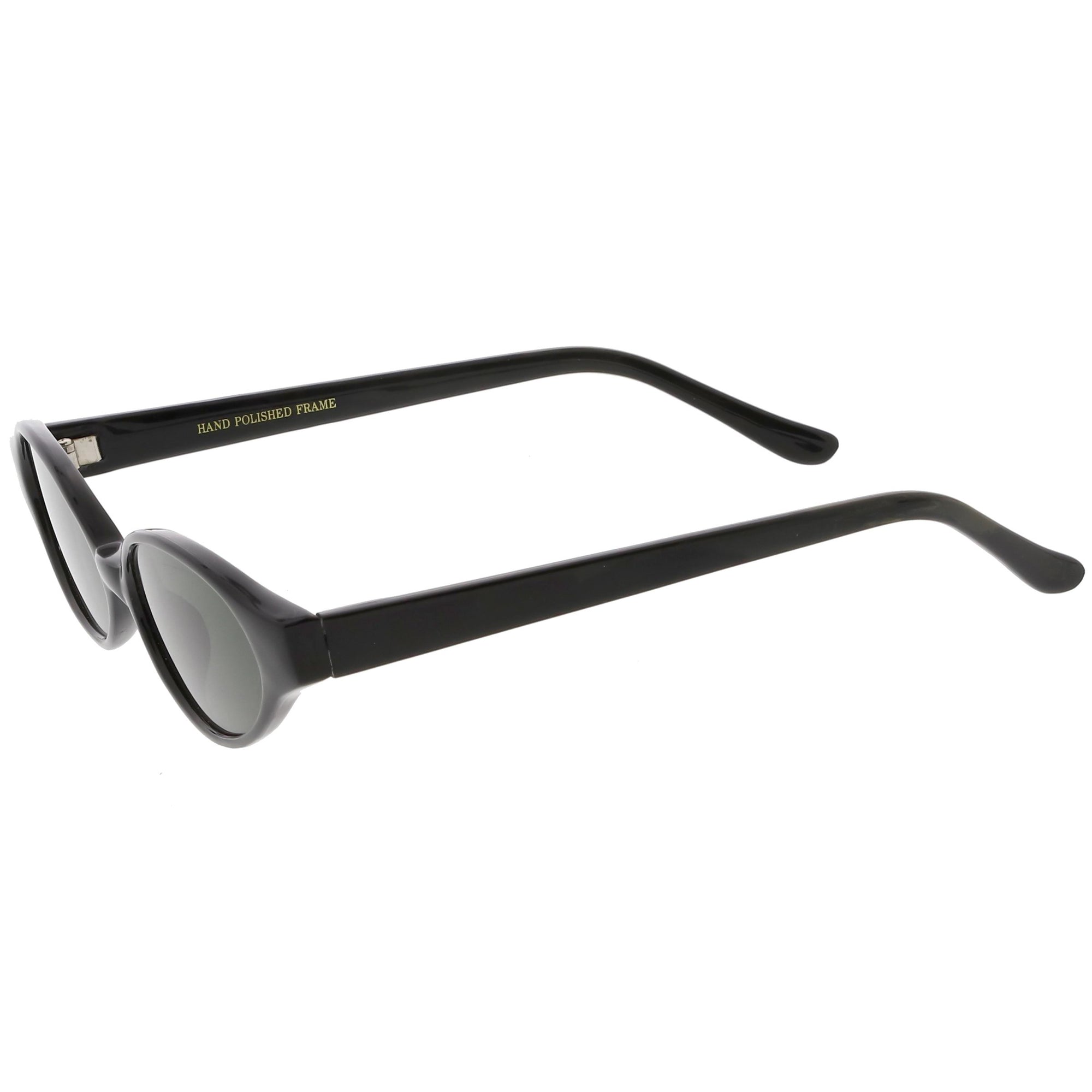 Throw it back to the 90's with these true vintage small oval sunglasses. Designed with a smaller frame with squared temples and tapered arms, these oval sunglasses are complete with neutral colored round lenses. Great for everyday wear, these vintage oval sunglasses are a must-have accessory this season. Made with a plastic based frame, reinforced metal hinges, and 100% UV protected lenses.