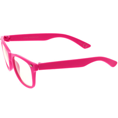 • With digital devices becoming more of a necessity in our daily routines, blue light glasses are specially designed to protect your kid's eyes from harmful blue light. These horn rimmed kids blue light glasses are perfect to use while doing homework, playing video games, and watching TV. Made with a plastic based frame, metal hinges, and blue light UV400 protected clear lenses.