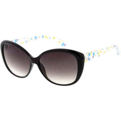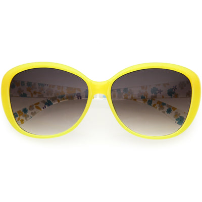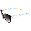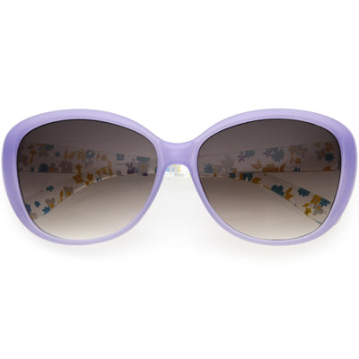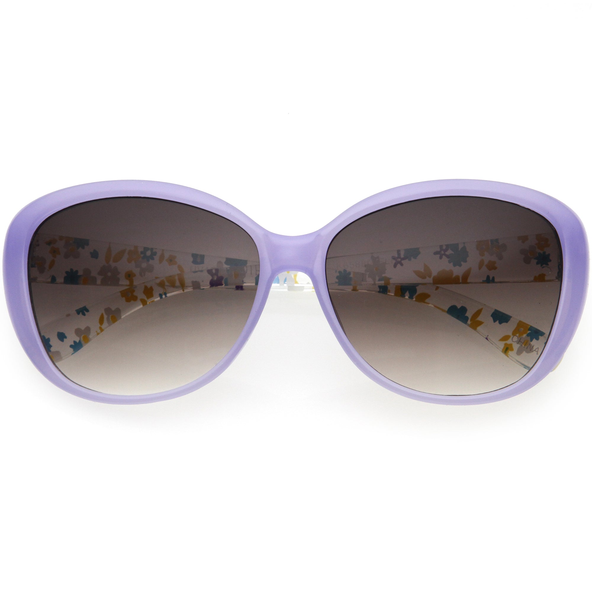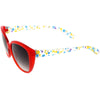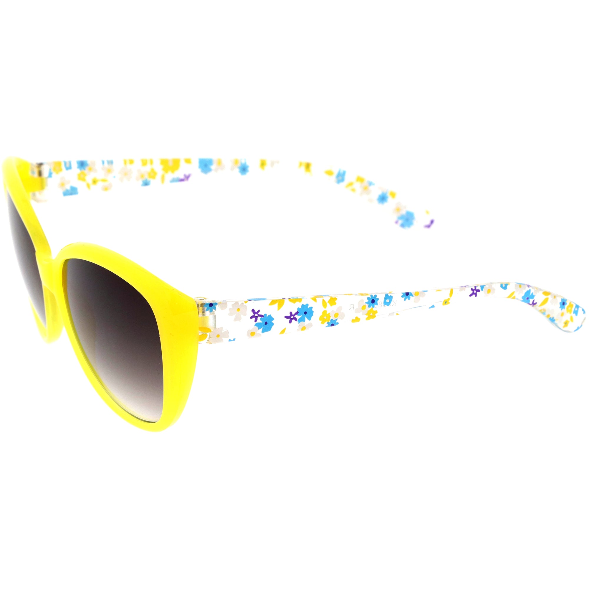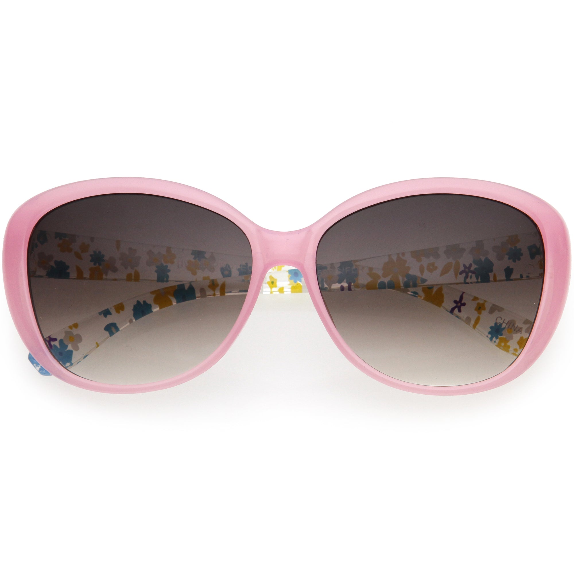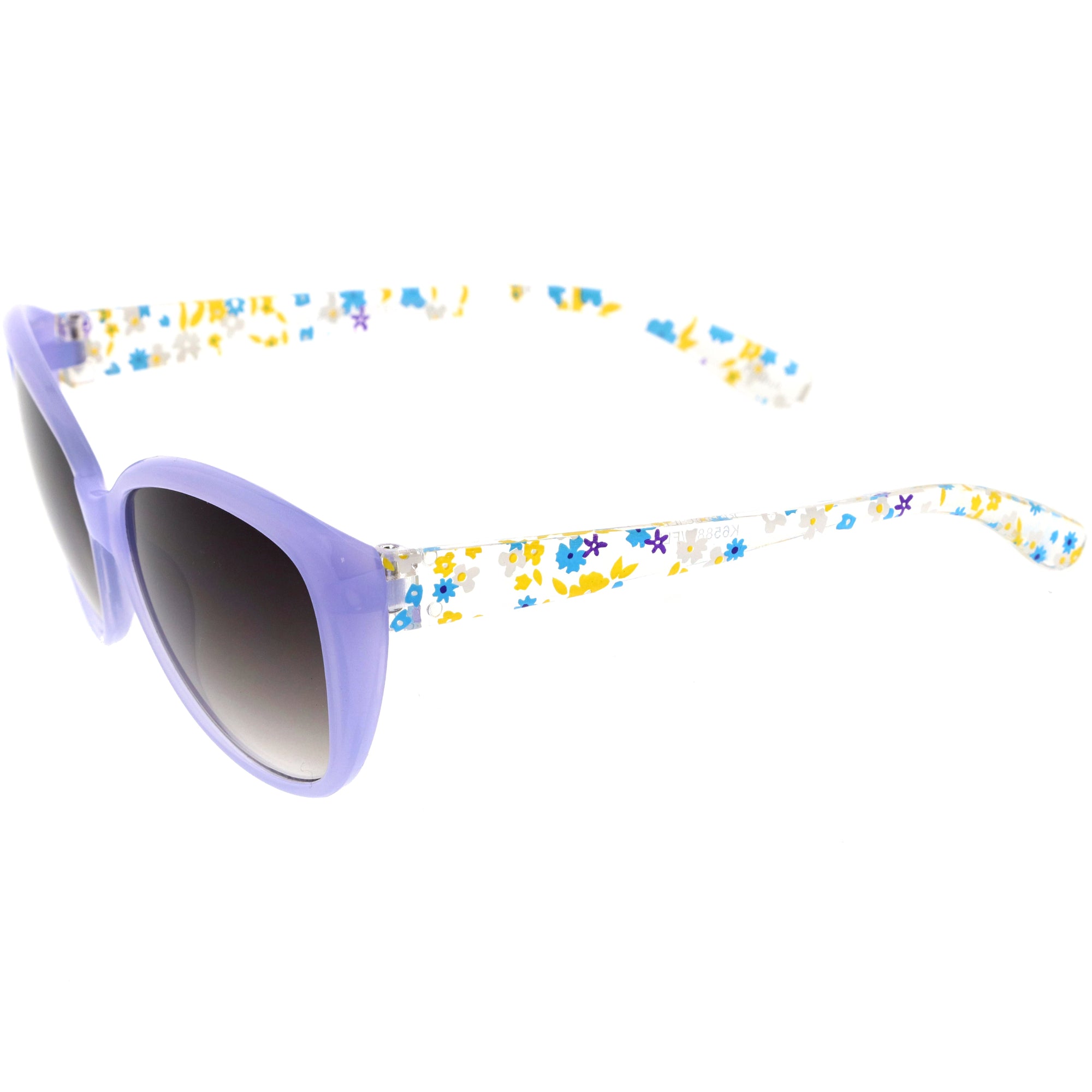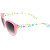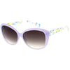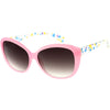 Make and it fun and lively with our kids round sunglasses decorated with floral arms. The cute pastel colors are perfect to match any season of the year. Made with a plastic based frame, metal hinges, and polycarbonate UV400 lenses.