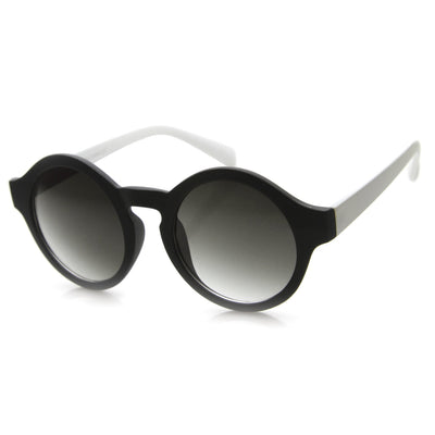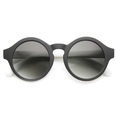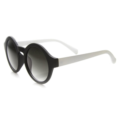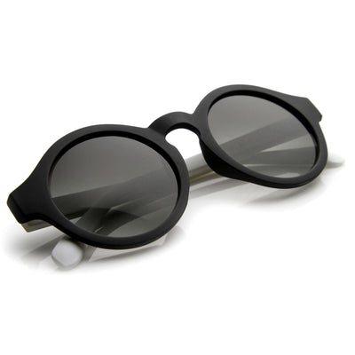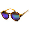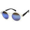 Make a splash this sunny season with these large retro round sunglasses. Bold matted frame mixed with super loud flash mirror lenses. Super fun retro sunglasses that are designed to be noticed! Made with a plastic based frame, reinforced metal hinges and 100% UV400 protection lens.