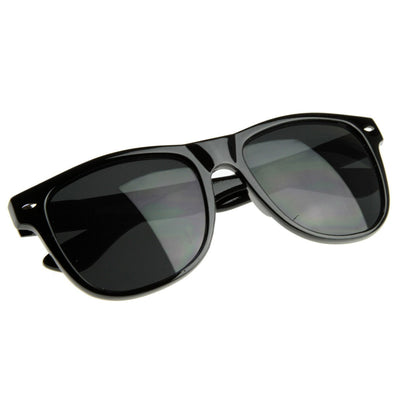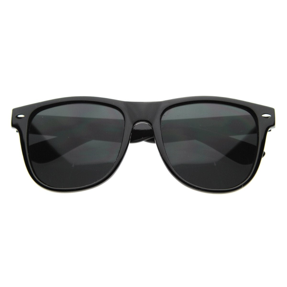 A larger version of the timeless classic horned rim frame made from glossy black acetate. Features spring loaded hinges and dark smoke UV protected lenses.